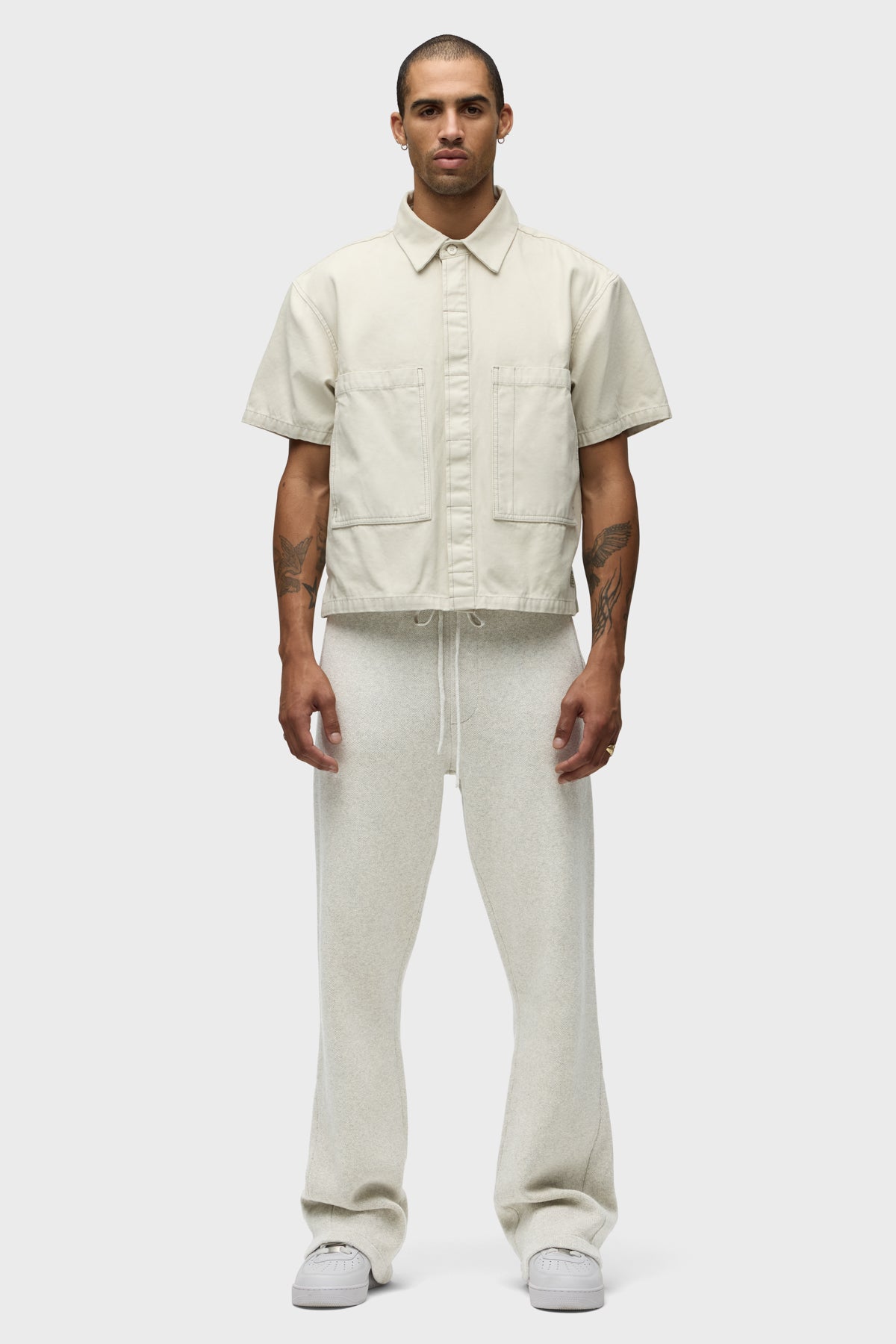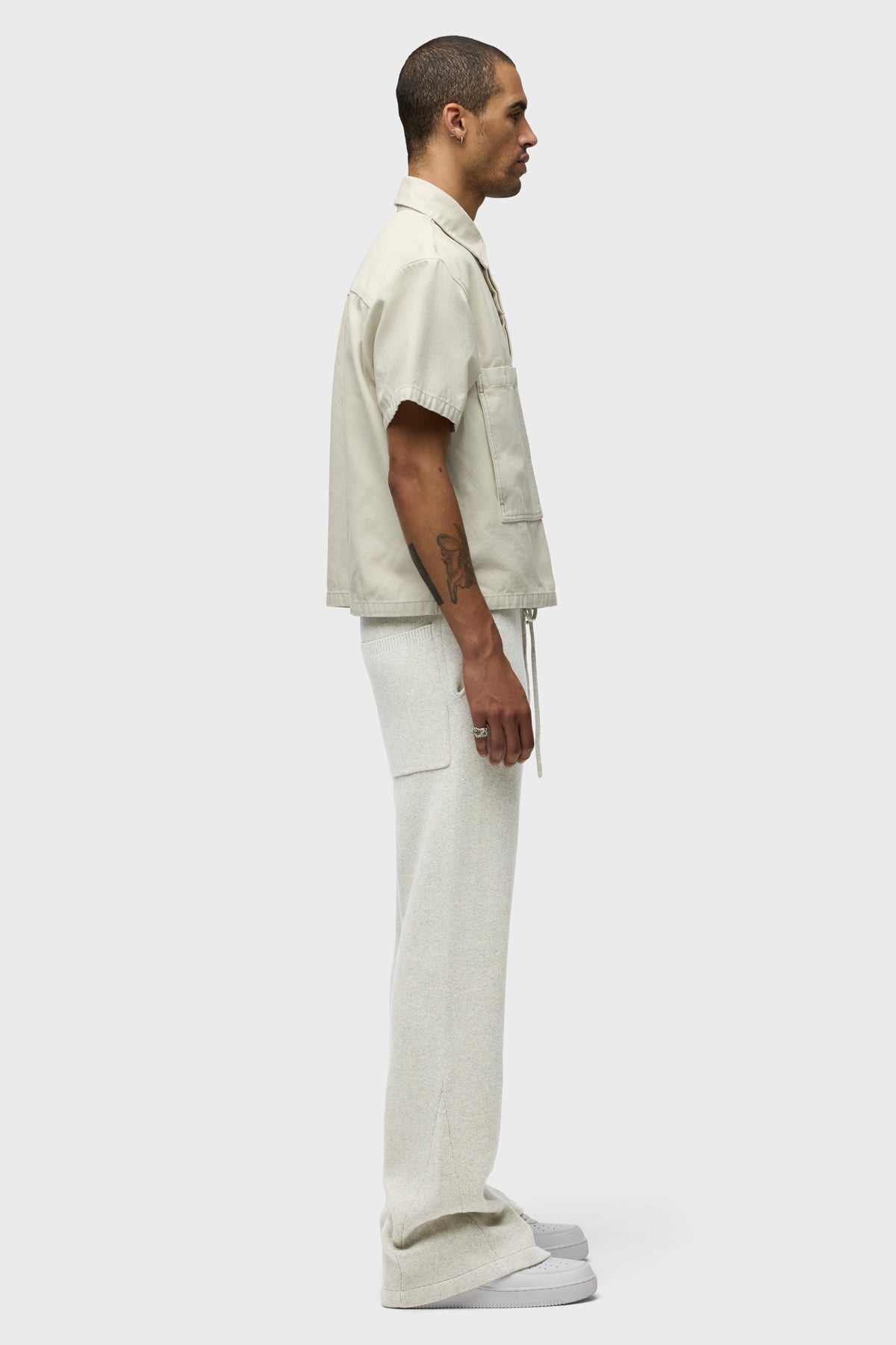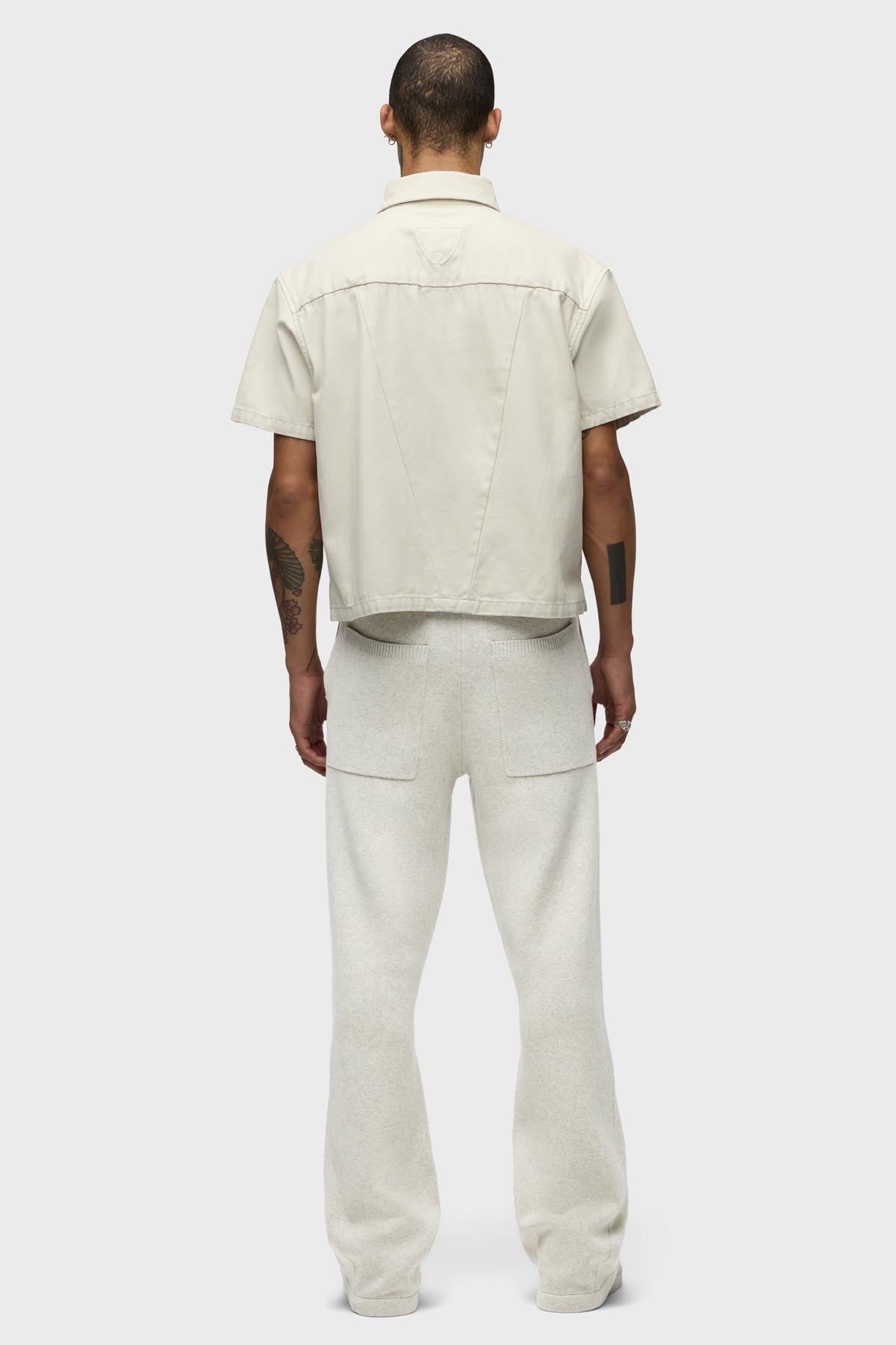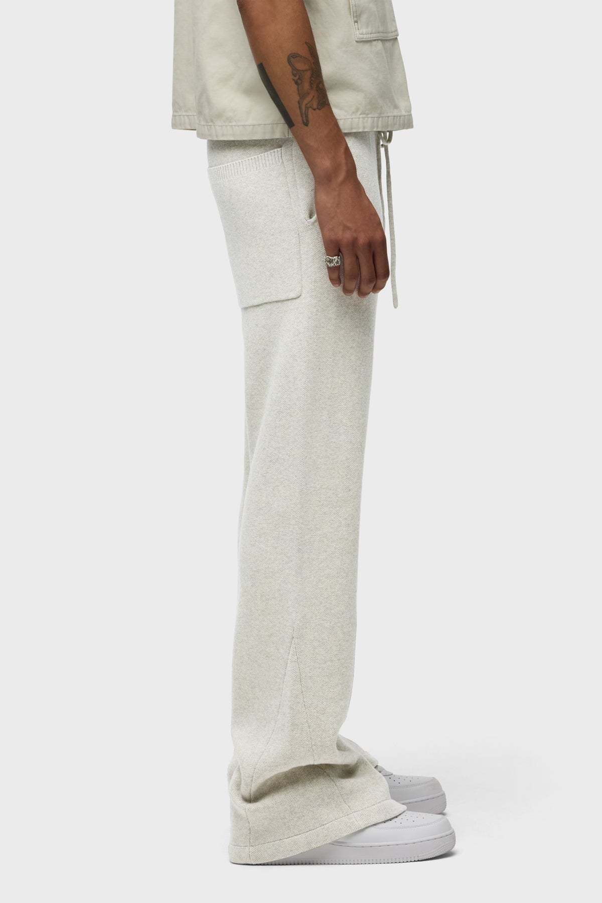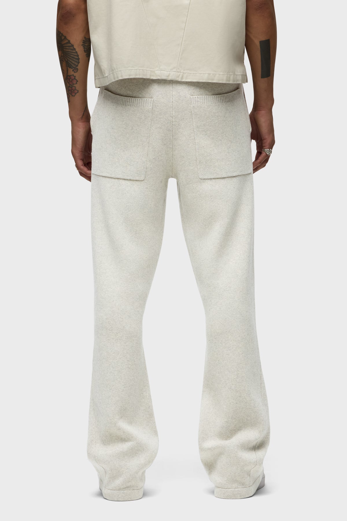 The Double Knit Kick Flare in Oatmeal is designed for a relaxed fit with a flared hem and drawcord, elastic waistband. Made from a soft, cotton-cashmere blend, the pair is finished with slash pockets, back patch pockets and gussets at the hem. Pair as a set with the coordinating Double Knit Hoodie. -