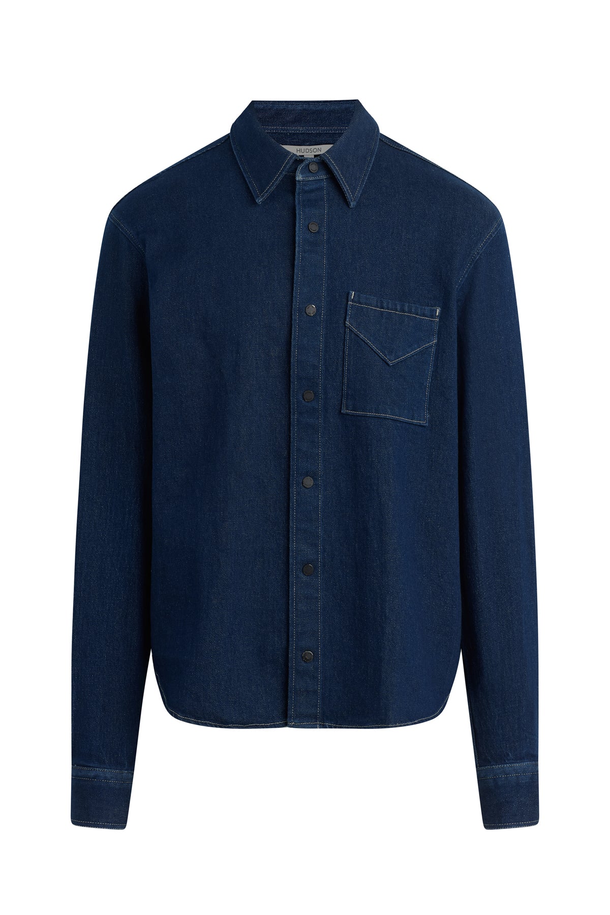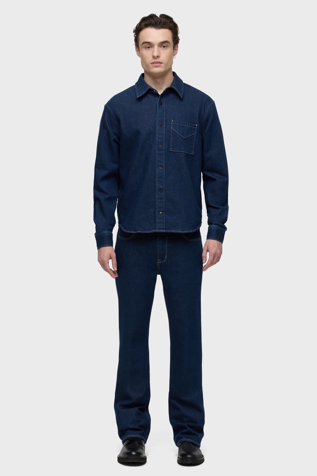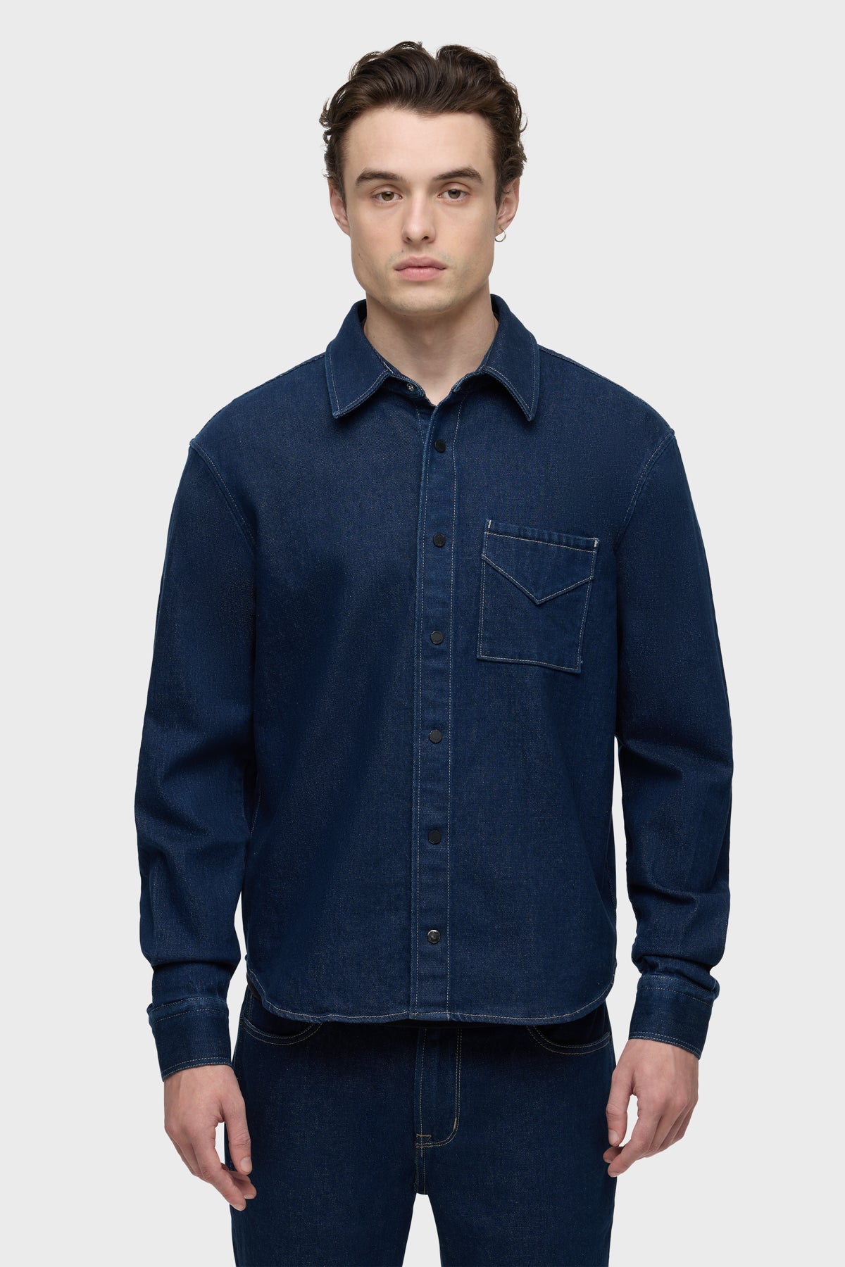Our Long Sleeve Denim Shirt in Eclipse has a dark indigo wash with contrast stitching for an elevated look. The classic fit is finished with a straight collar and branded sew on buttons at front closure. -