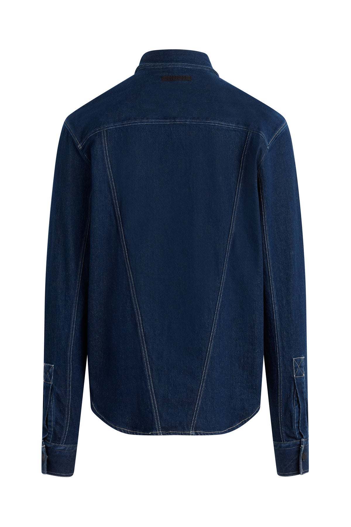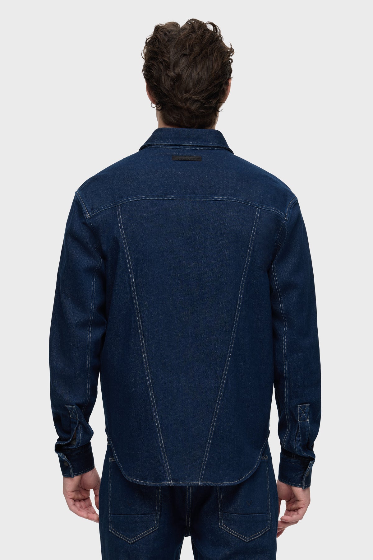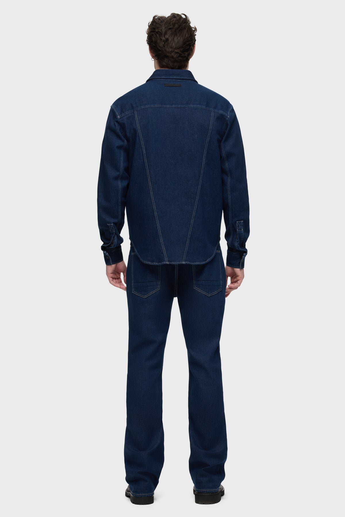 Our Long Sleeve Denim Shirt in Eclipse has a dark indigo wash with contrast stitching for an elevated look. The classic fit is finished with a straight collar and branded sew on buttons at front closure. -