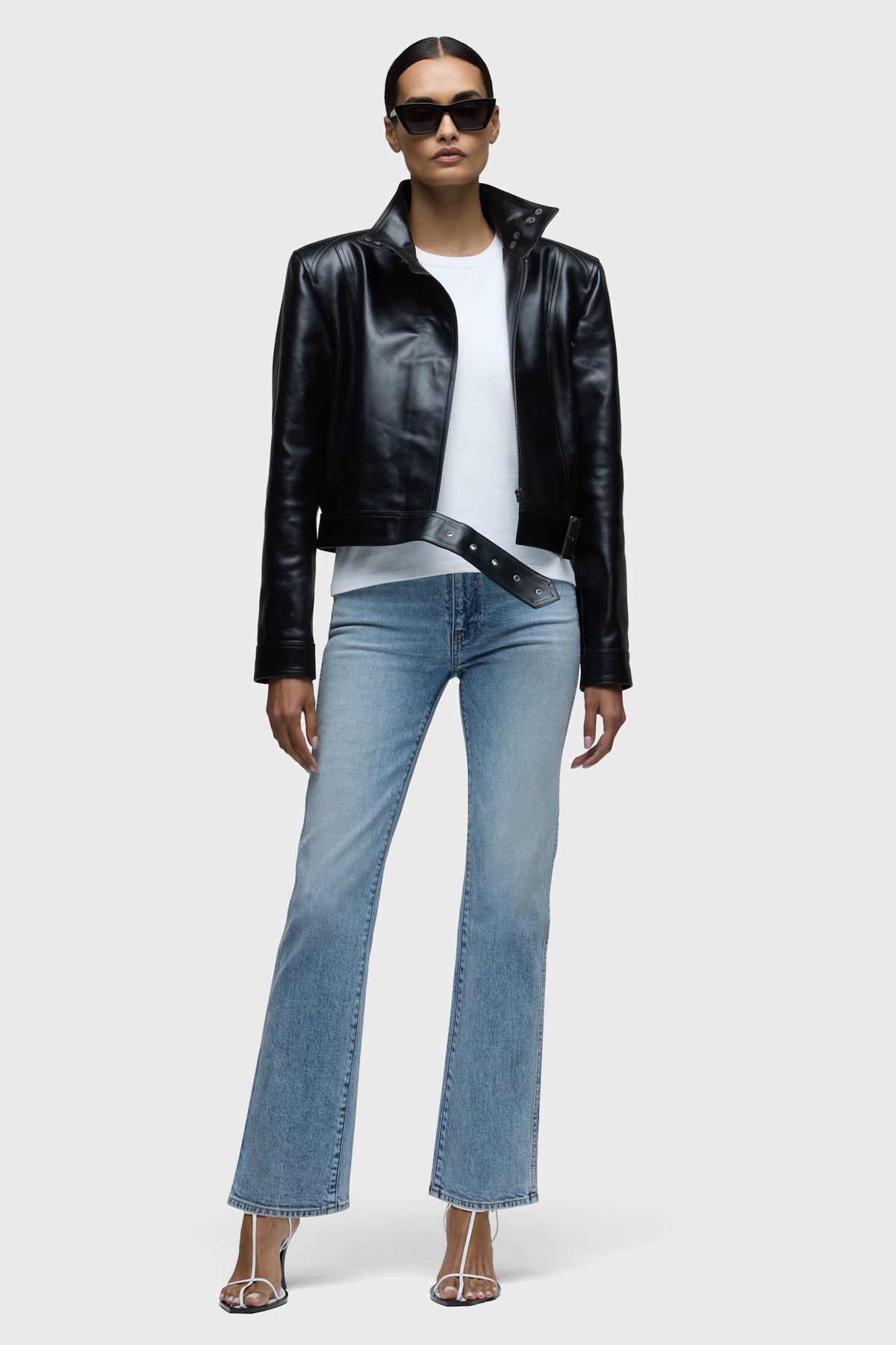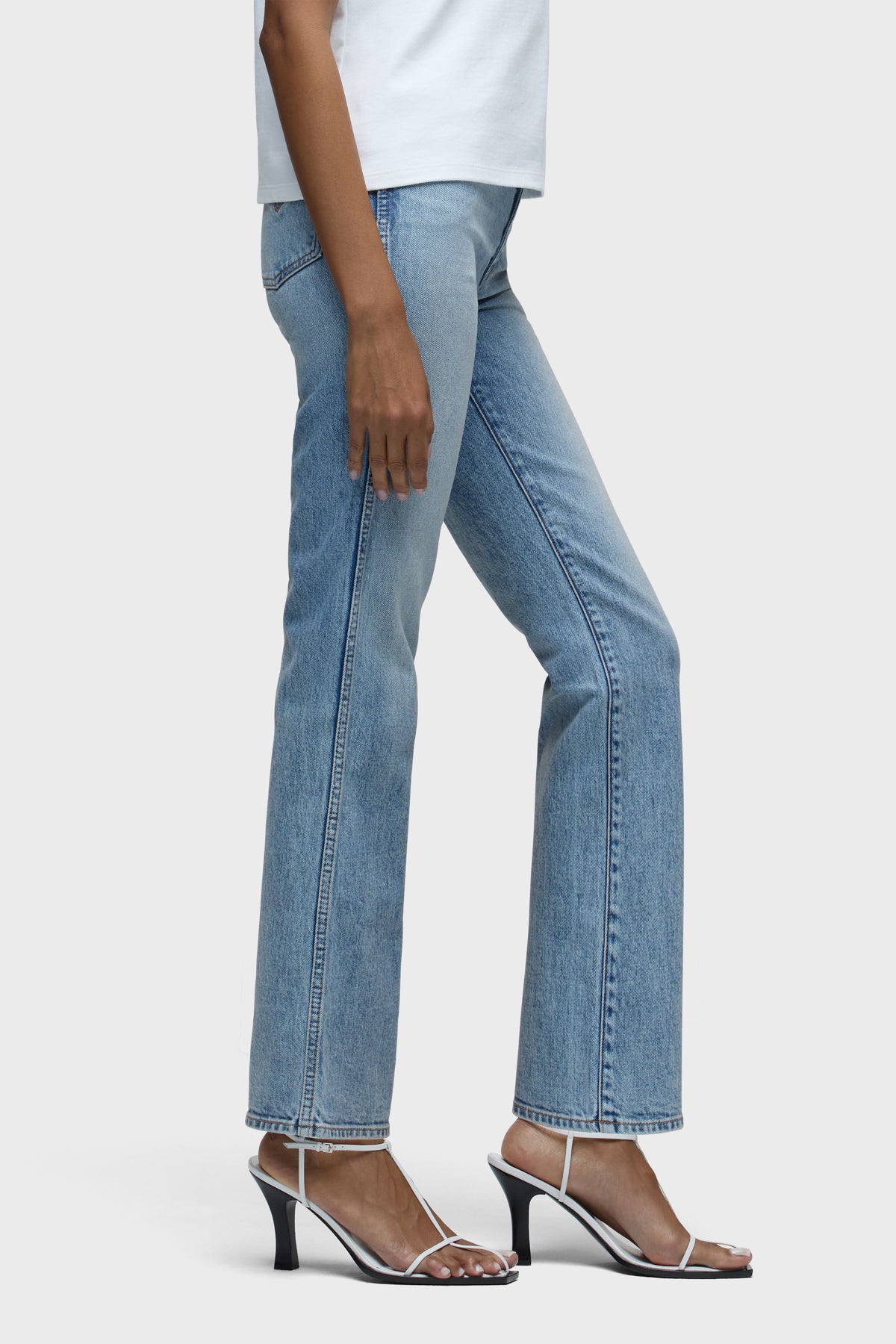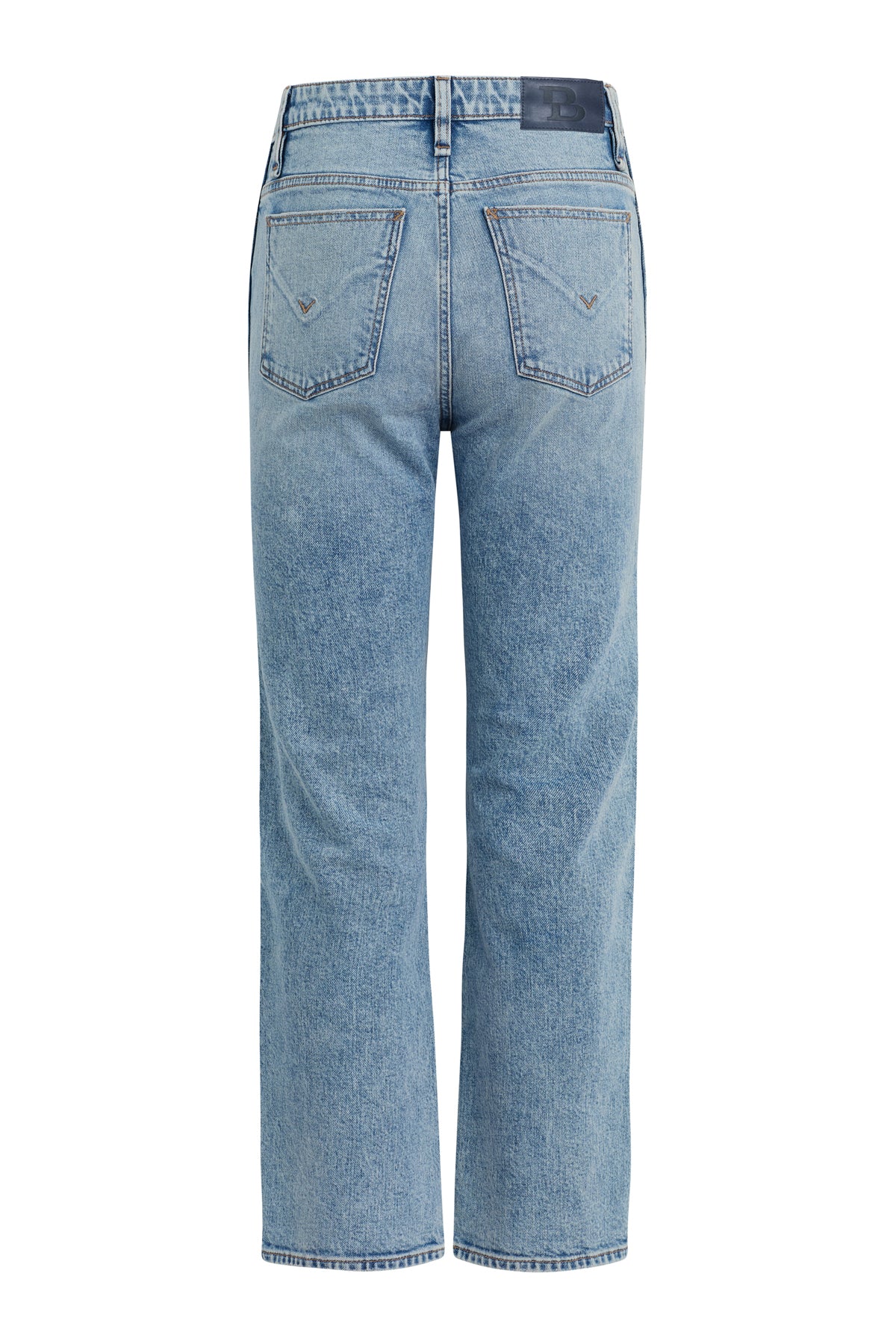 Part of our Brooks Nader collab capsule, the Breaux High-Rise Straight Ankle Jean in Envie is a high-rise style that fits snug throughout the body. It features a 28" inseam with clean finished hem. To elevate the look, we added gold branded buttons and a navy leather branded patch to the back waistband. This pair is made of Italian comfort stretch denim in a light mineral indigo with acid washing, whiskering and edge grinding. This capsule was curated by model Brooks Nader and features her personal closet must-haves. -