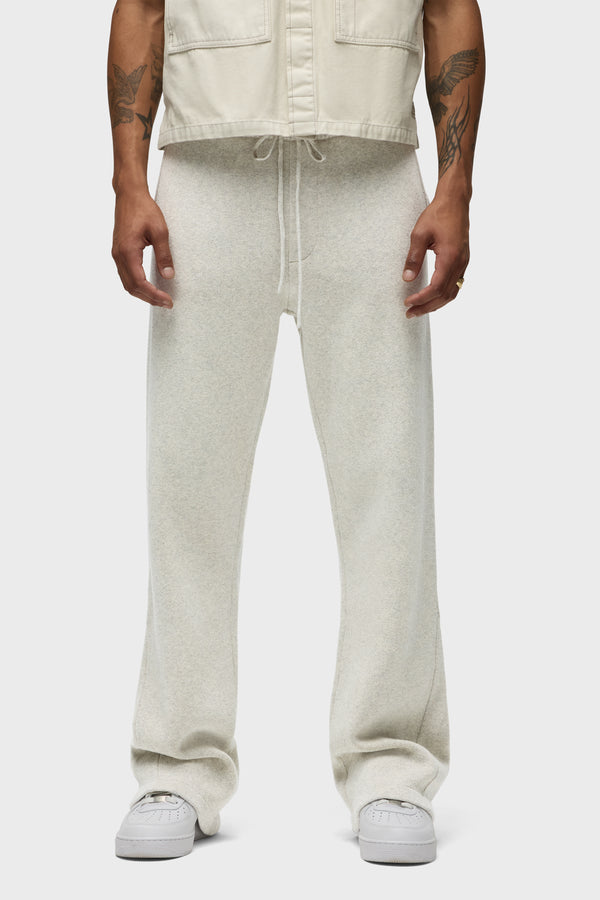 The Double Knit Kick Flare in Oatmeal is designed for a relaxed fit with a flared hem and drawcord, elastic waistband. Made from a soft, cotton-cashmere blend, the pair is finished with slash pockets, back patch pockets and gussets at the hem. Pair as a set with the coordinating Double Knit Hoodie. -