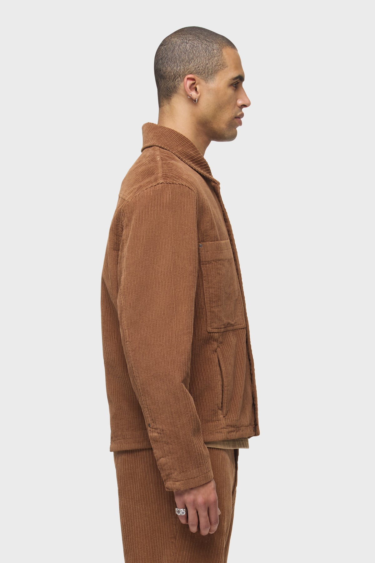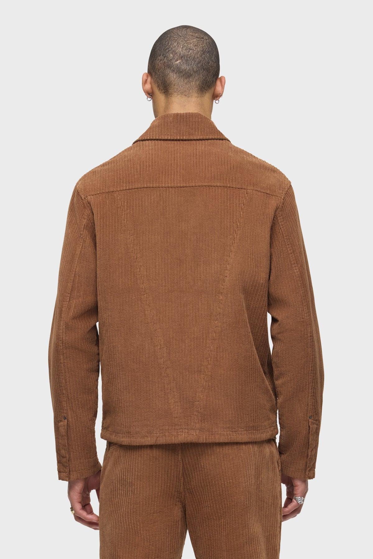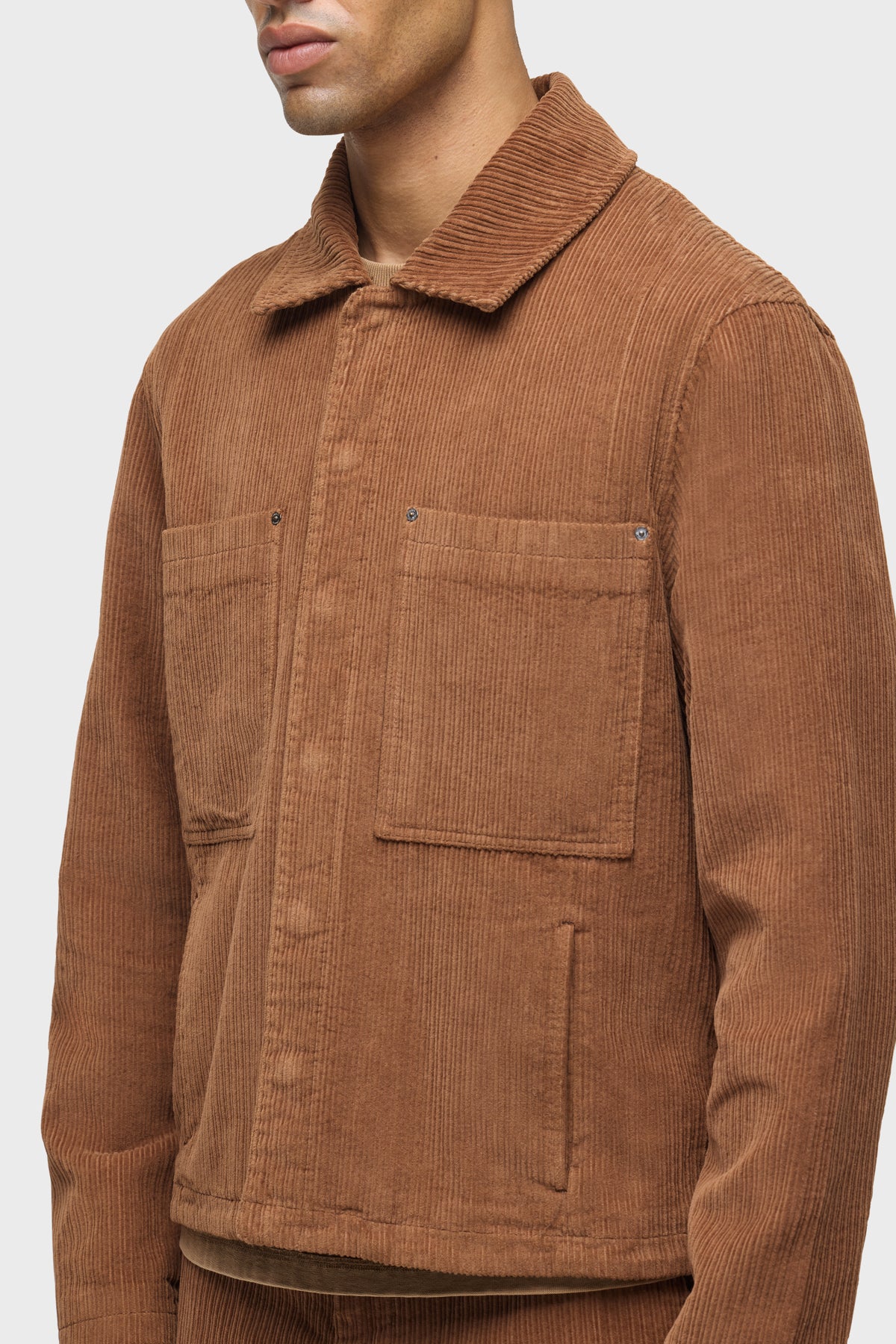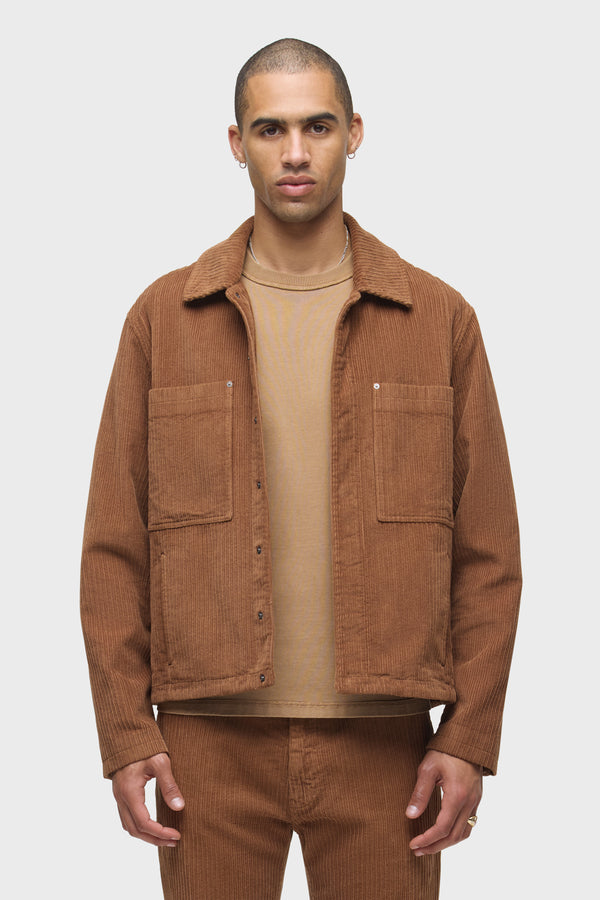 Our Work Jacket in Toffee offers versatile style that can be dressed up or down. Crafted from corduroy in a brown shade, this jacket has a refined, sartorial look with concealed snaps at the center front. -