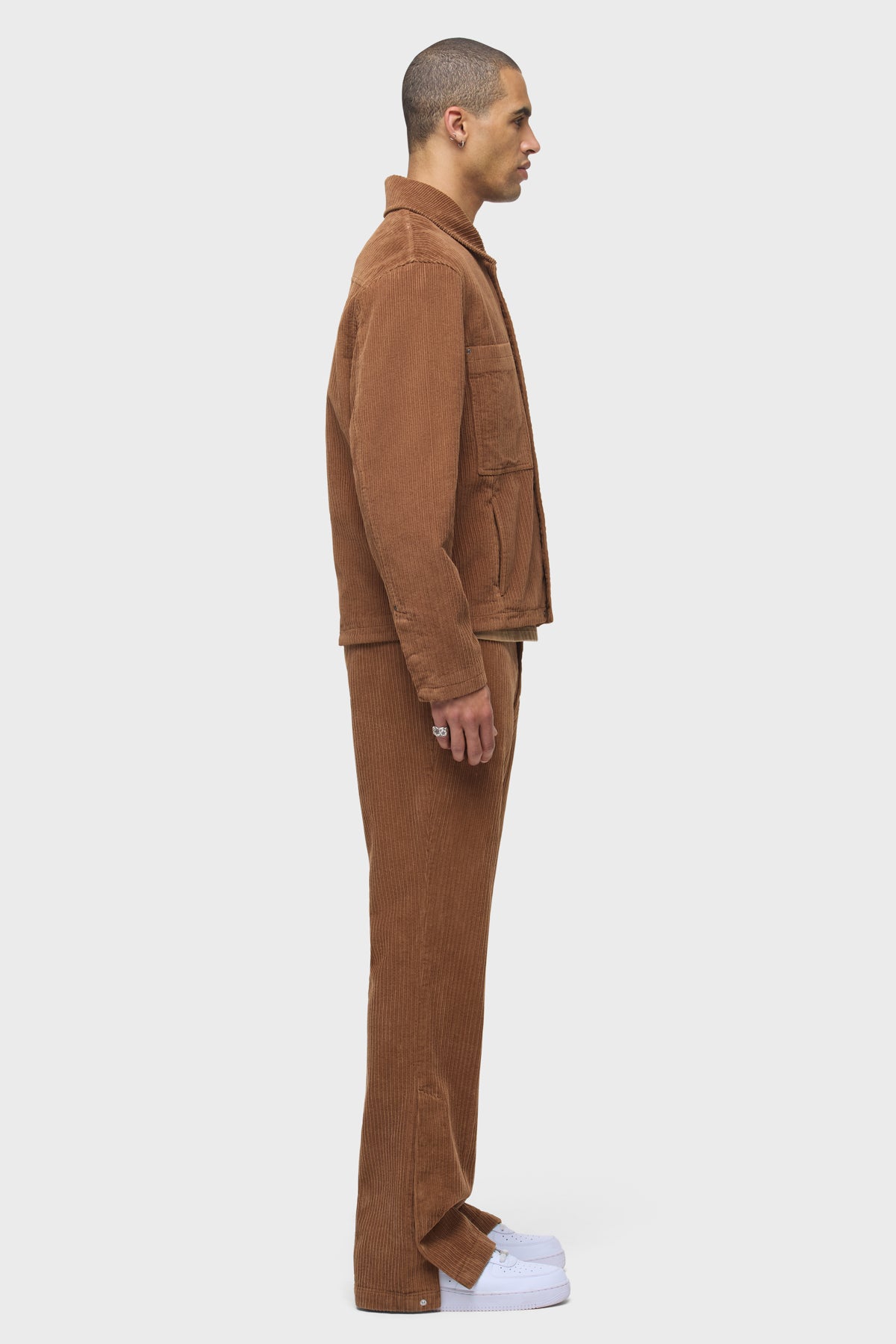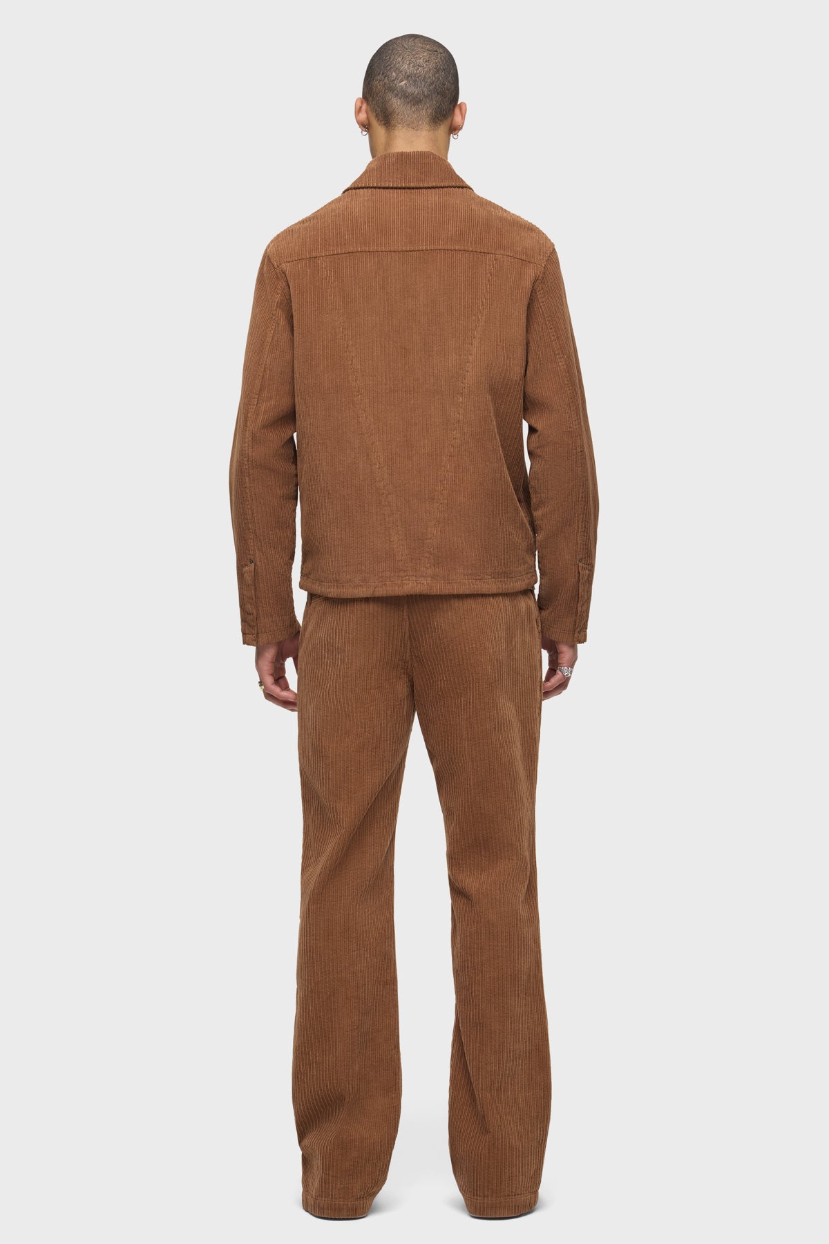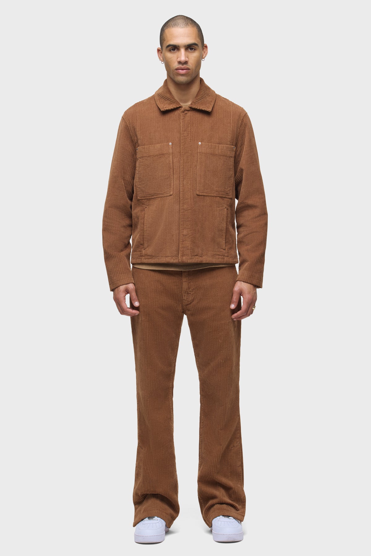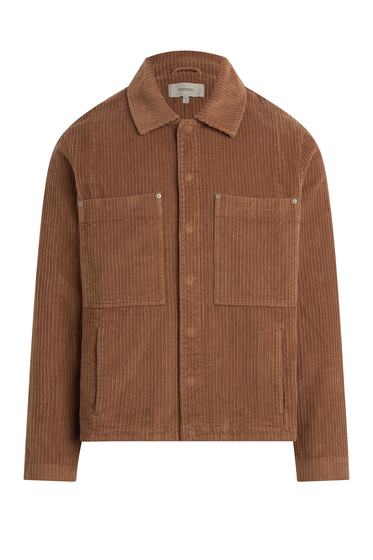Our Work Jacket in Toffee offers versatile style that can be dressed up or down. Crafted from corduroy in a brown shade, this jacket has a refined, sartorial look with concealed snaps at the center front. -
