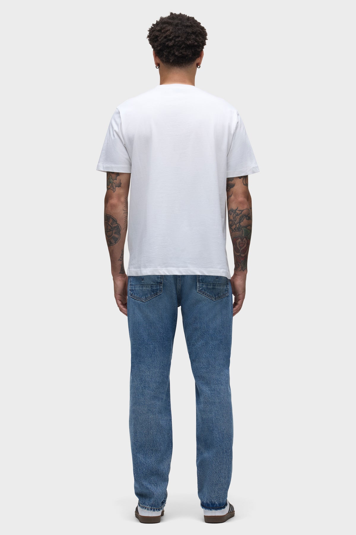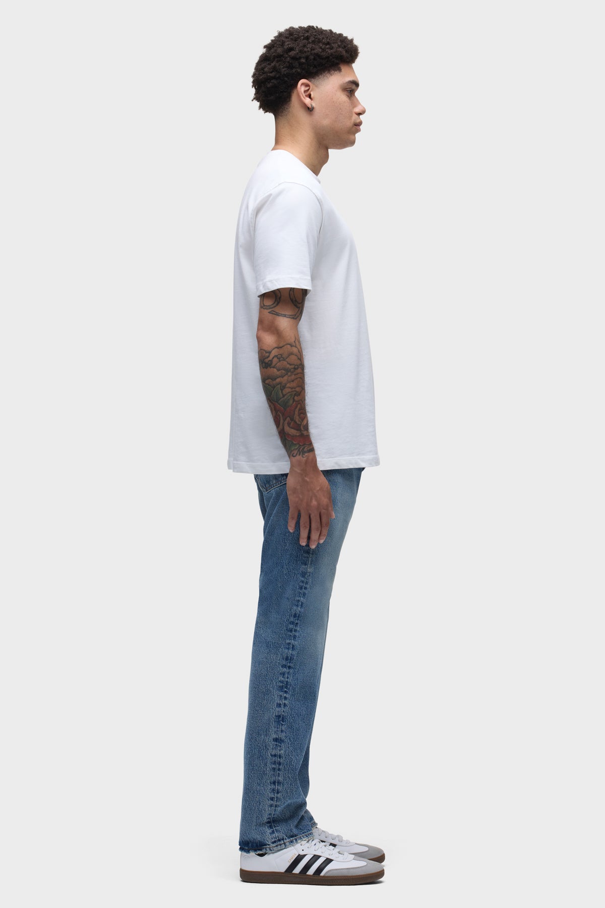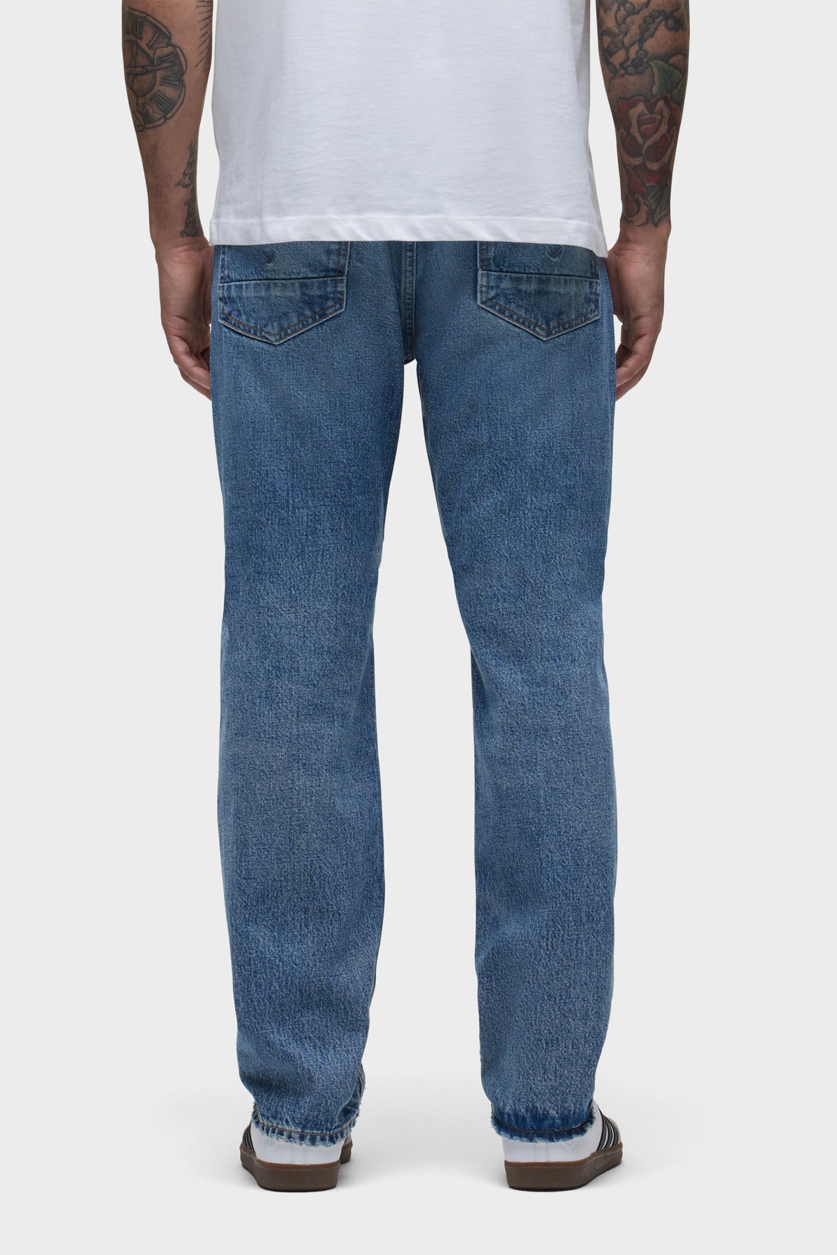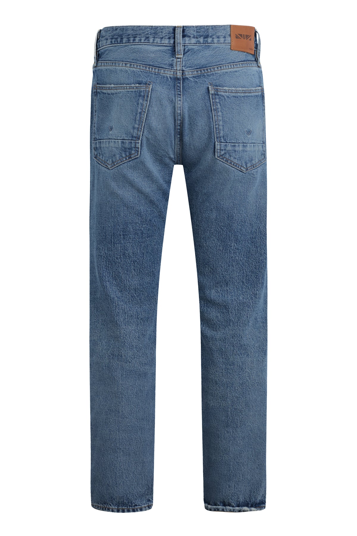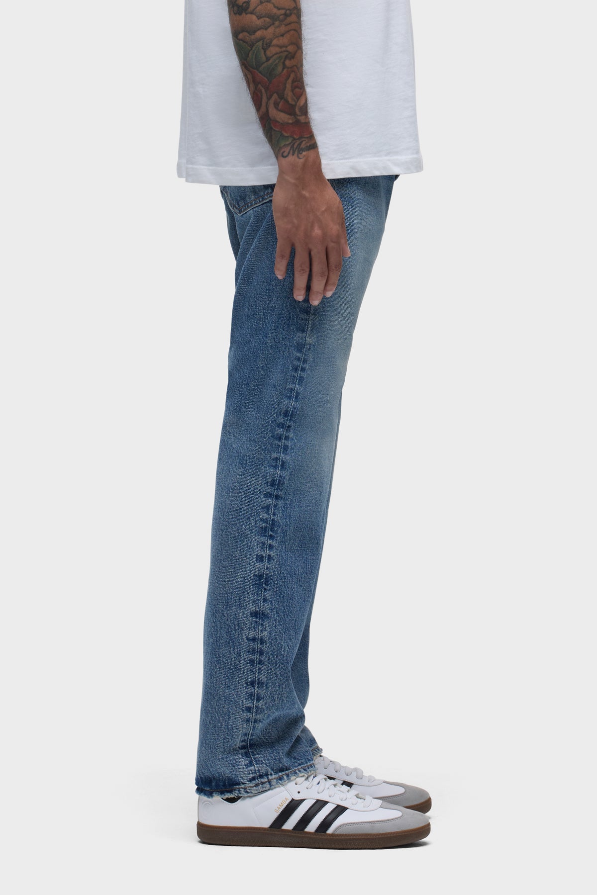 The Wes Classic Straight Leg Jean is a mid-rise, easy straight leg that fits slim through the hip. The medium indigo wash, Indio, is finished with acid washing, stone washing, bleaching, whiskering and edge grinding. This pair is made of rigid denim with classic five-pocket detailing, contrast topstitching, stainless steel bright-blasted hardware, and a saddle leather back patch. -
