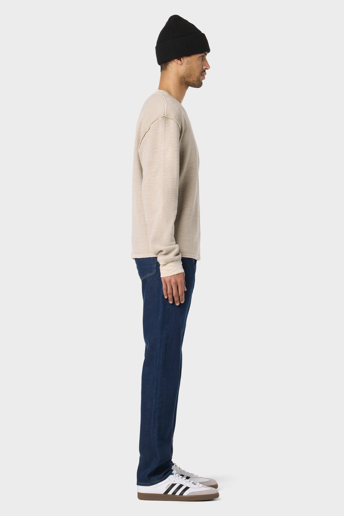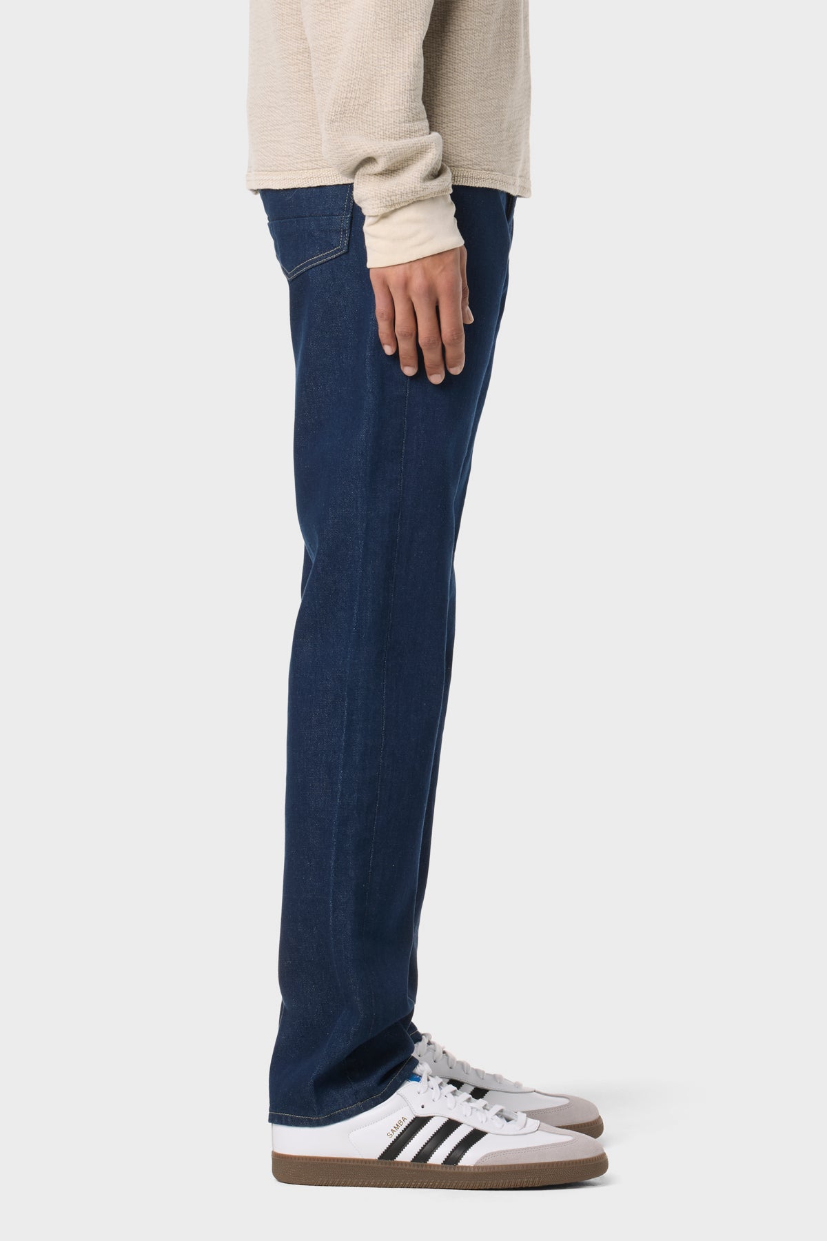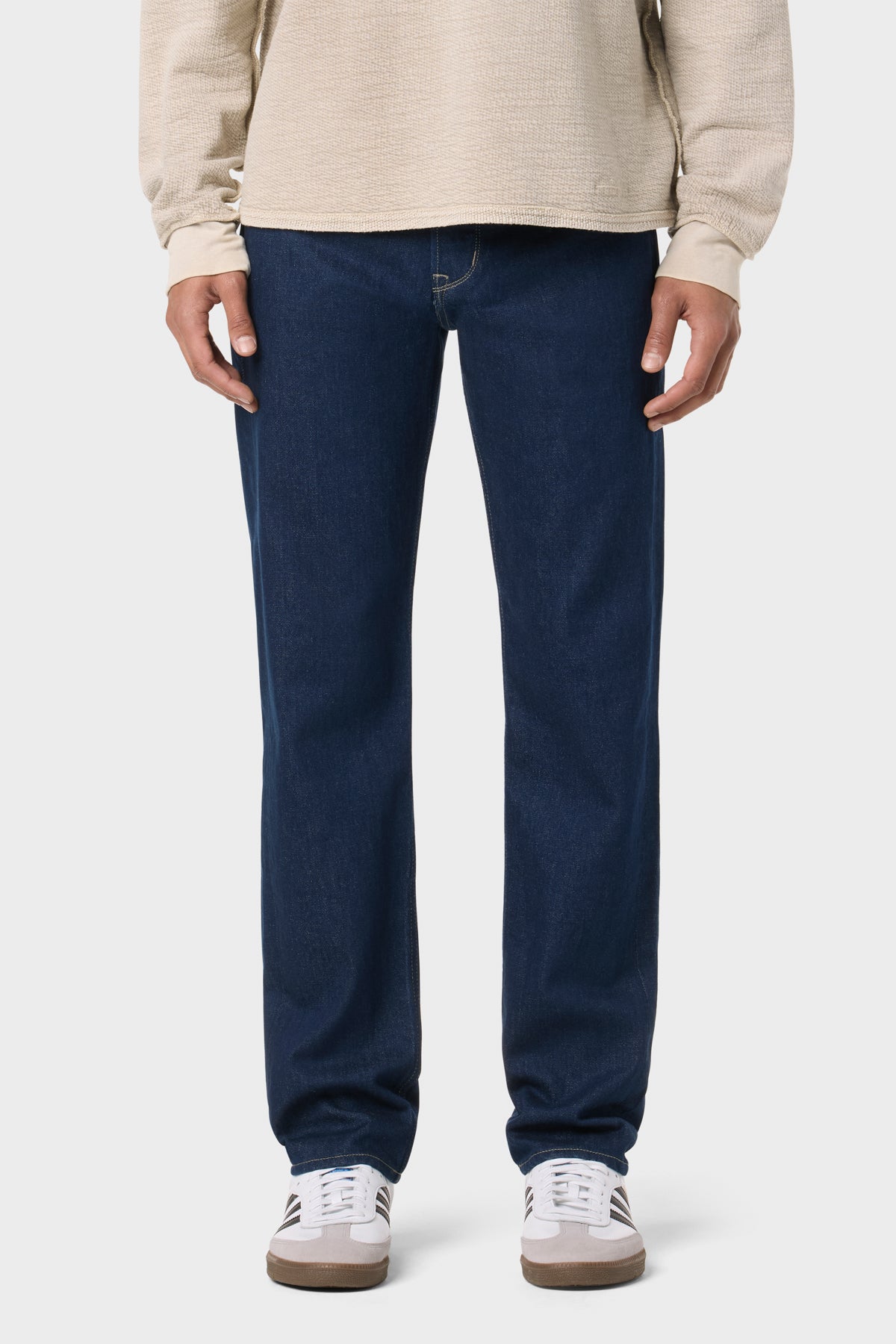The Wes Classic Straight Leg Jean is a mid-rise, easy straight leg that fits slim through the hip. The dark indigo Northern wash is made from premium comfort stretch denim and is finished with classic five-pocket construction, button fly, contrast topstitching, dull nickel hardware and black leather back patch. -