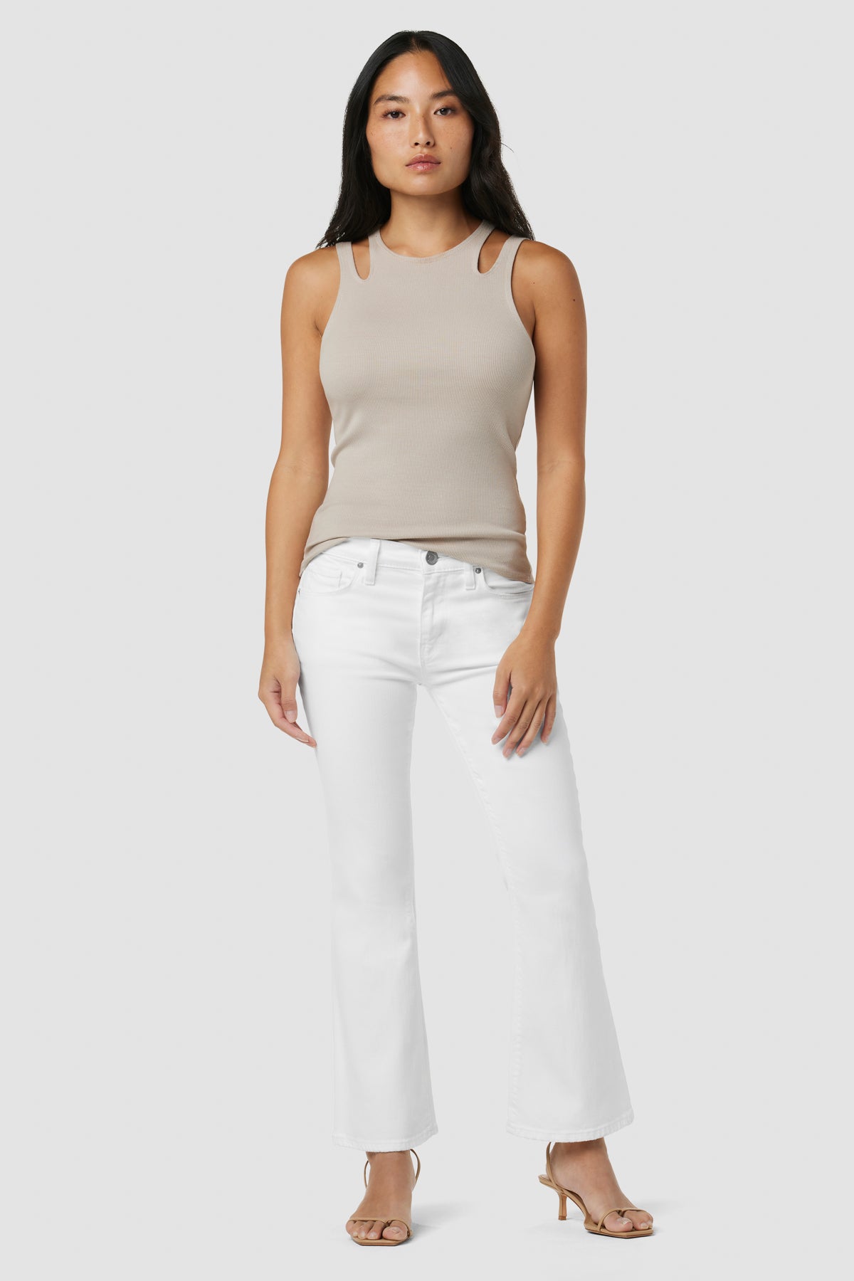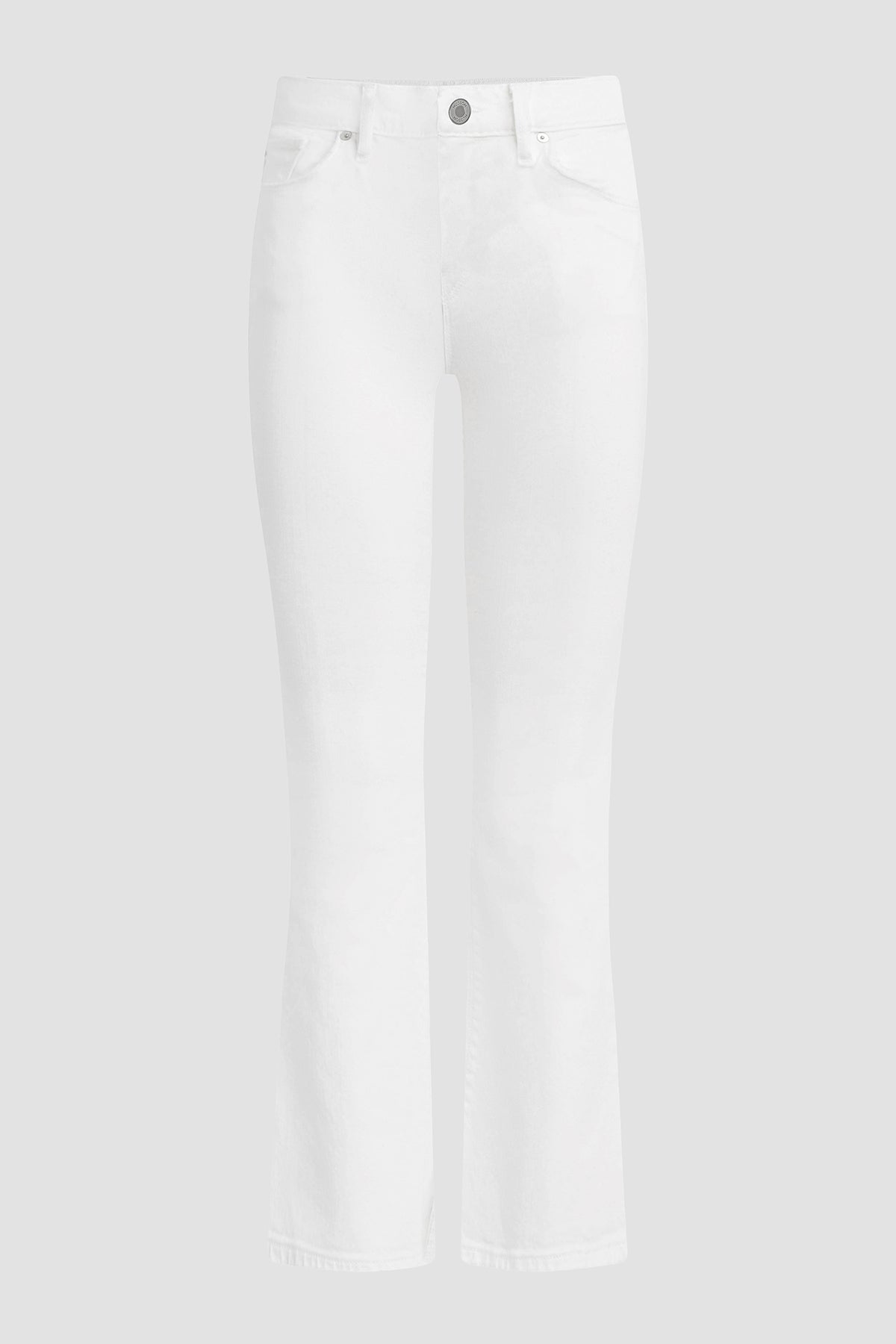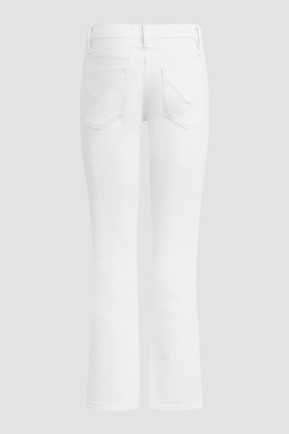 Our Nico Mid-Rise Bootcut Crop Petite Jean is cut for a streamlined fit with premium comfort stretch denim in White. This best-selling fit is proportioned for petites for the perfect crop length. -