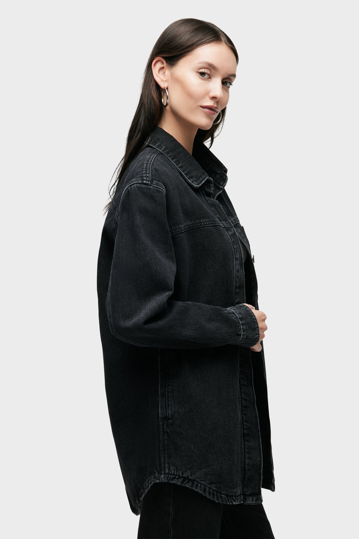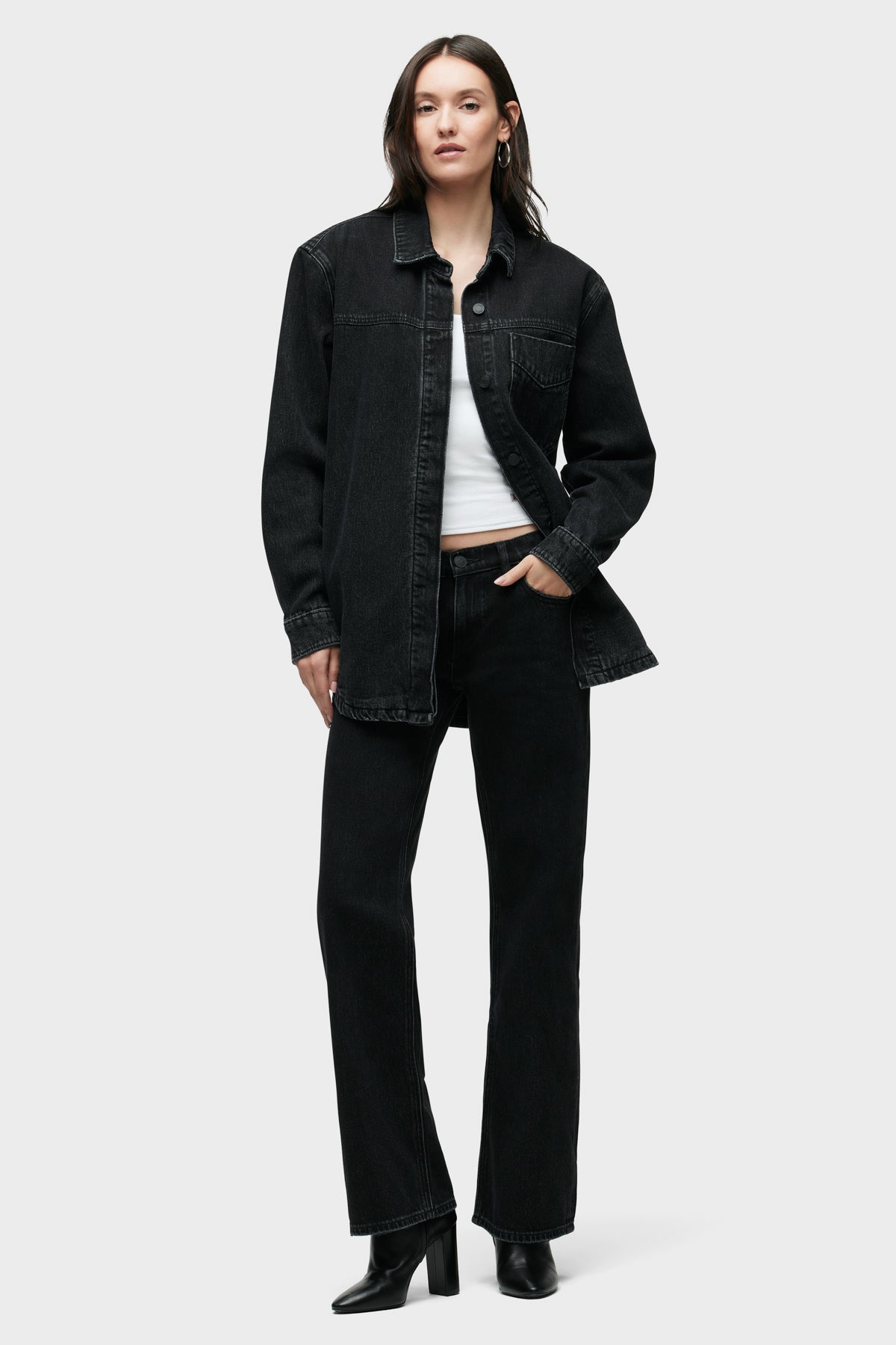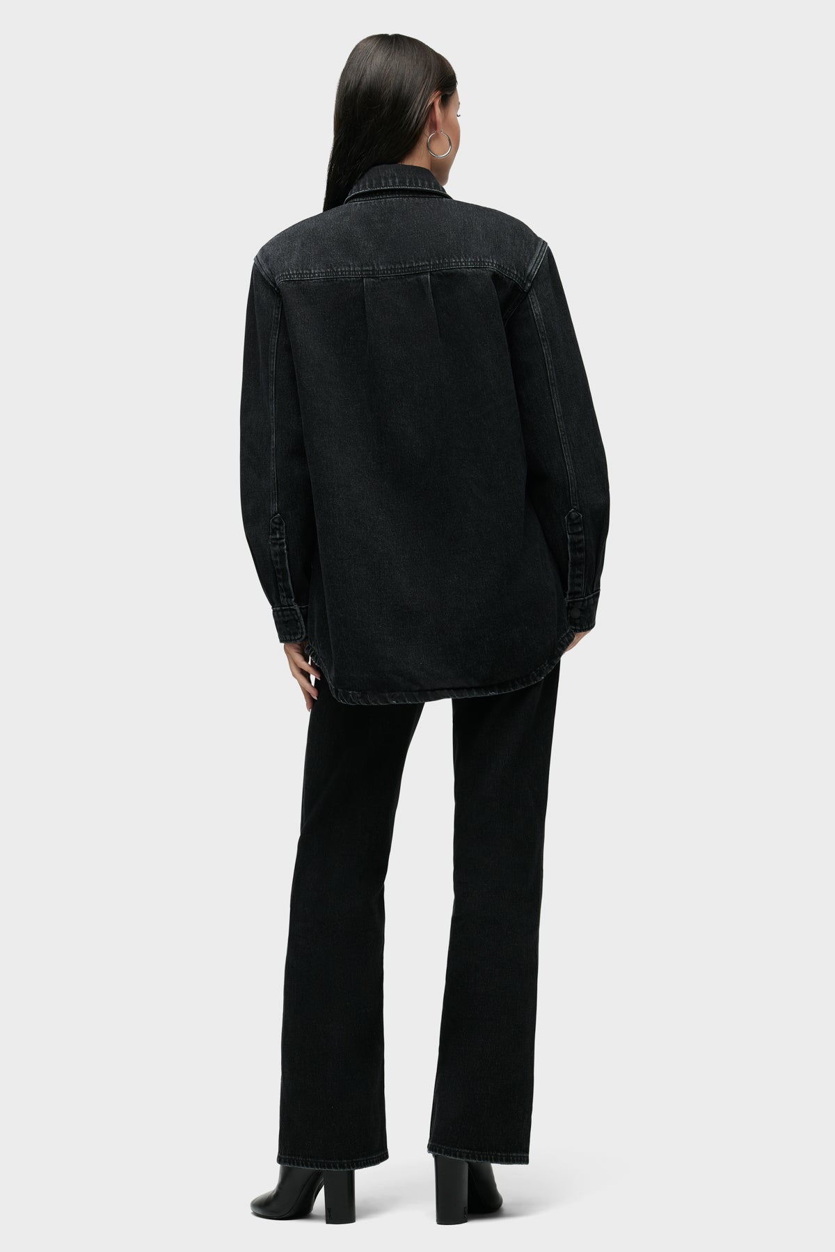 The Shacket in washed down Stone Black is cut from premium rigid denim. The relaxed fit features long sleeves, pointed collar and side pockets. Pair with matching Kelli Low-Rise Loose Straight Jeans for a complete look. -