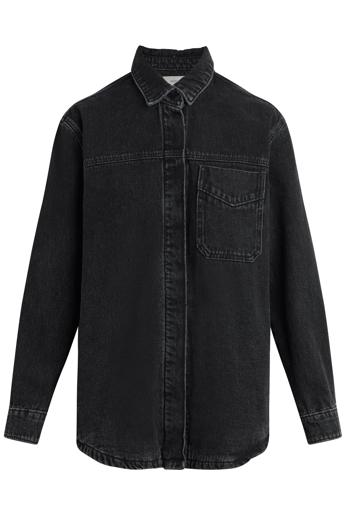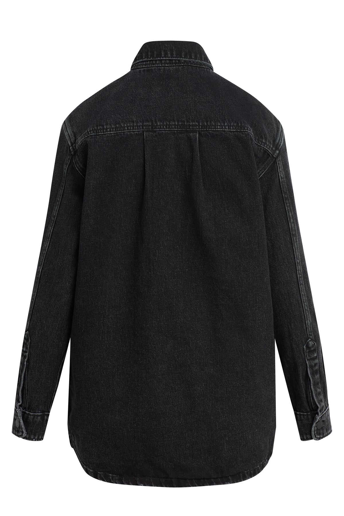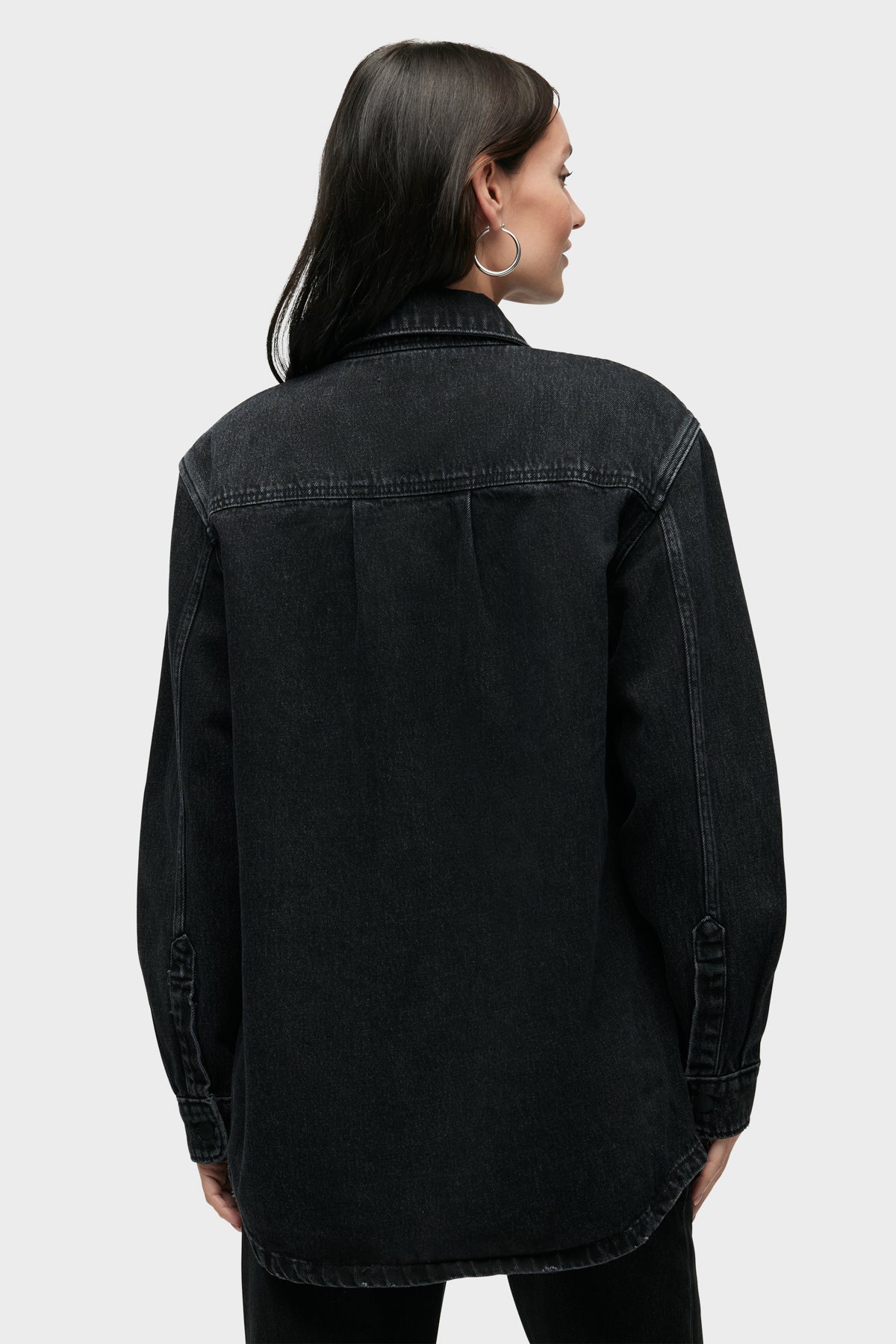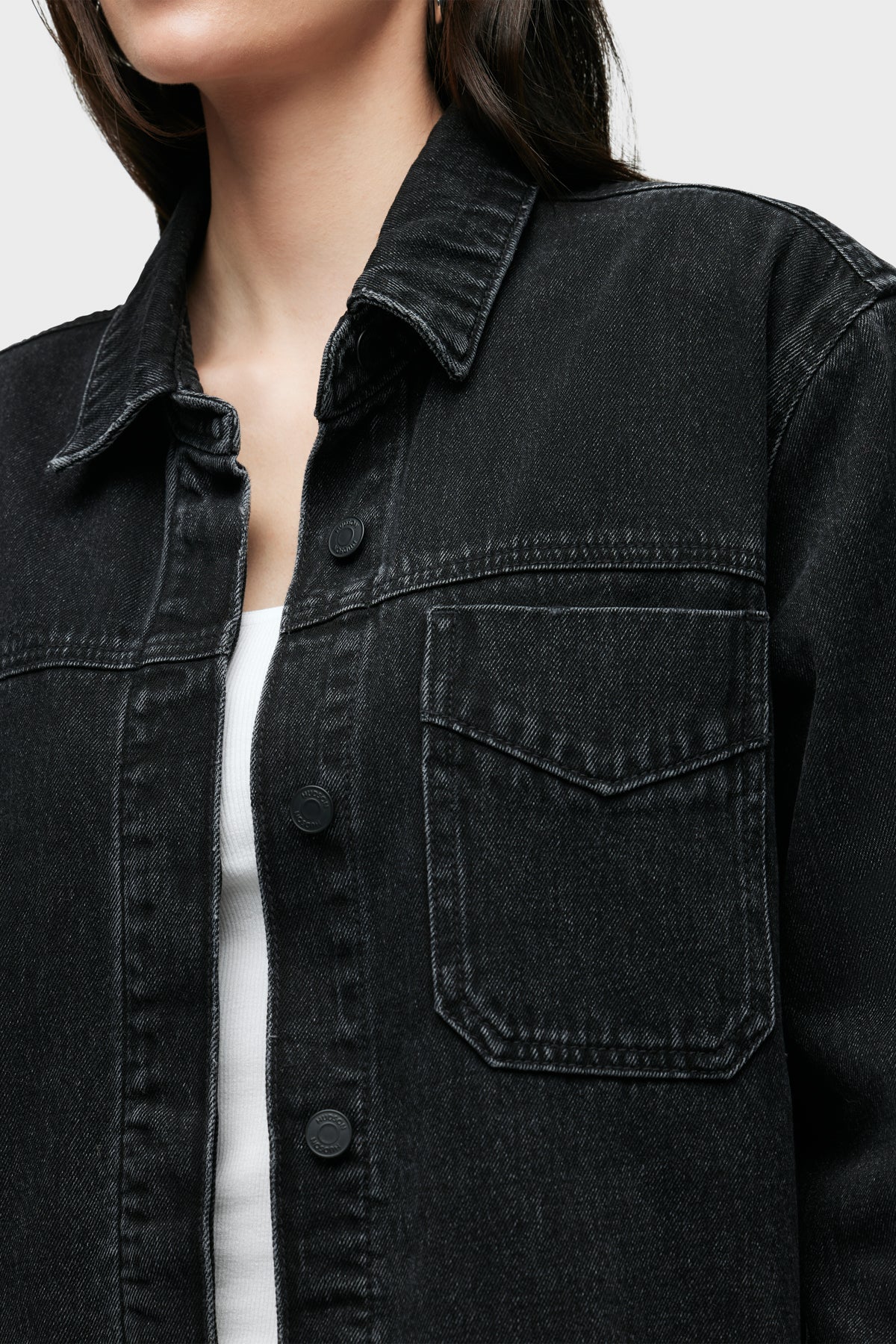The Shacket in washed down Stone Black is cut from premium rigid denim. The relaxed fit features long sleeves, pointed collar and side pockets. Pair with matching Kelli Low-Rise Loose Straight Jeans for a complete look. -