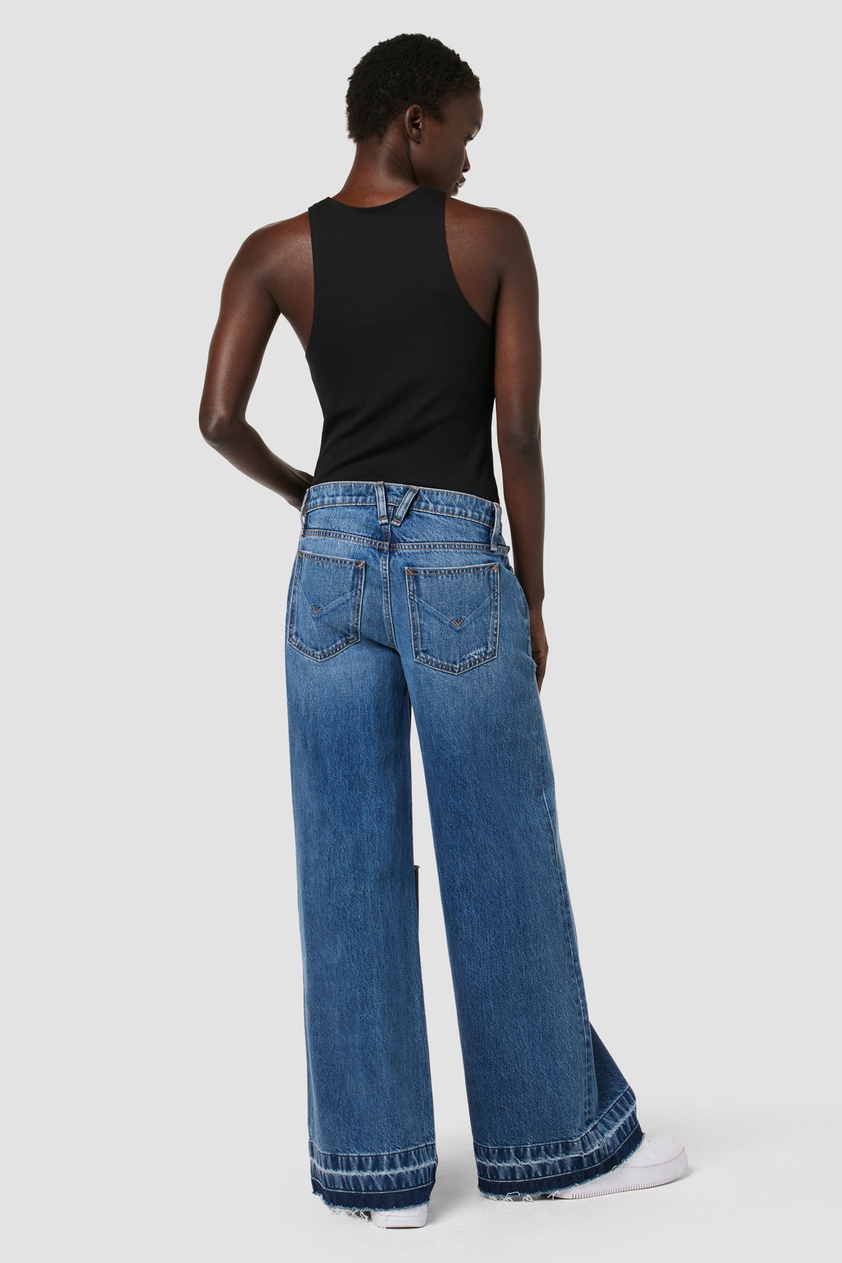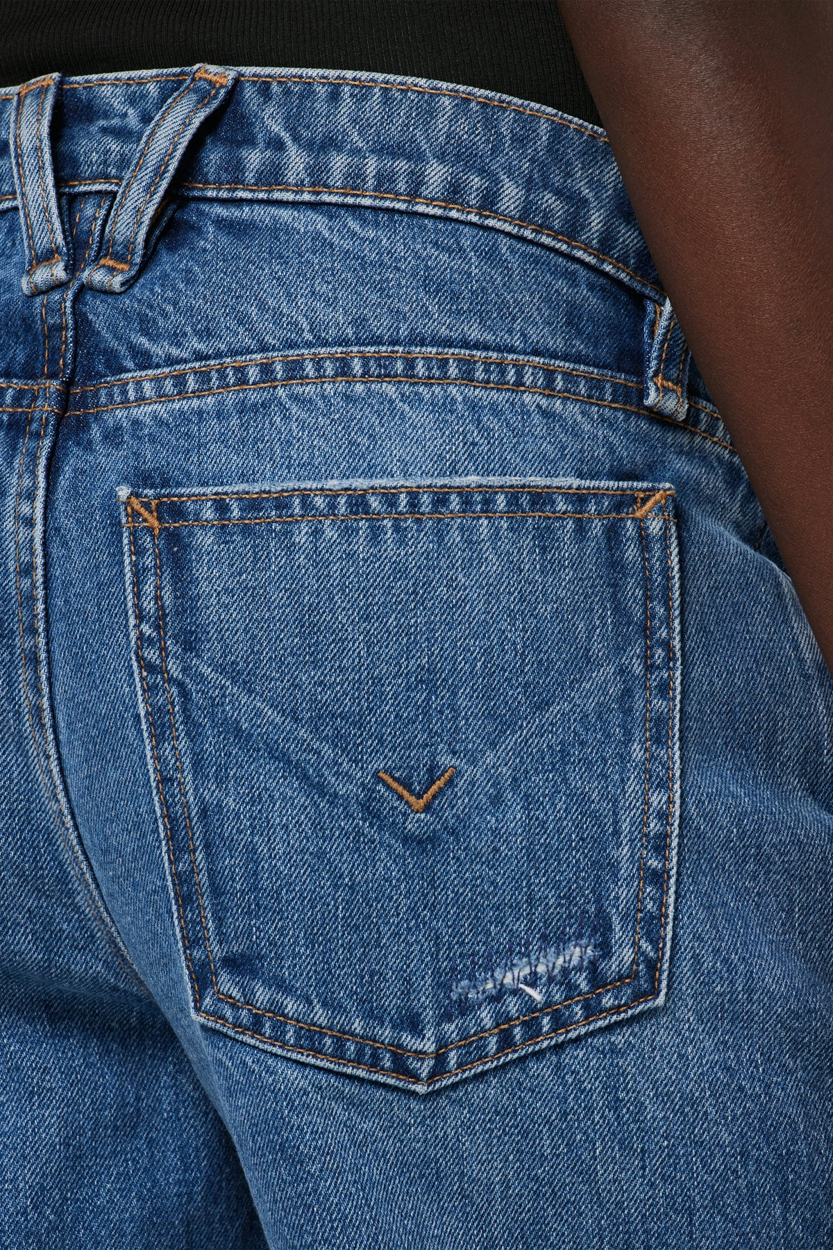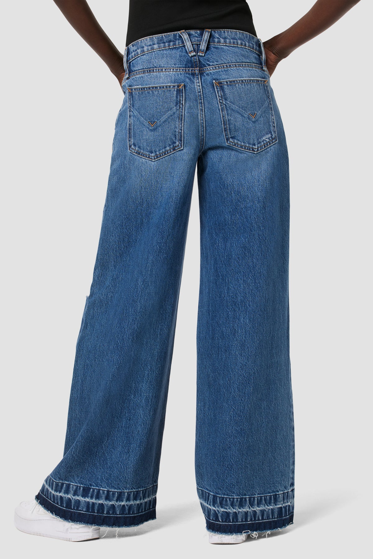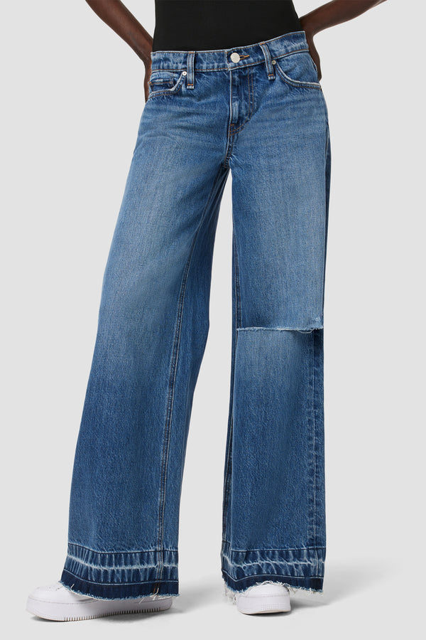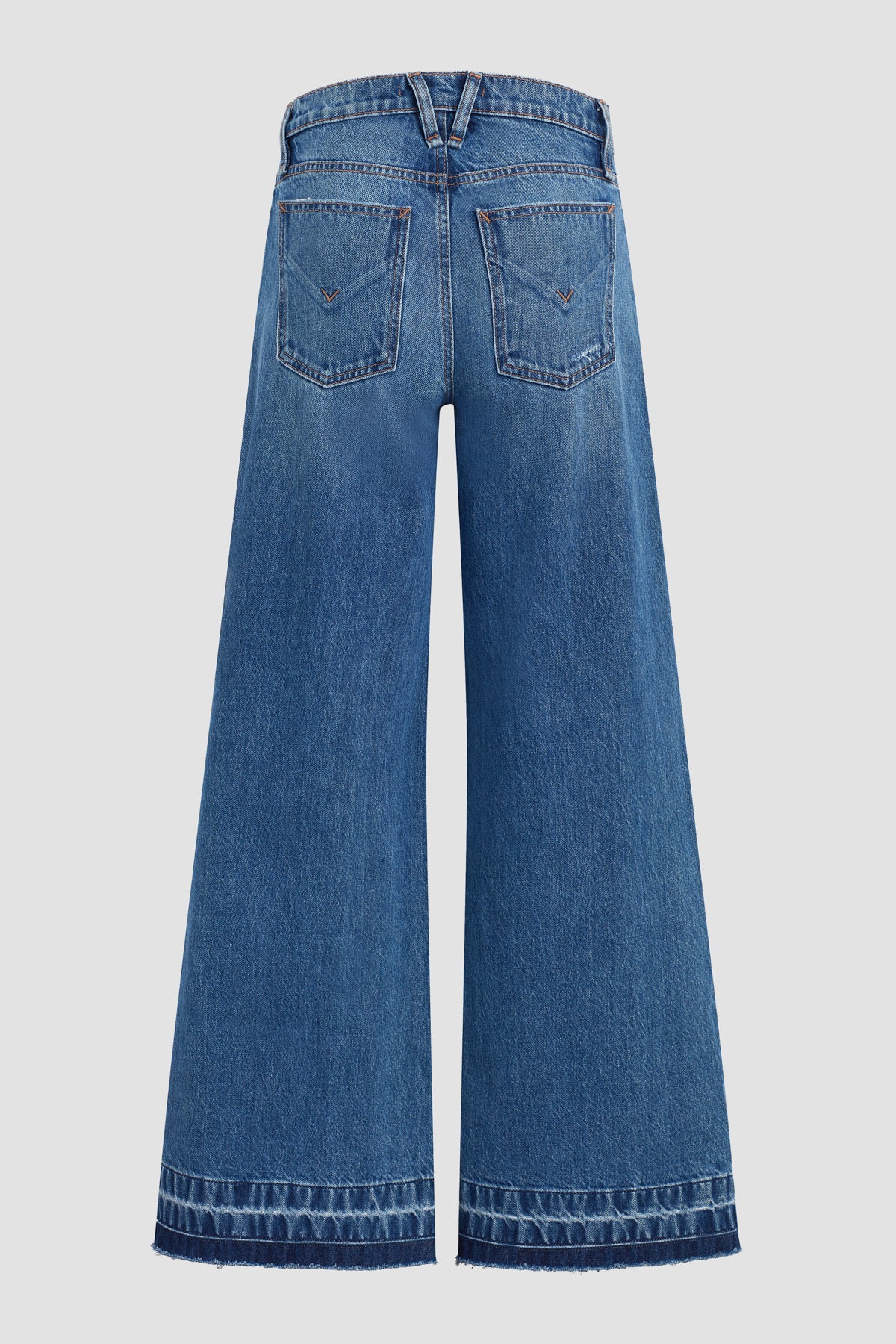 Our new Freya Mid-Rise Skater Pant in Rip Repair Winter is cut from Legacy Italian premium cotton denim. Features a wide leg, knee slit and released hem. -