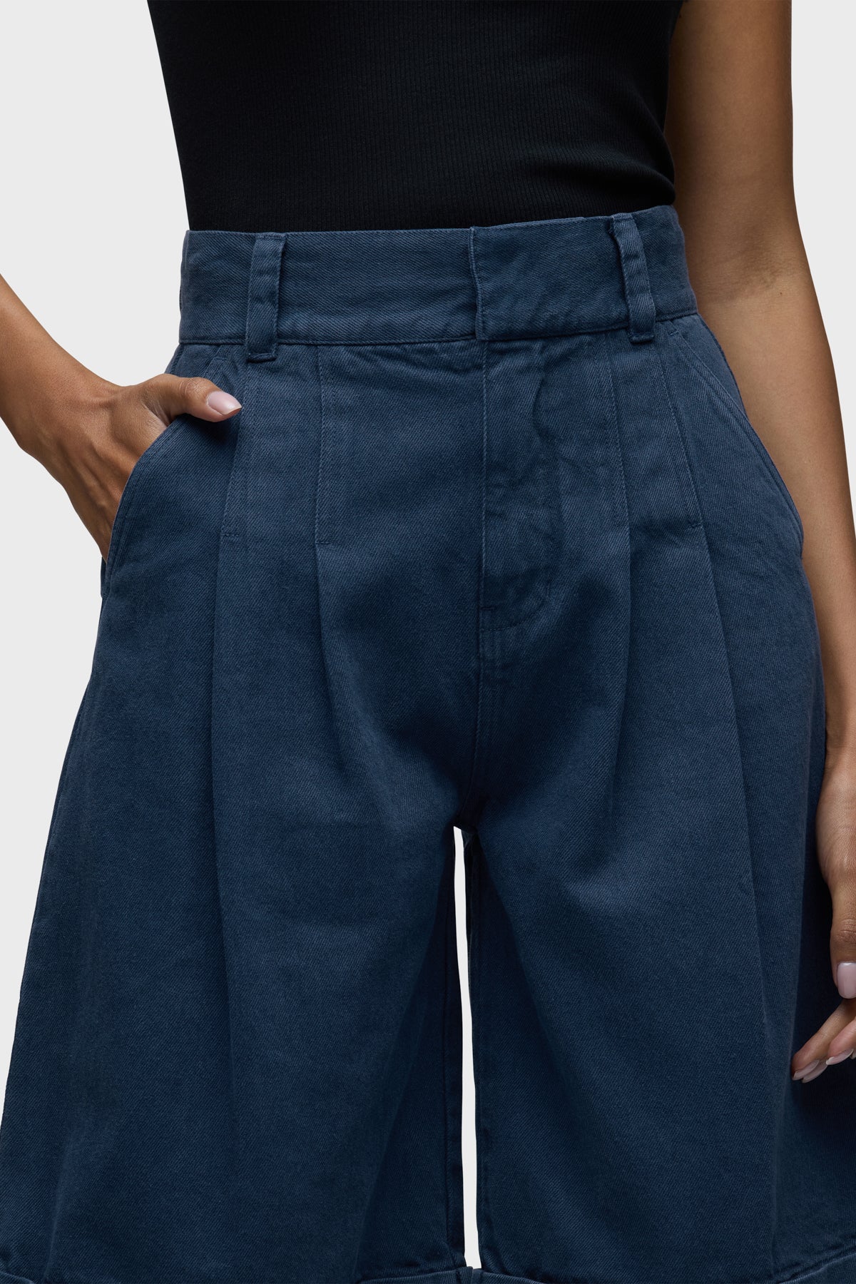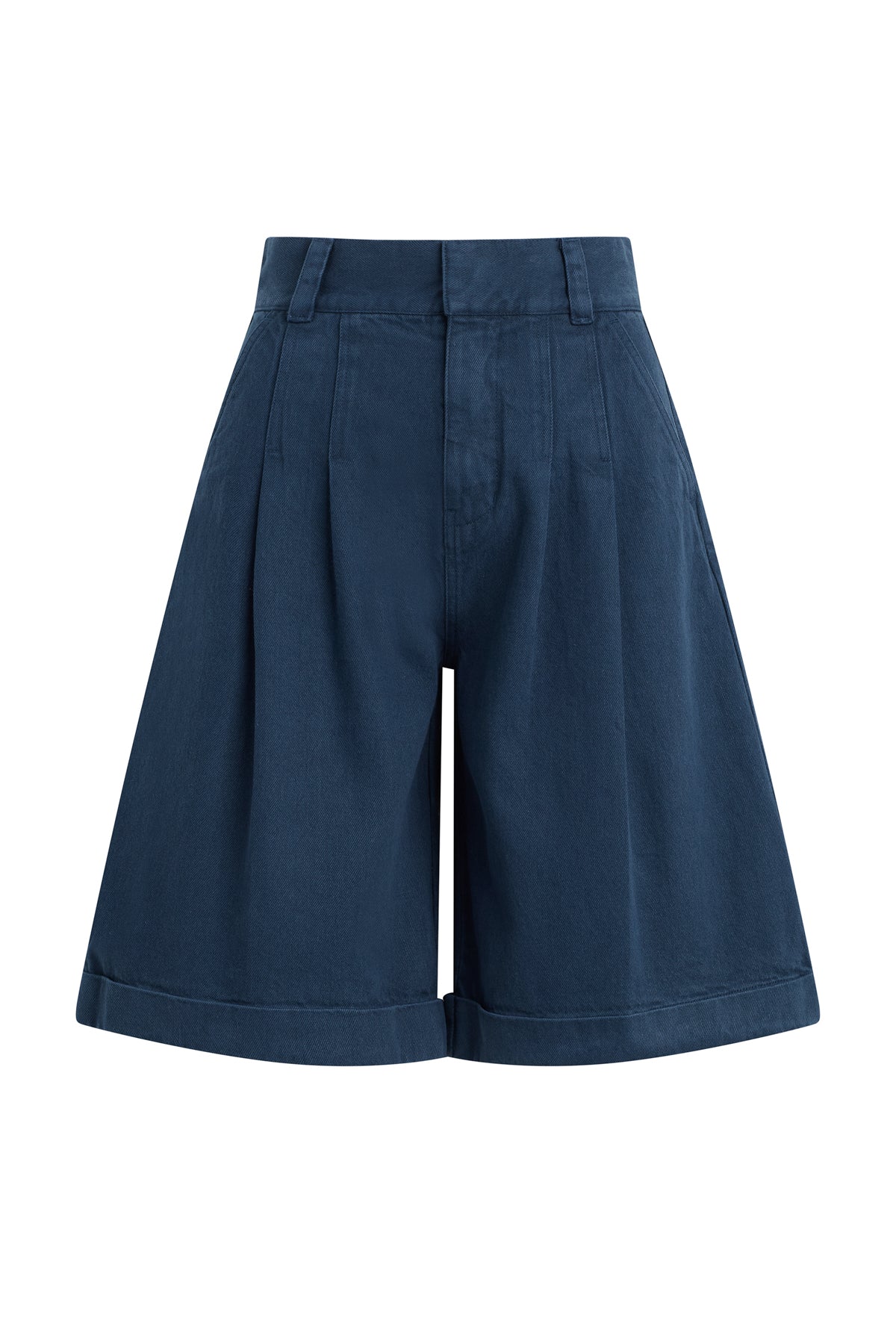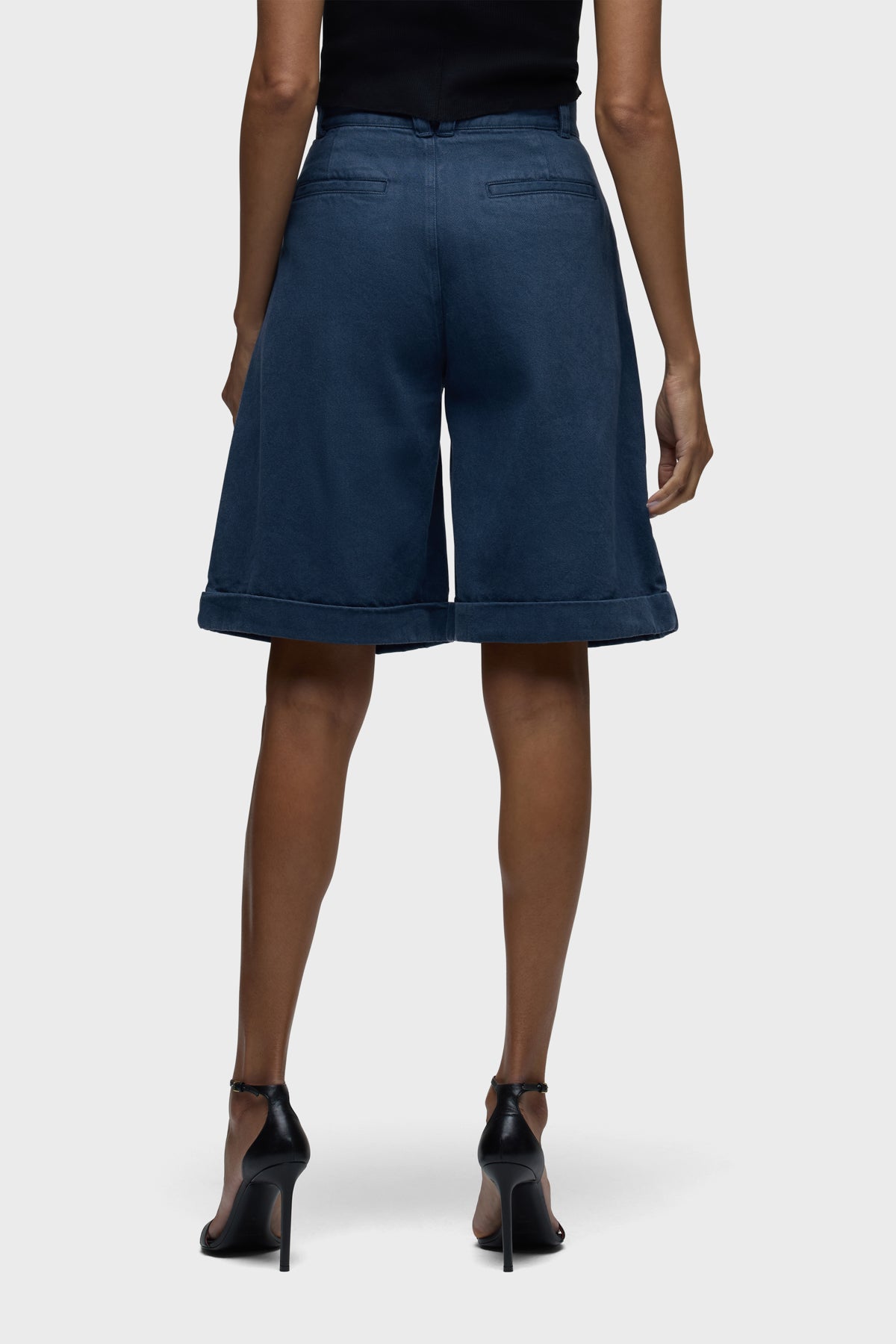 Part of our Brooks Nader collab capsule, the Brooks Bermuda Short in Moonlit Ocean is fitted at the waist with a wider leg opening and a cuffed hem. It also features trouser pockets, pleats at front and a hook-and-bar closure. This pair is cut from an overdyed deep blue linen fabric, made to be reminiscent of denim. This capsule was curated by model Brooks Nader and features her personal closet must-haves. -