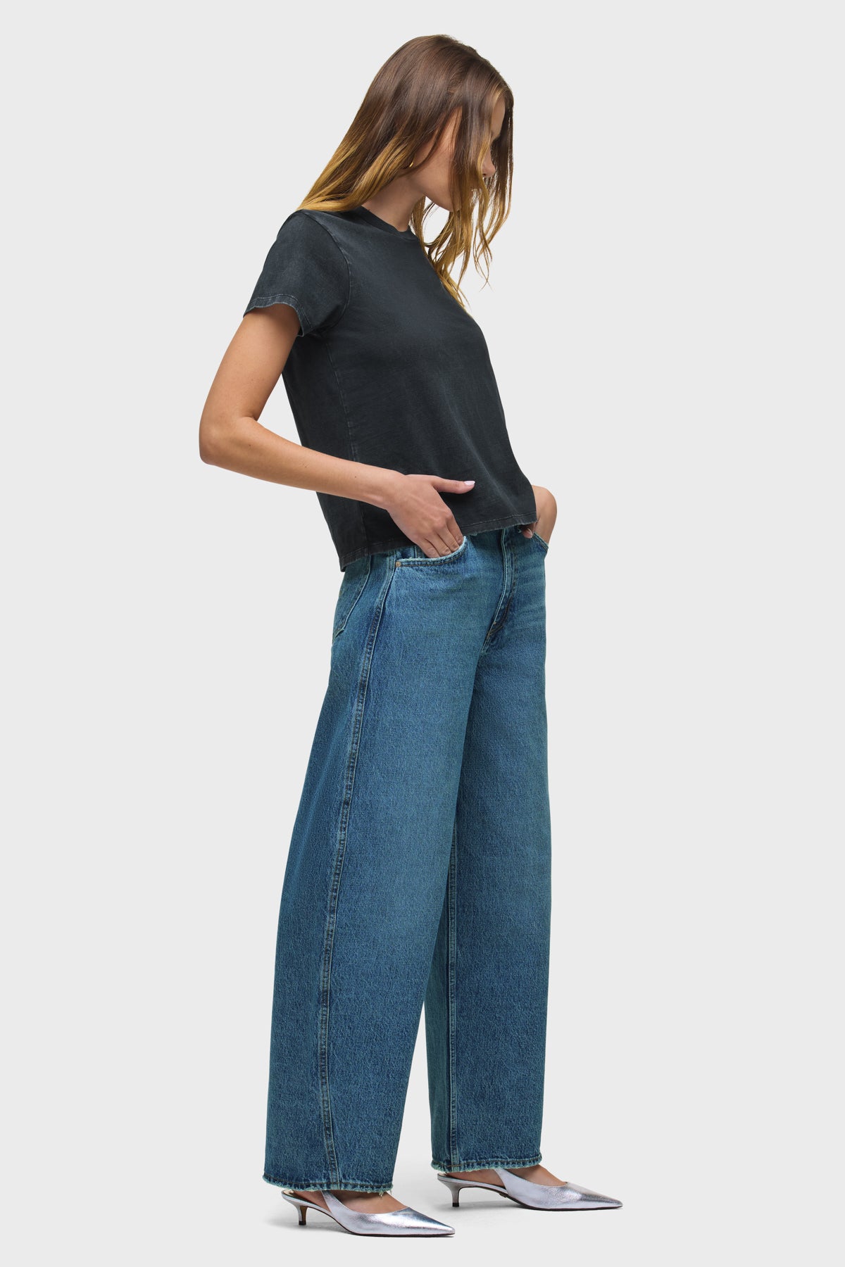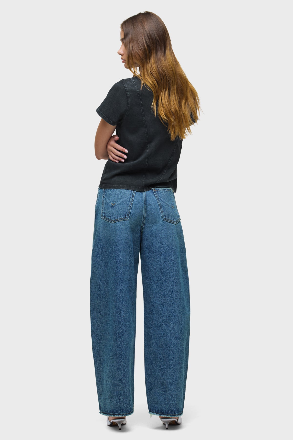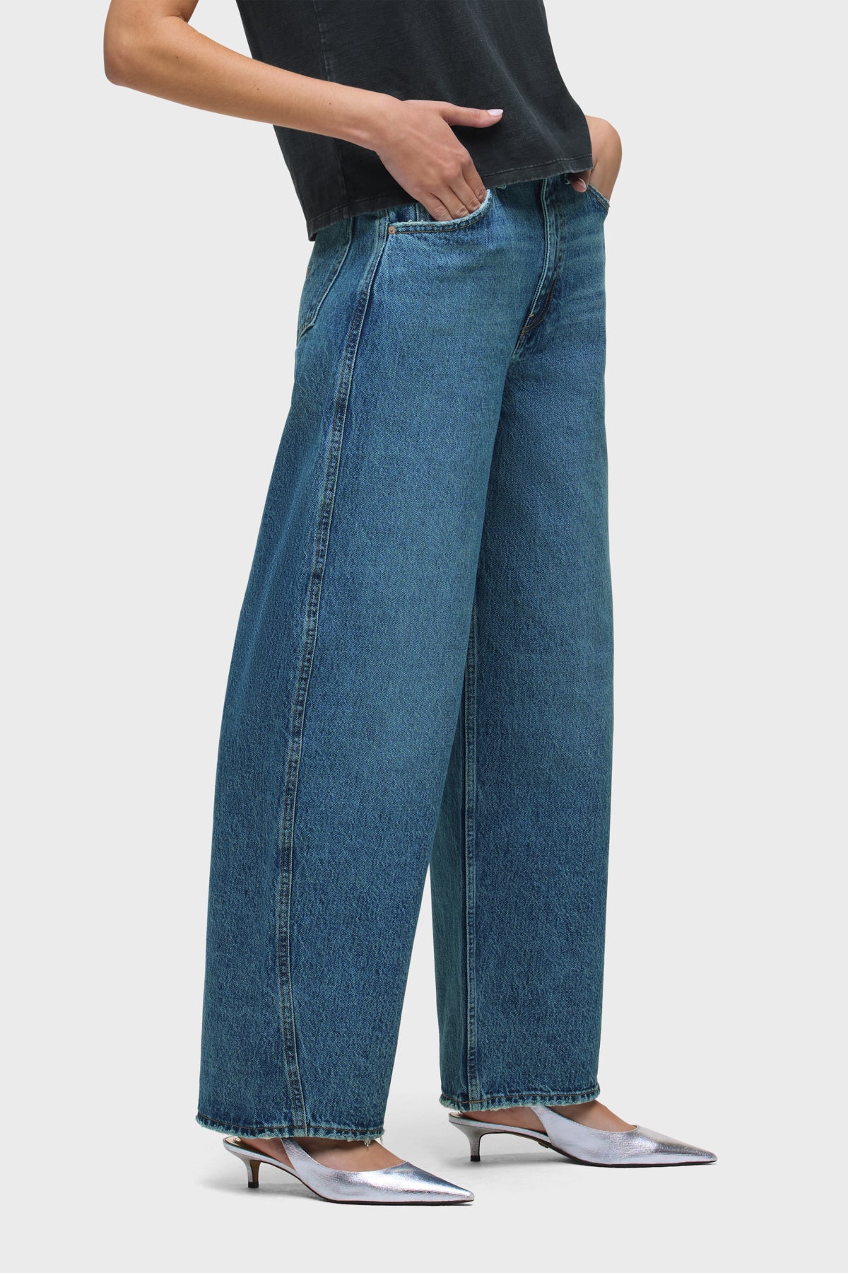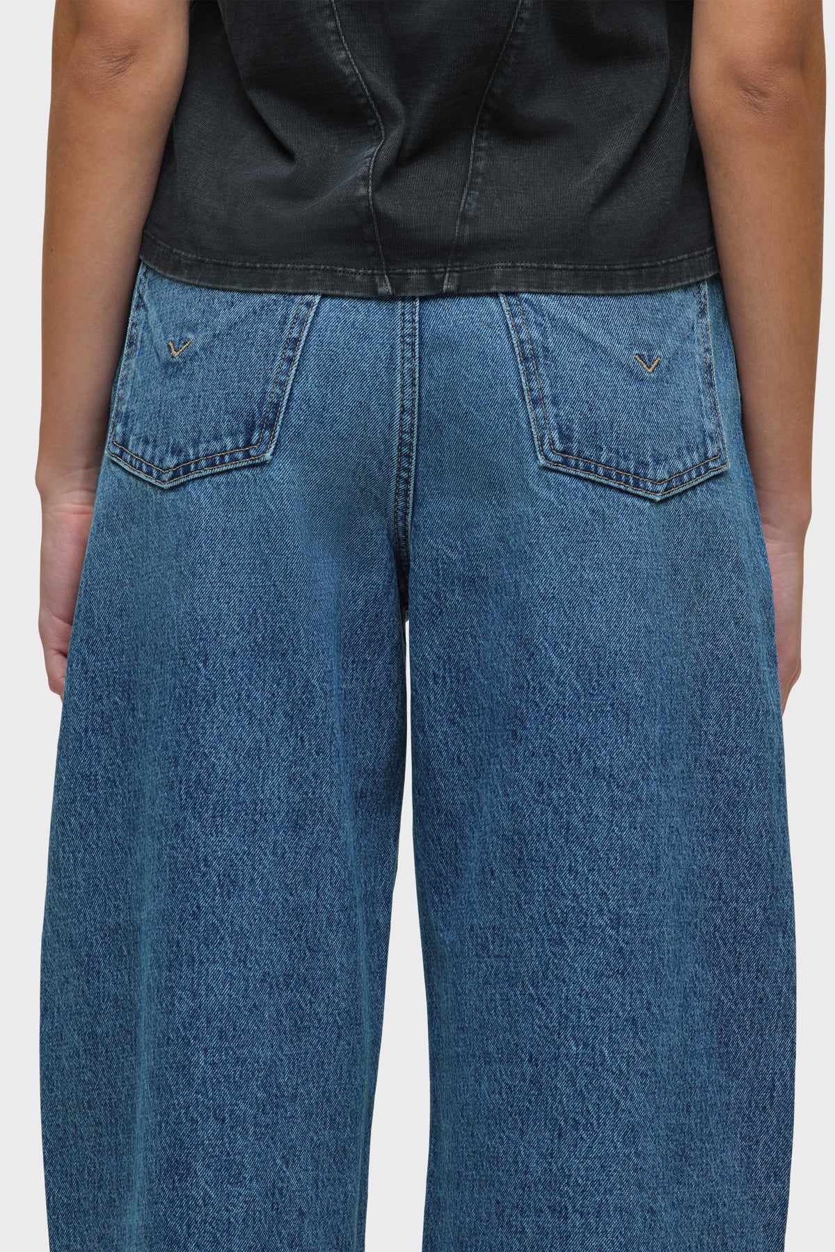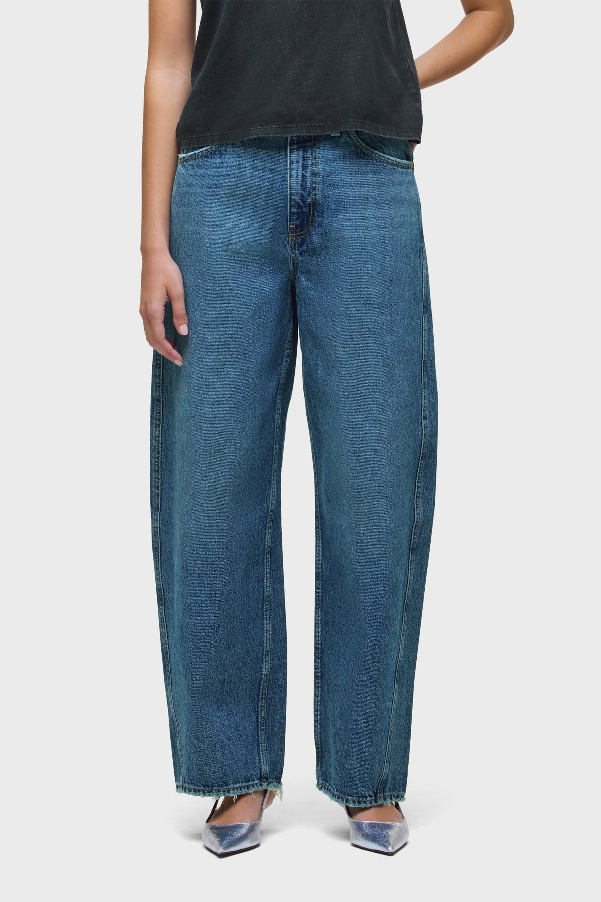 Our Bailey Relaxed Barrel Jean in Set Sail is an on-trend, fashion-forward fit that features a rounded outseam to accentuate its "barrel" look. This relaxed jean has a 30" inseam with a clean finished hem. It features medium-dark rigid indigo denim with classic five-pocket styling. -
