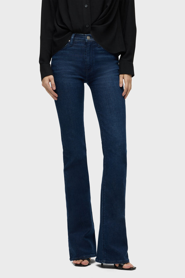 Streamlined and flattering, our Barbara High-Rise Bootcut Jean in dark indigo Athens is cut for a slim, contoured fit with an elevated waistline and a gently flared leg. Made from a breathable premium stretch denim, it’s finished with whiskering, edge grinding and classic five-pocket details. -