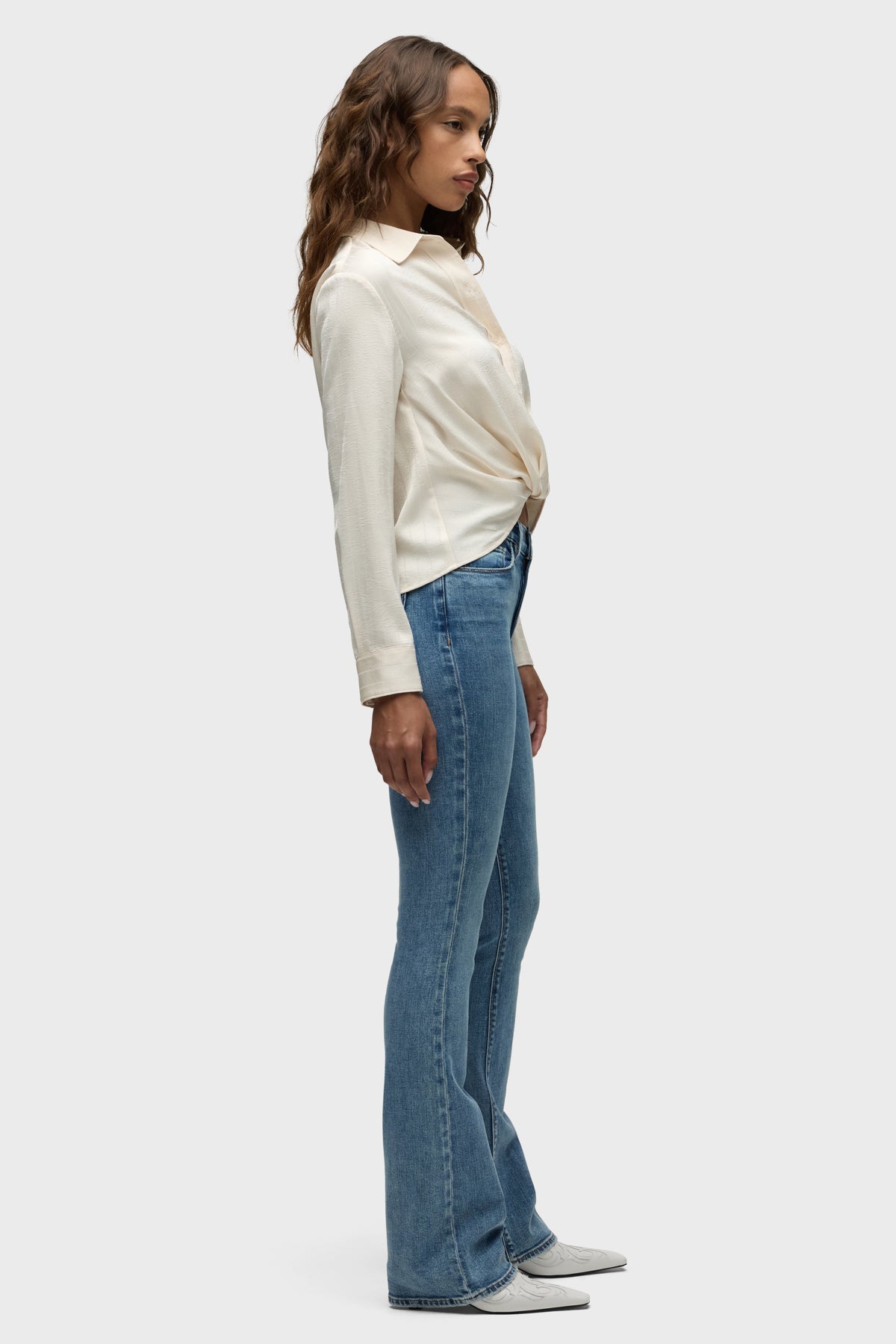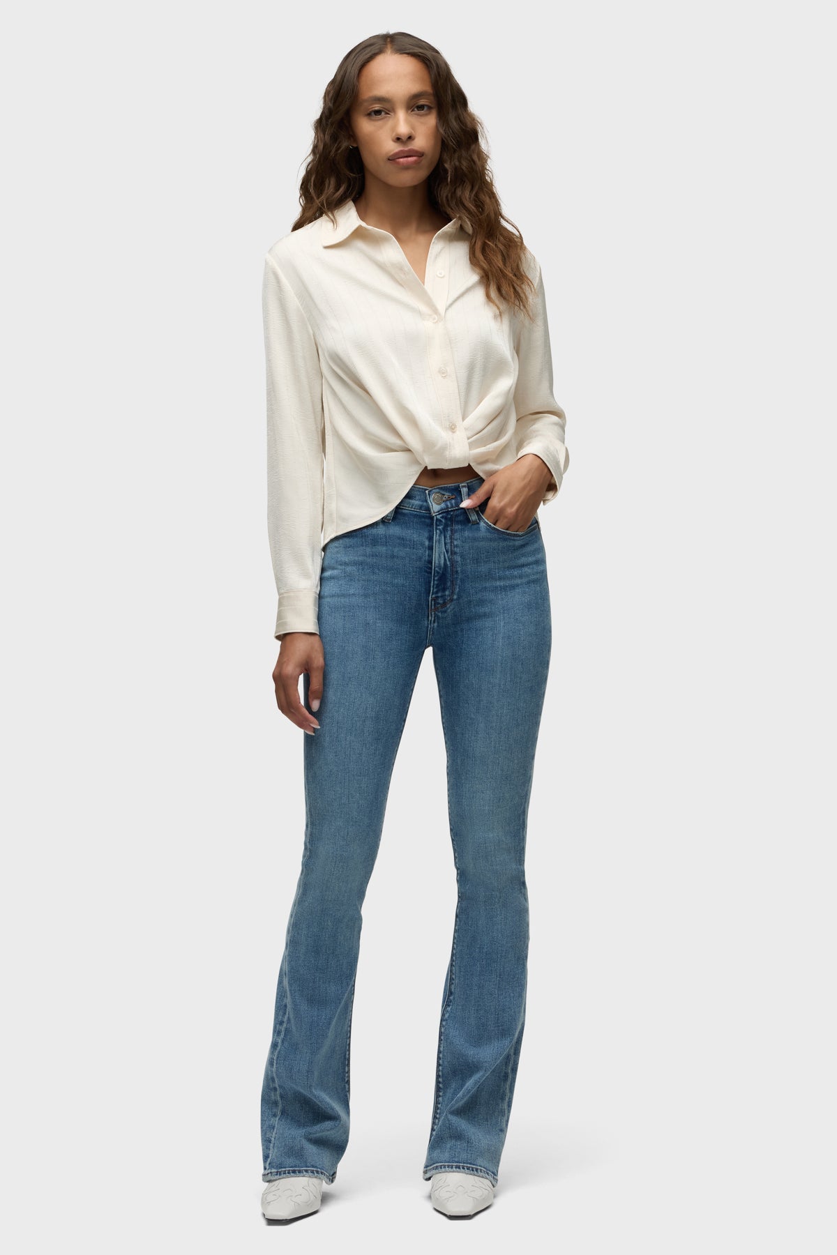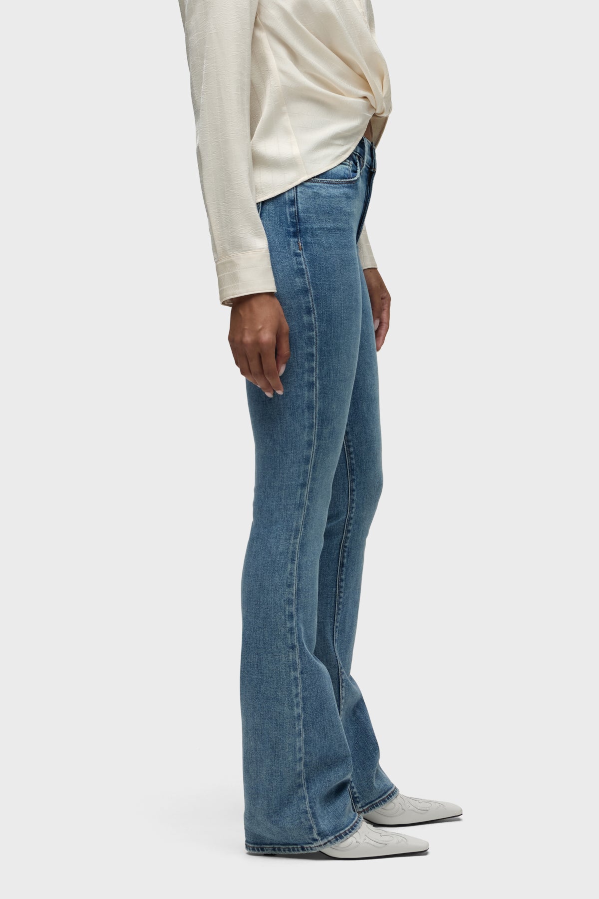 Streamlined and flattering, our Barbara High-Rise Bootcut Jean in light-indigo Catalina is cut for a slim, contoured fit with an elevated waistline and a gently flared leg. It’s finished with whiskering, edge grinding, classic five-pocket details and a clean hem. -