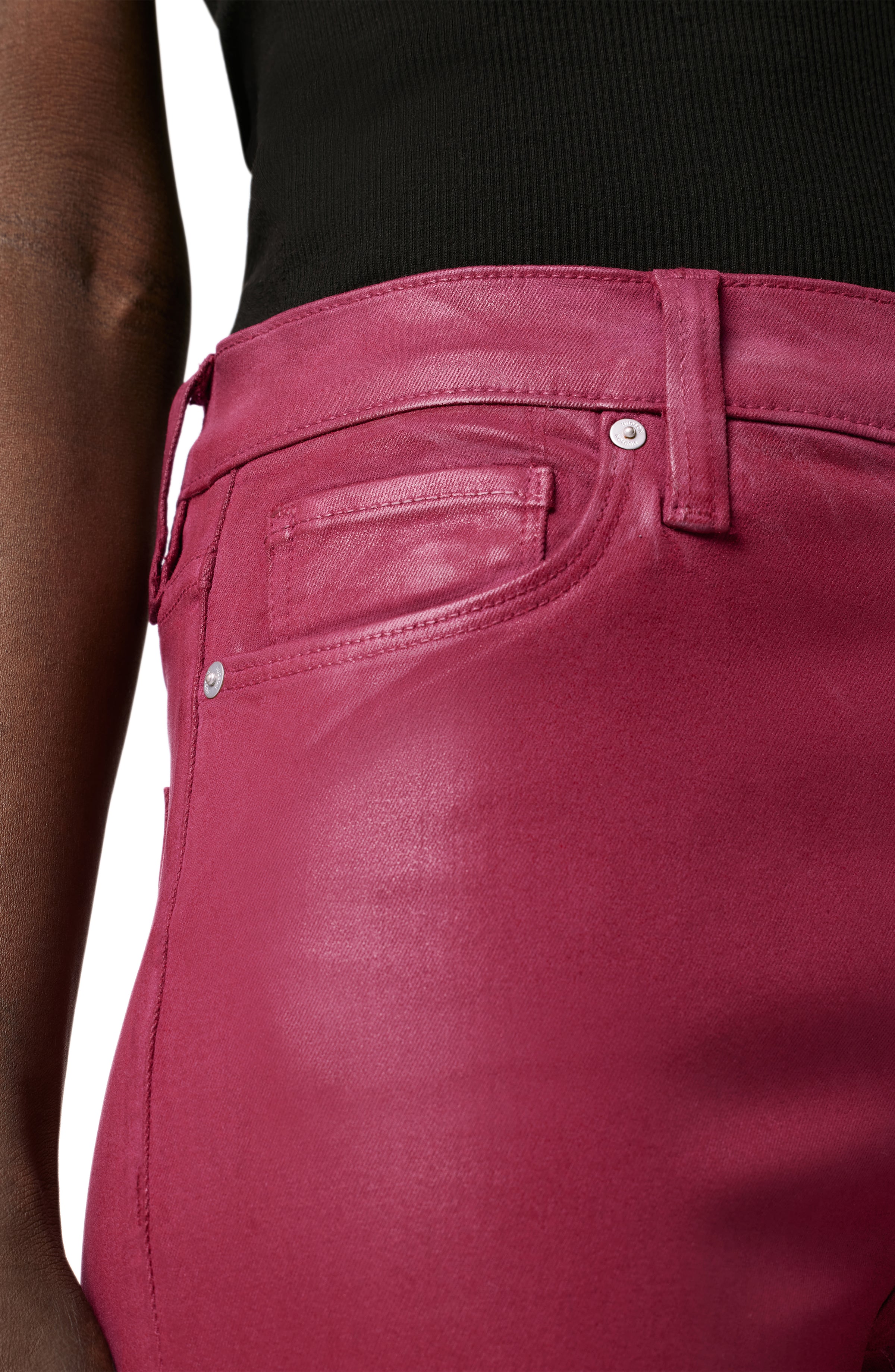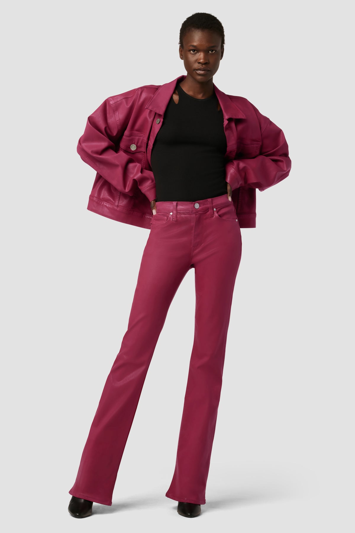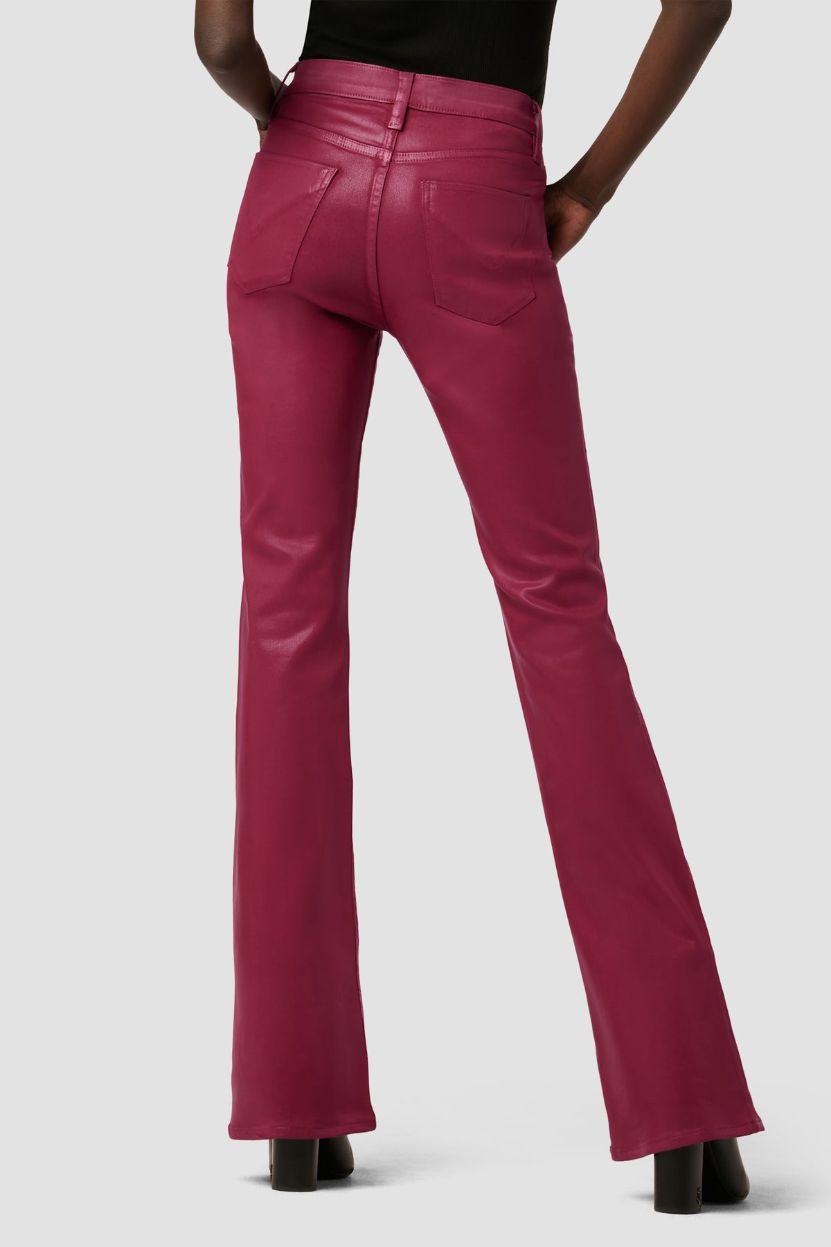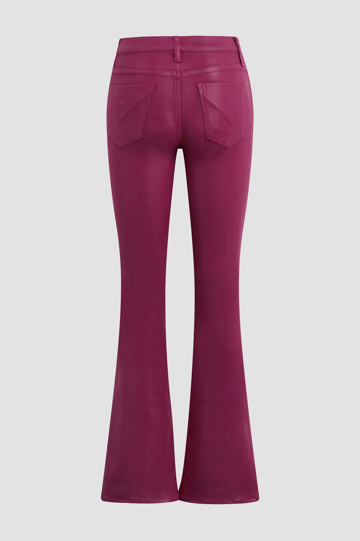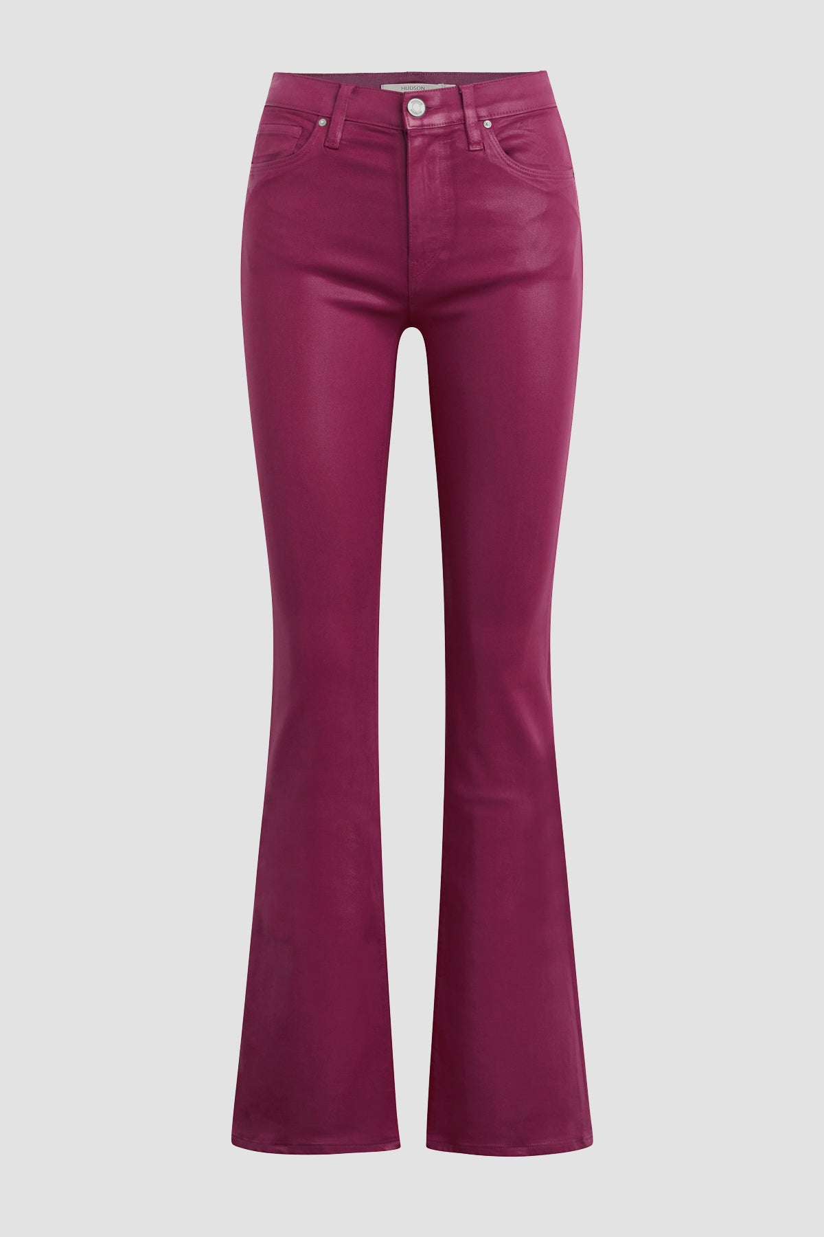 Streamlined and flattering, our Barbara High-Rise Bootcut Jean in moody Coated Beet Red is cut for a slim, contoured fit with subtle sheen. Features an elevated waistline and a gently flared leg with a clean hem. -