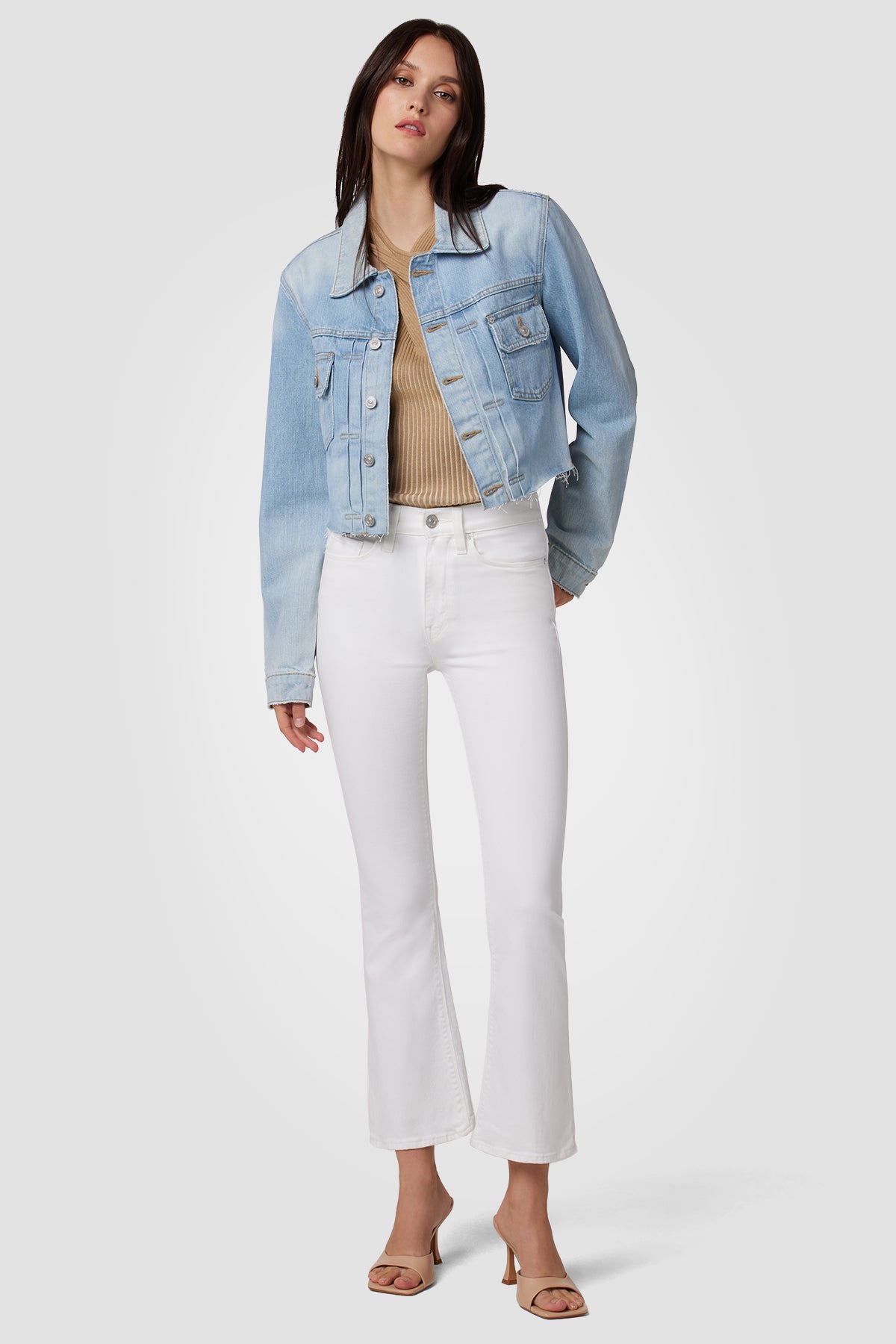 Streamlined and flattering, our Barbara High-Rise Bootcut Crop Jean in White is cut for a slim, contoured fit with an elevated waistline and a gently flared cropped leg. Made from premium comfort stretch denim, it’s the pair your collection is missing. -