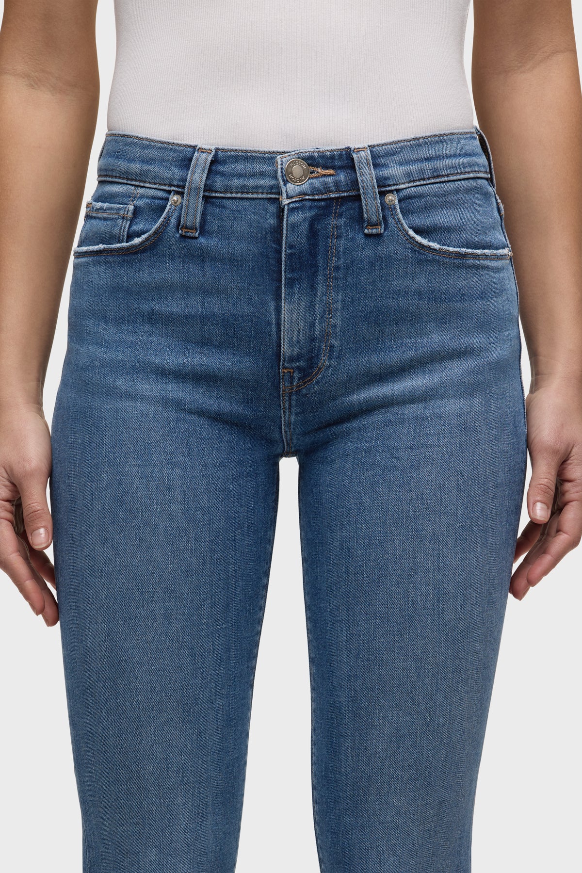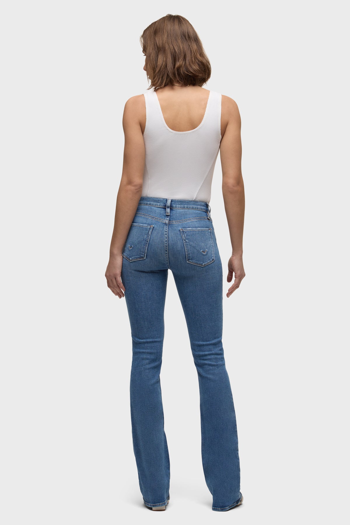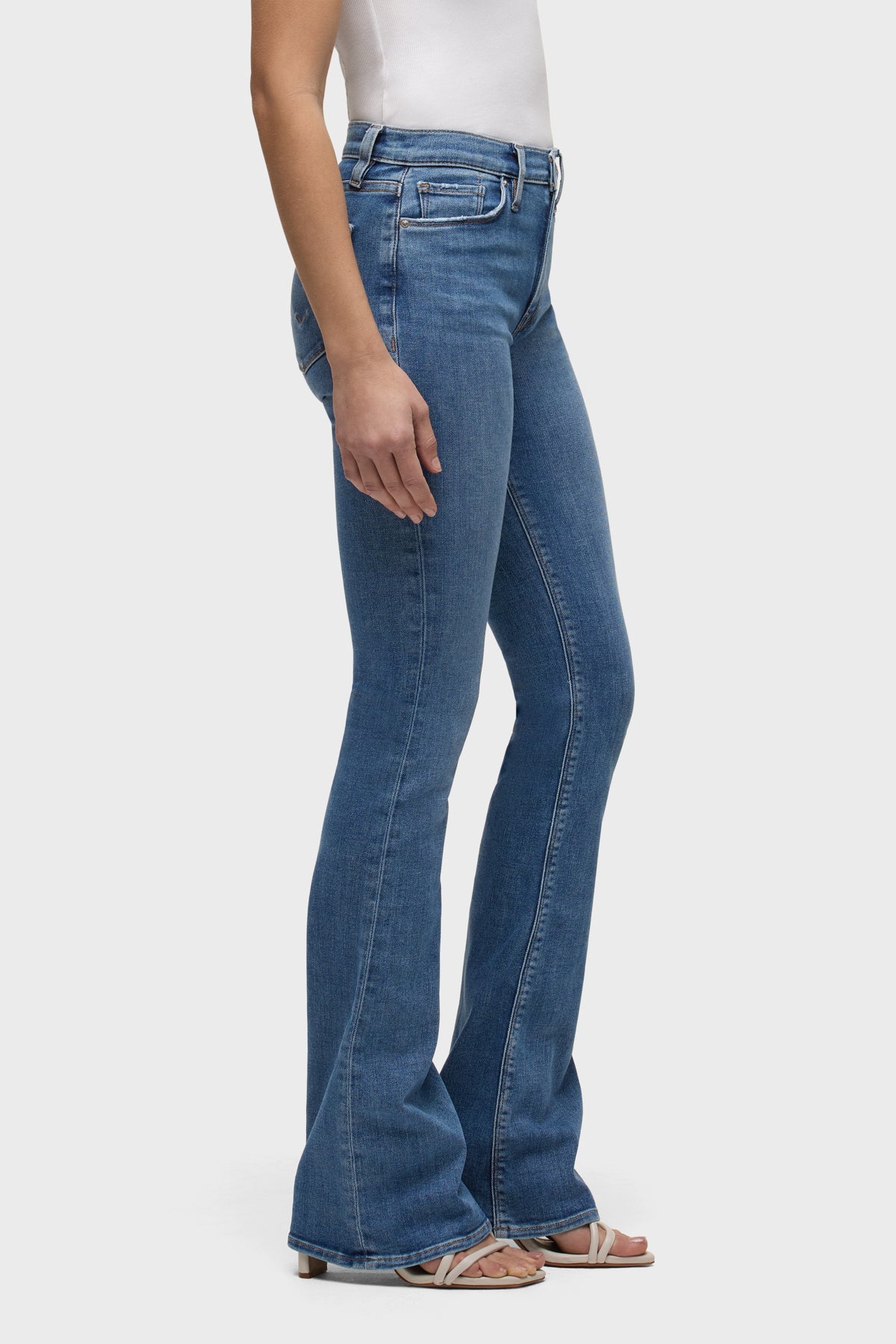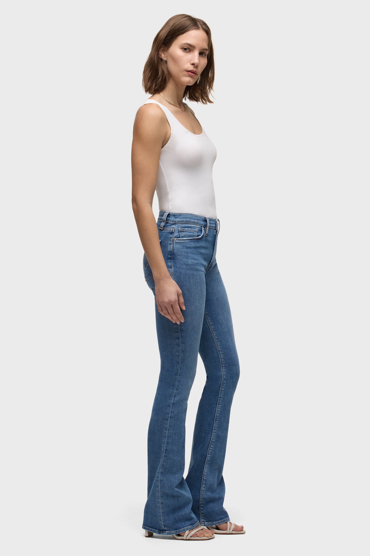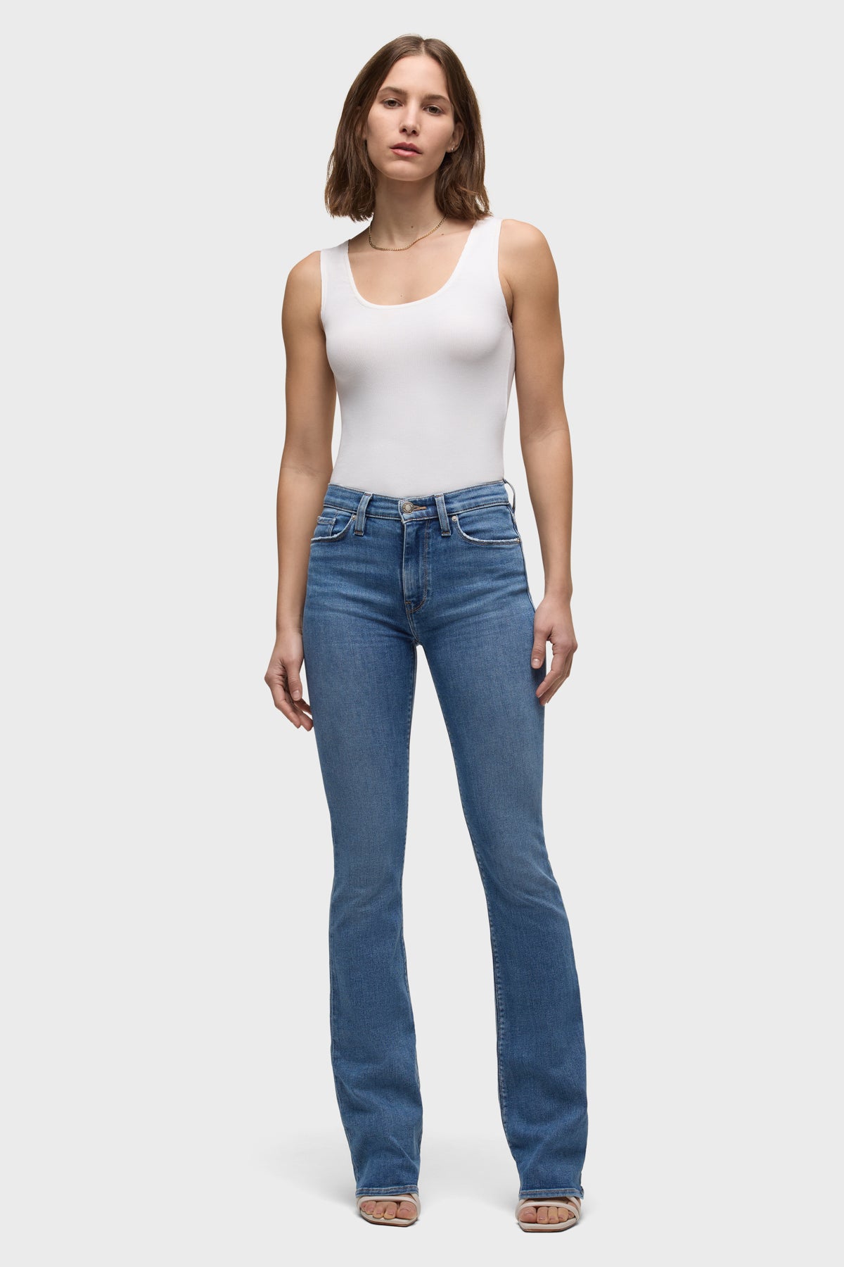 Streamlined and flattering, our Barbara High-Rise Bootcut Petite Jean in Revive has a slim, contoured fit with an elevated waistline and a gently flared leg. It is finished with a full-length 30" inseam and clean finished hem. This pair is made of stretch denim that has a sustainable element with recycled polyester in a medium indigo wash. -