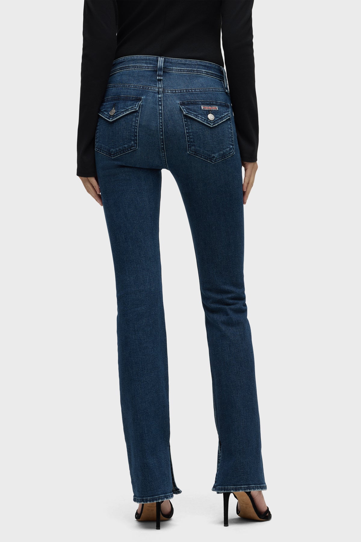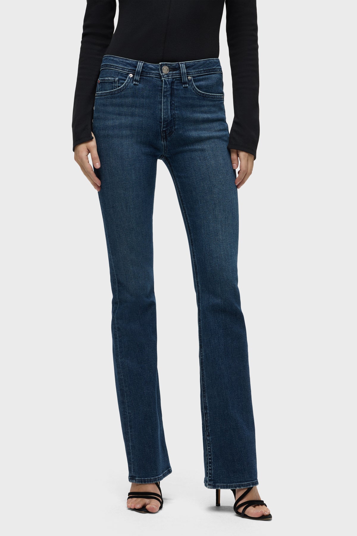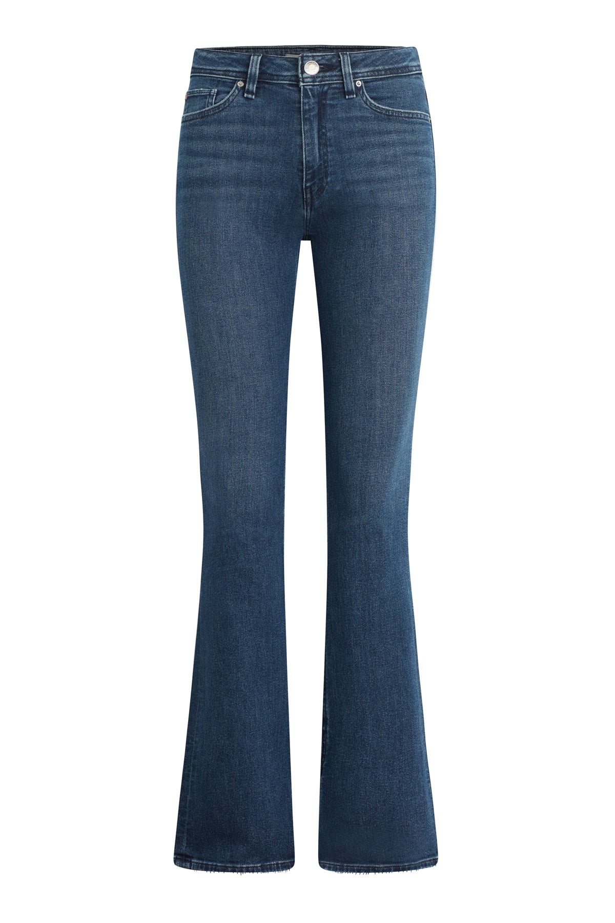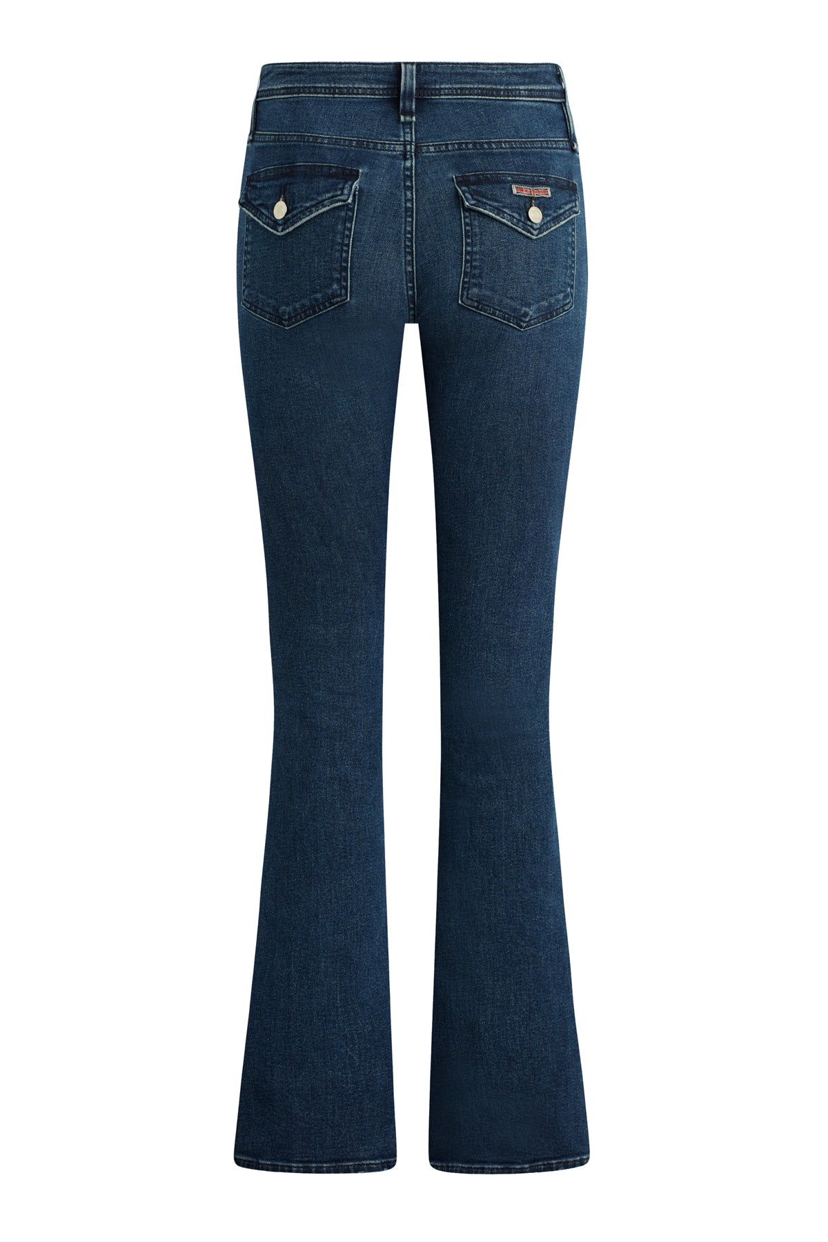 Streamlined and flattering, our Barbara High-Rise Bootcut w/ Flap Jean in medium-indigo Olympia is cut for a slim, contoured fit with an elevated waistline and a gently flared leg. The pair debuts for Fall with our updated button-flap pocket with a new modern shape. Made from a premium stretch denim, it’s finished with grinding along the edges and a clean hem. -