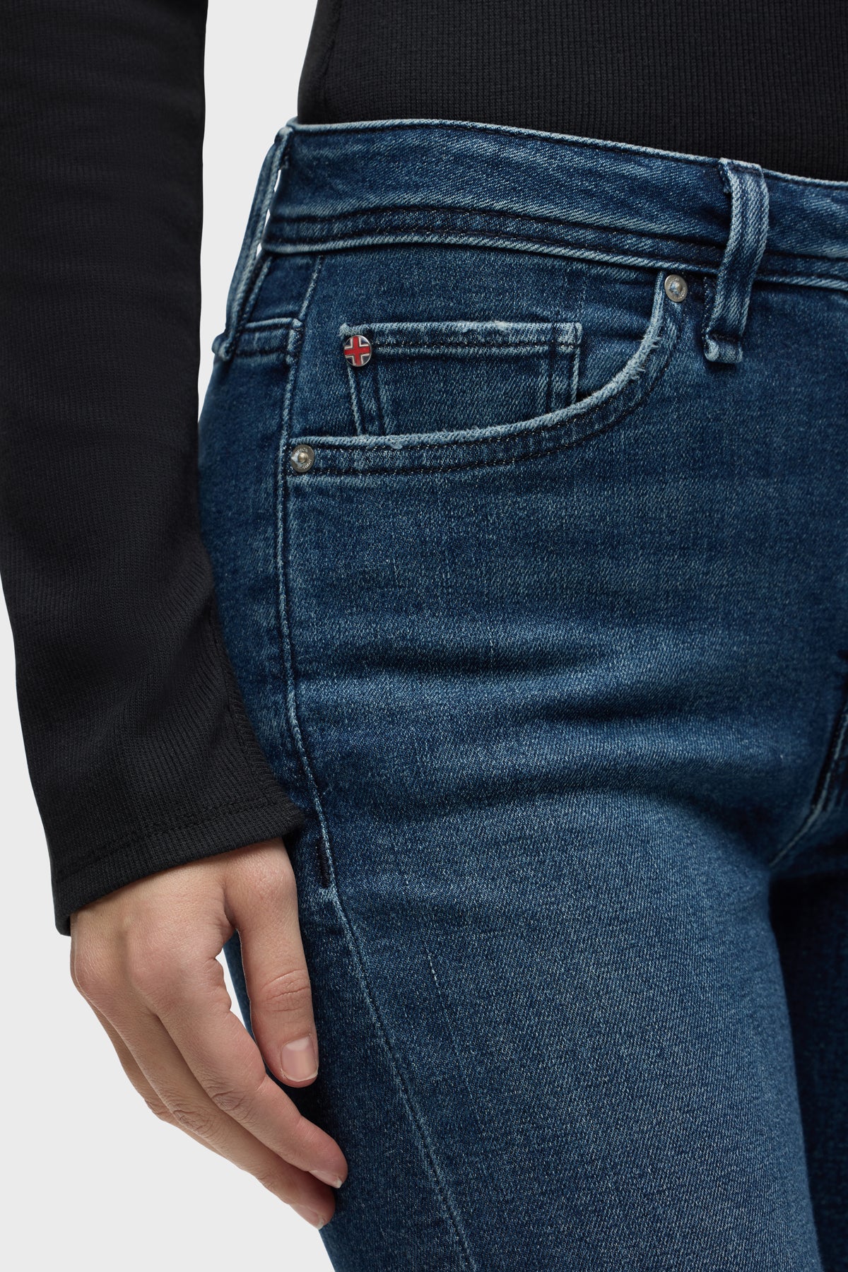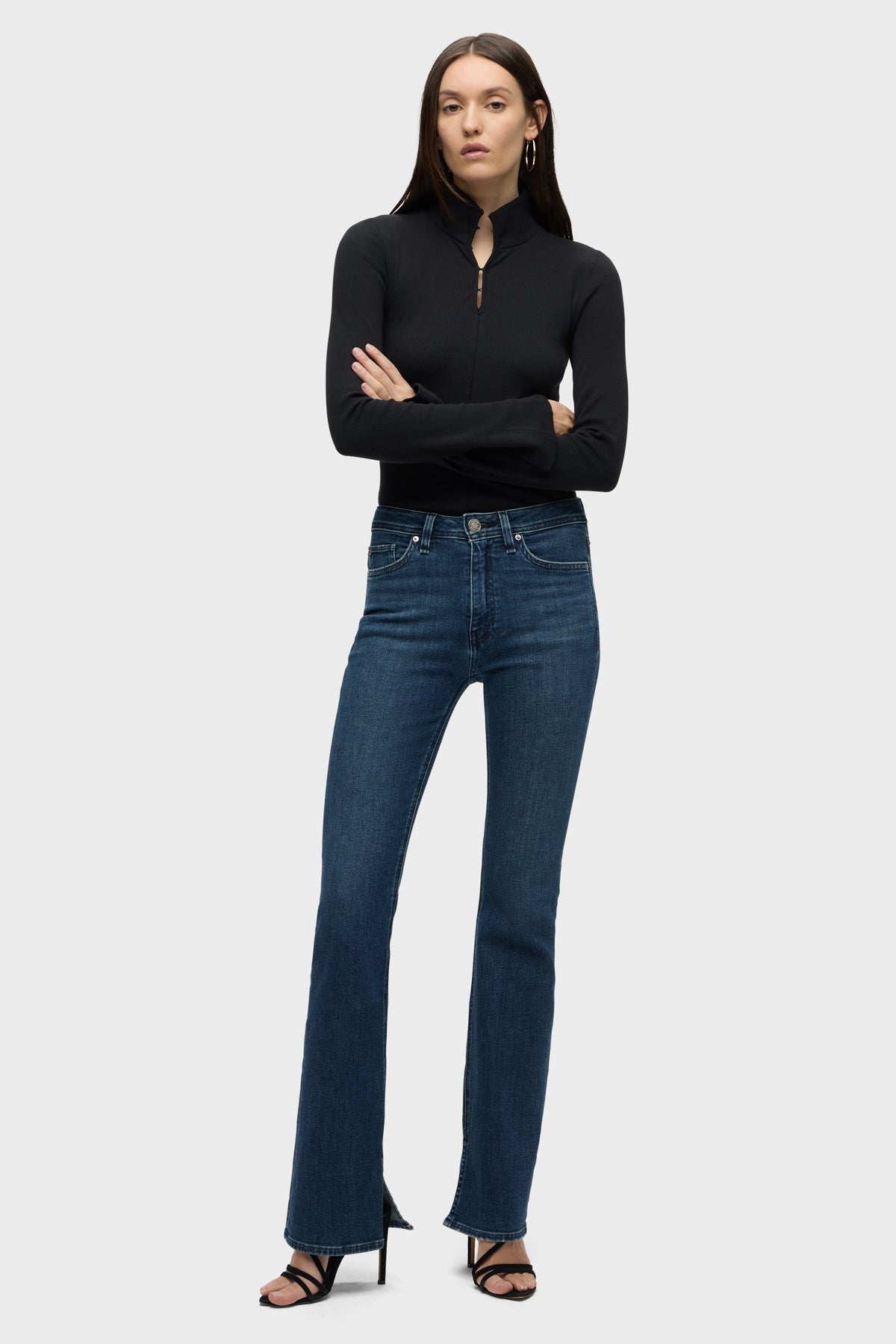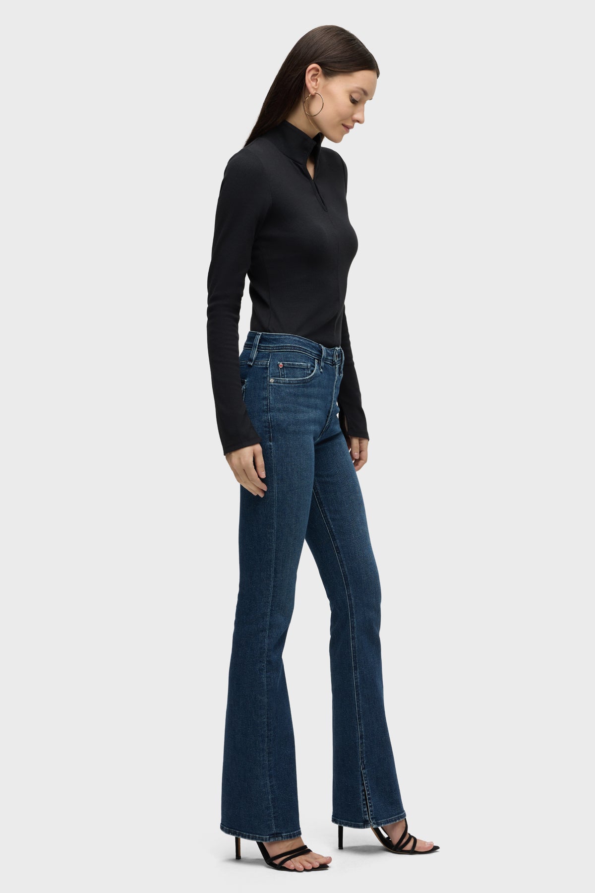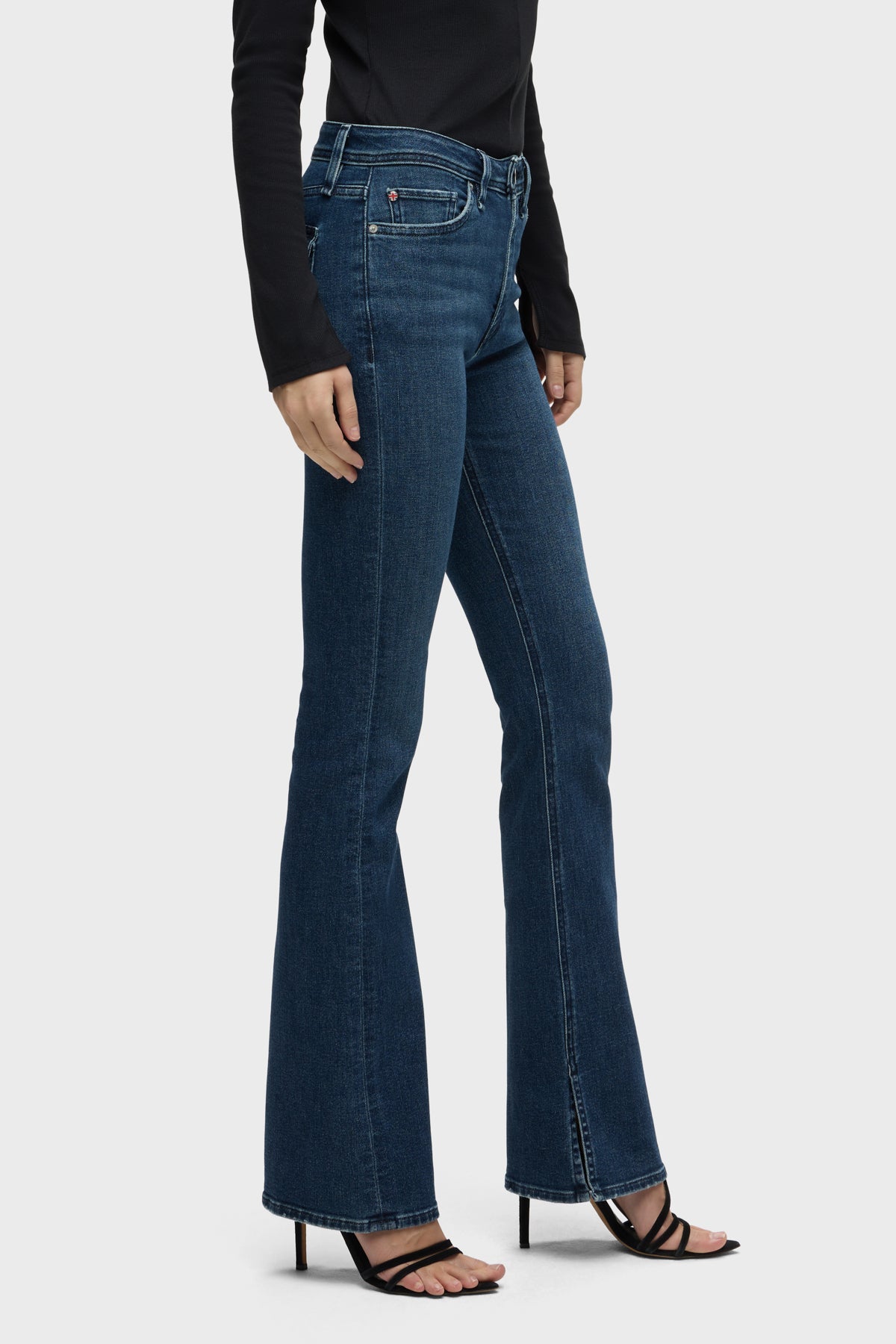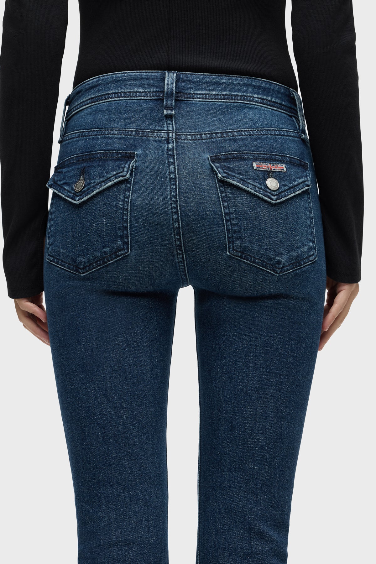 Streamlined and flattering, our Barbara High-Rise Bootcut w/ Flap Jean in medium-indigo Olympia is cut for a slim, contoured fit with an elevated waistline and a gently flared leg. The pair debuts for Fall with our updated button-flap pocket with a new modern shape. Made from a premium stretch denim, it’s finished with grinding along the edges and a clean hem. -