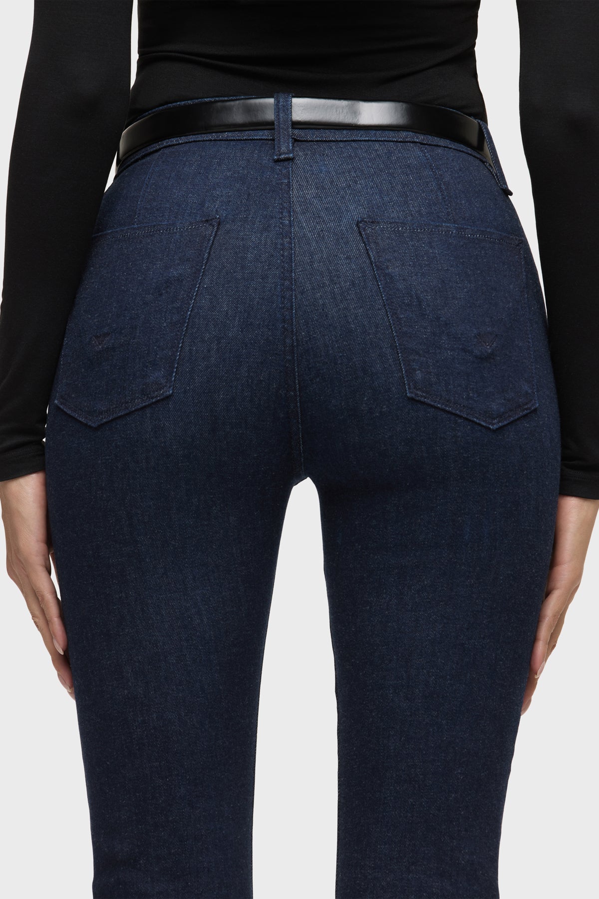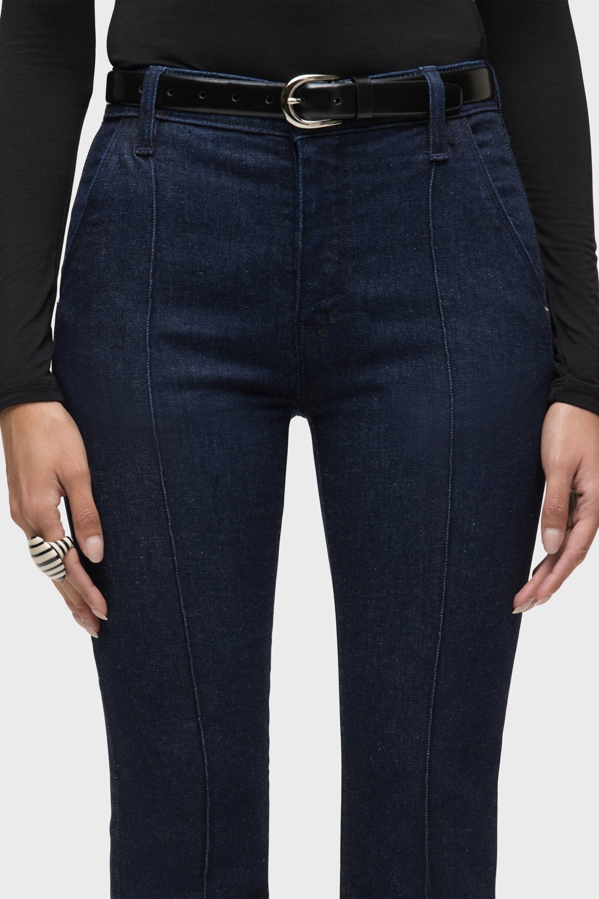 Streamlined and flattering, our Barbara High-Rise Bootcut Jean with Zipper in Pot of Gold has a slim, contoured fit with an elevated waistline, a gently flared leg and trouser pocket detailing. This pair is made of dark stretch denim and features pintuck detailing. It is finished with a 32" inseam and shiny nickel zippers at the hem. -