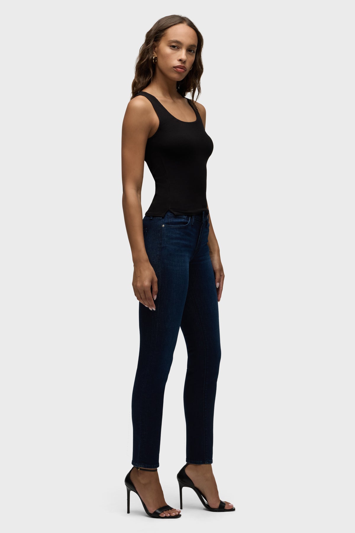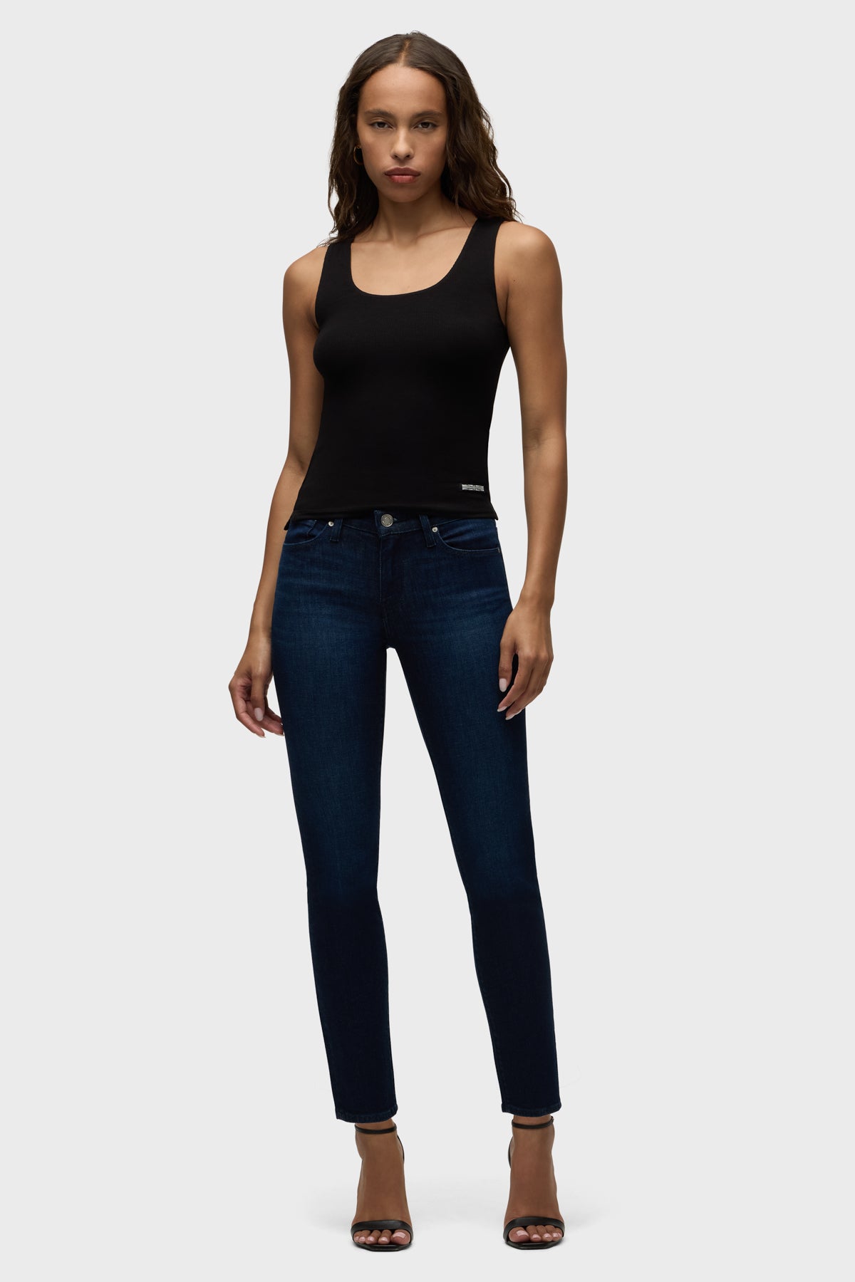 Streamlined and flattering, our Barbara High-Rise Super Skinny Ankle Jean is cut for a slim, contoured fit with an elevated waistline. Inspired by our best-selling wash, Requiem, Rescue keeps the true rich, dark base of the classic made from premium super stretch denim. The refined wash is finished with whiskering, grinding along the edges, classic five-pocket details and tonal thread for a clean, crisp look. -