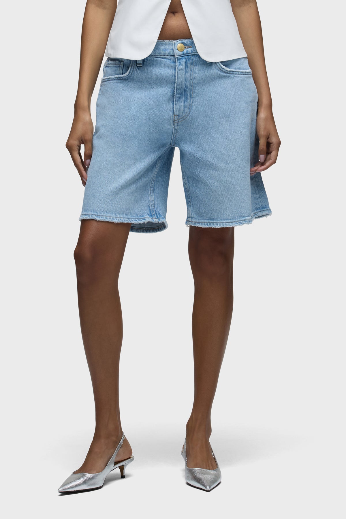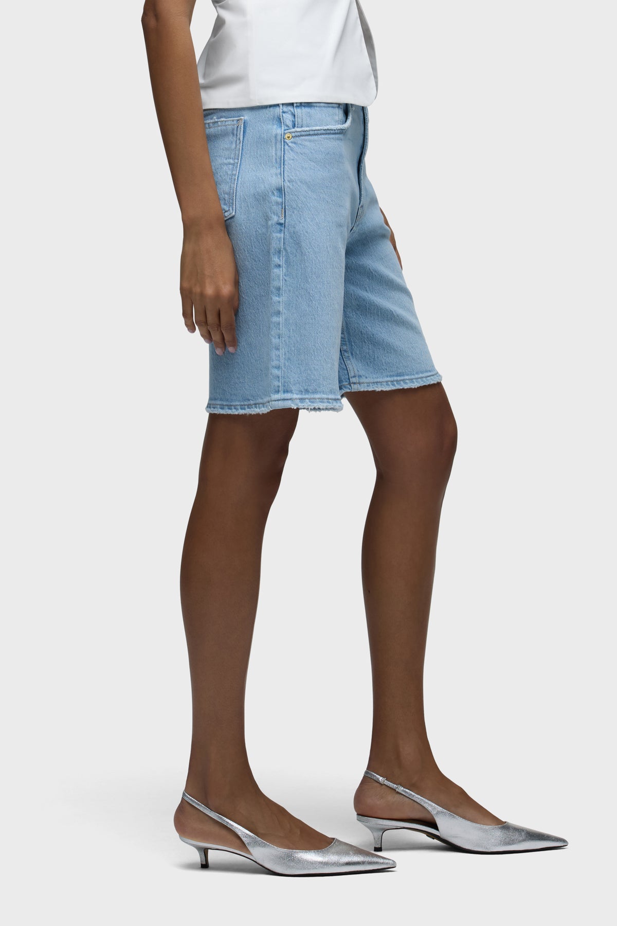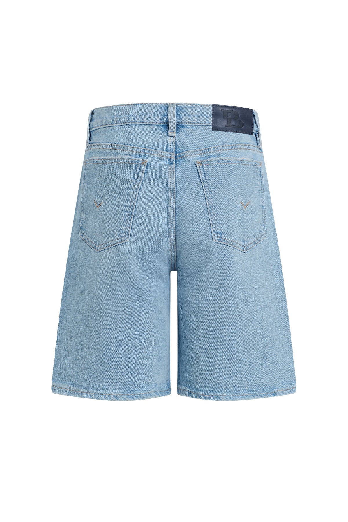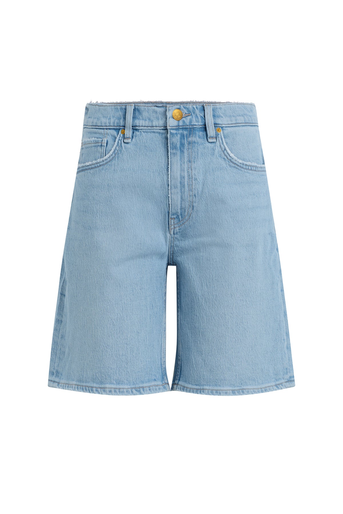 Part of our Brooks Nader collab capsule, the Bayou Boyfriend Short in Basin Bridge is a relaxed short that is meant to be worn loose on the hips with a clean finished hem. To elevate the look, we added gold branded buttons and a branded leather patch to the back waistband. This pair is made of comfort stretch denim in a light indigo wash with heavy stone washing, bleaching, whiskering and edge grinding. This capsule was curated by model Brooks Nader and features her personal closet must-haves. -