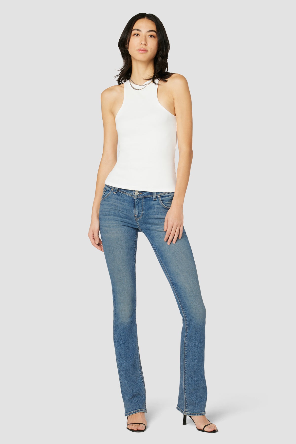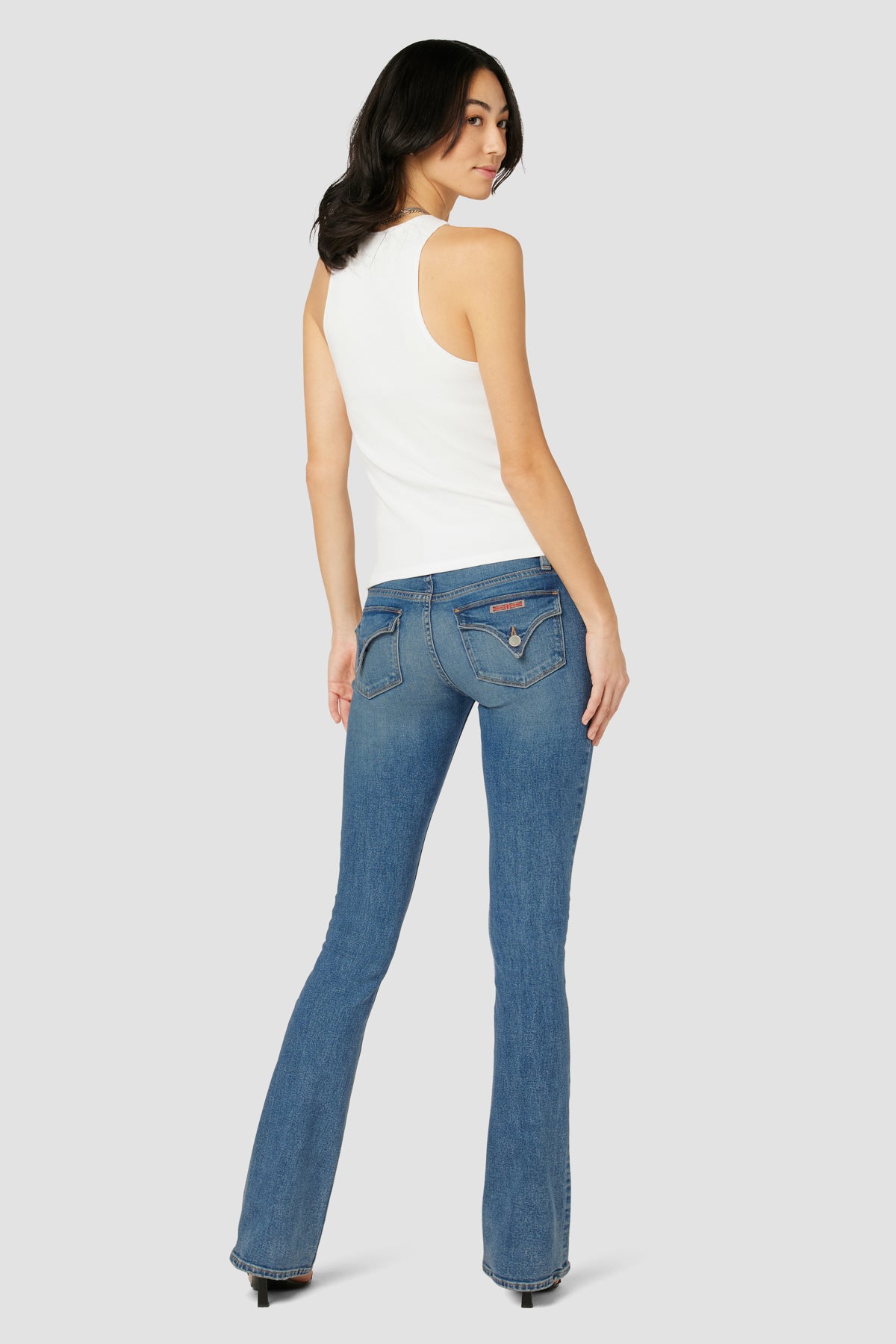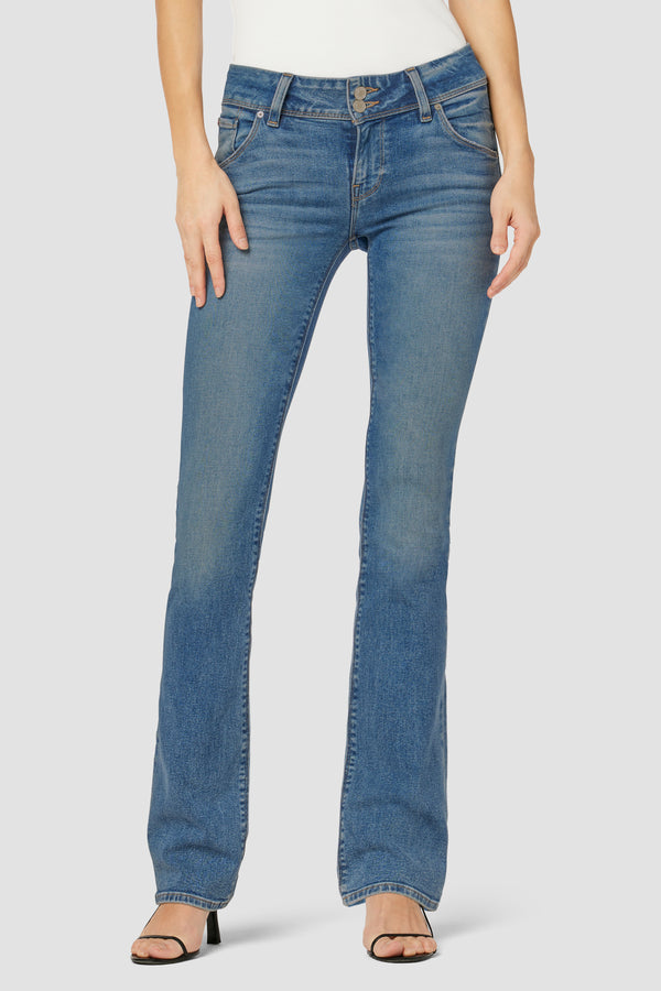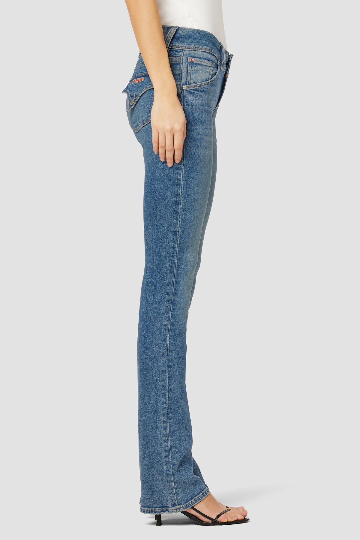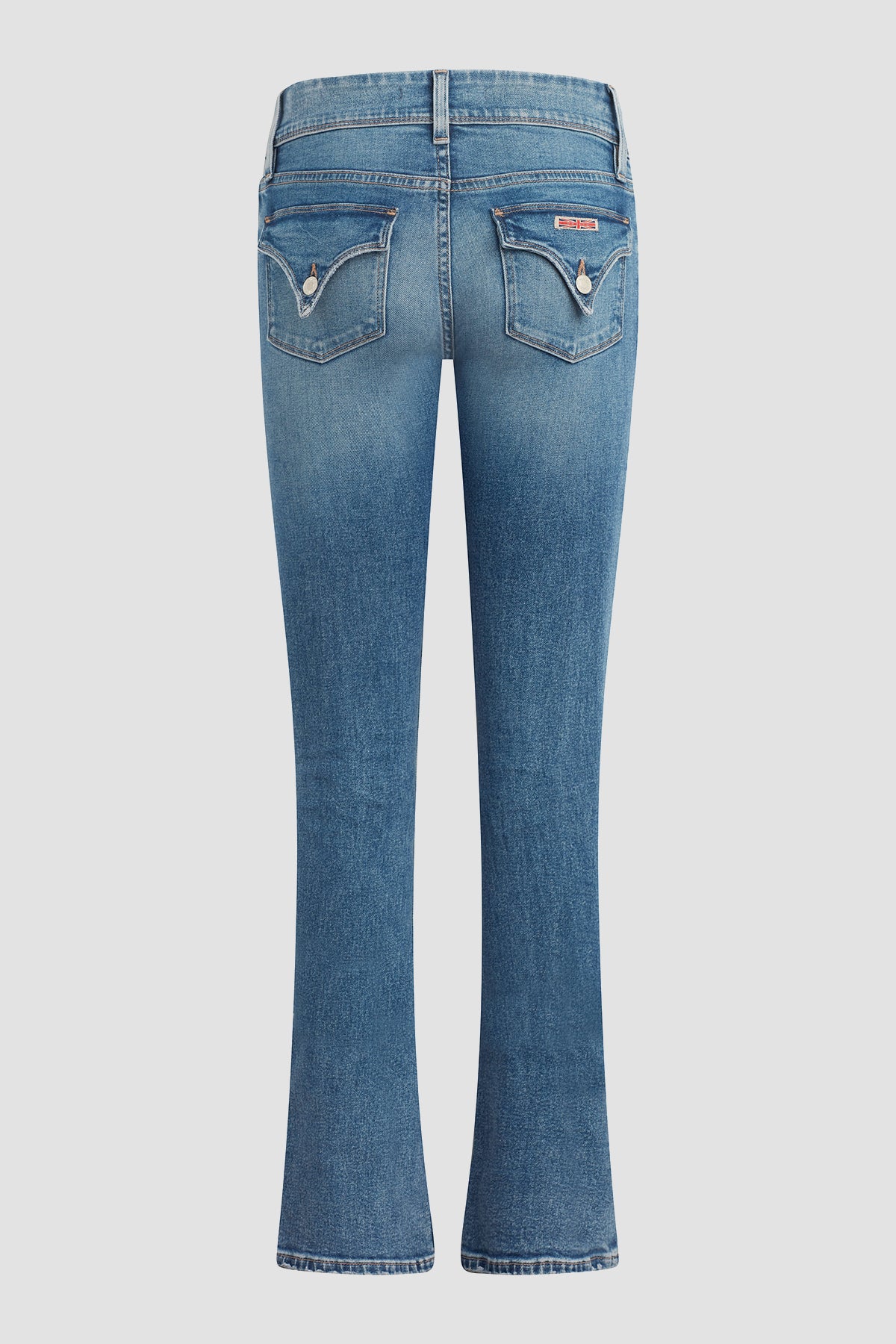 Cut with premium super stretch denim that smooths, sculpts, and will never sag, our Beth Mid-Rise Baby Bootcut Jean in Golden features a subtly flared silhouette and our signature button-flap back pockets.