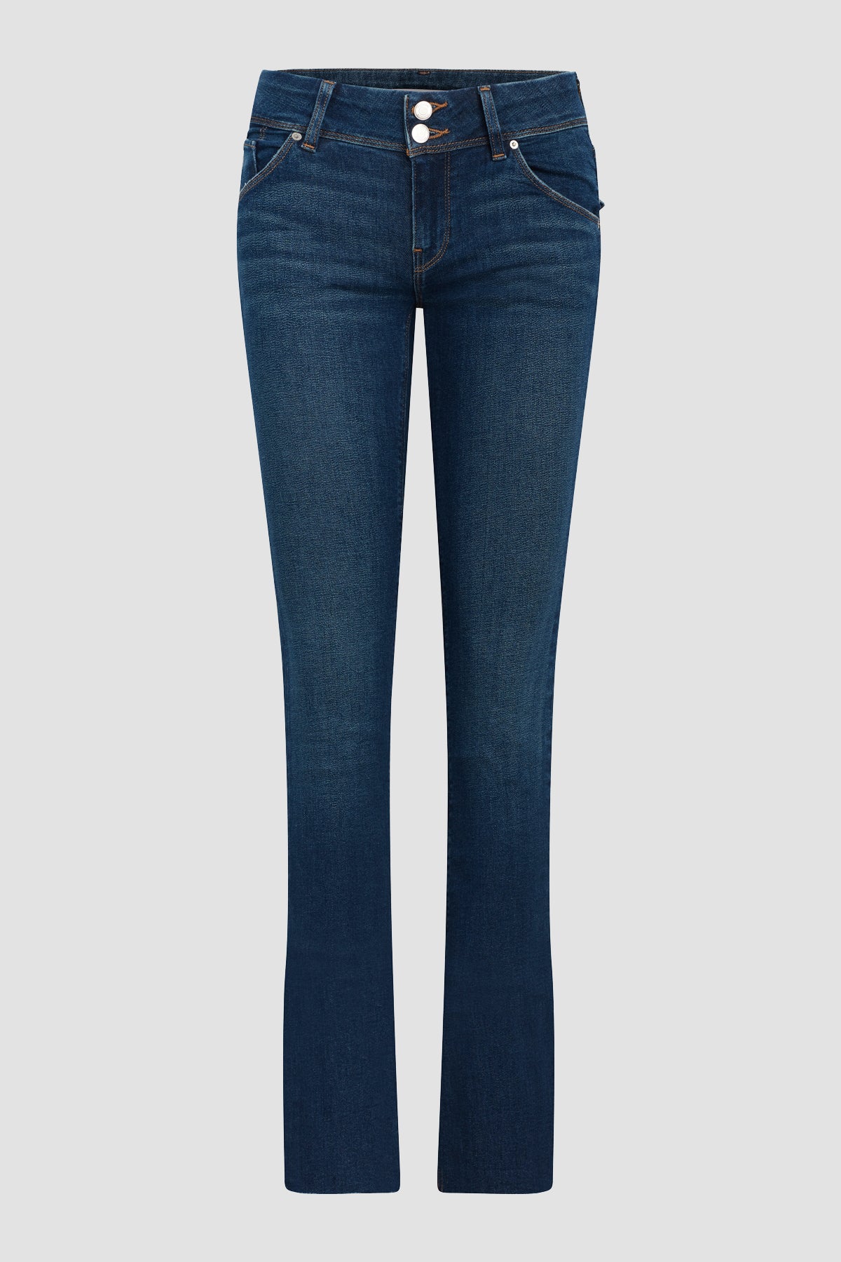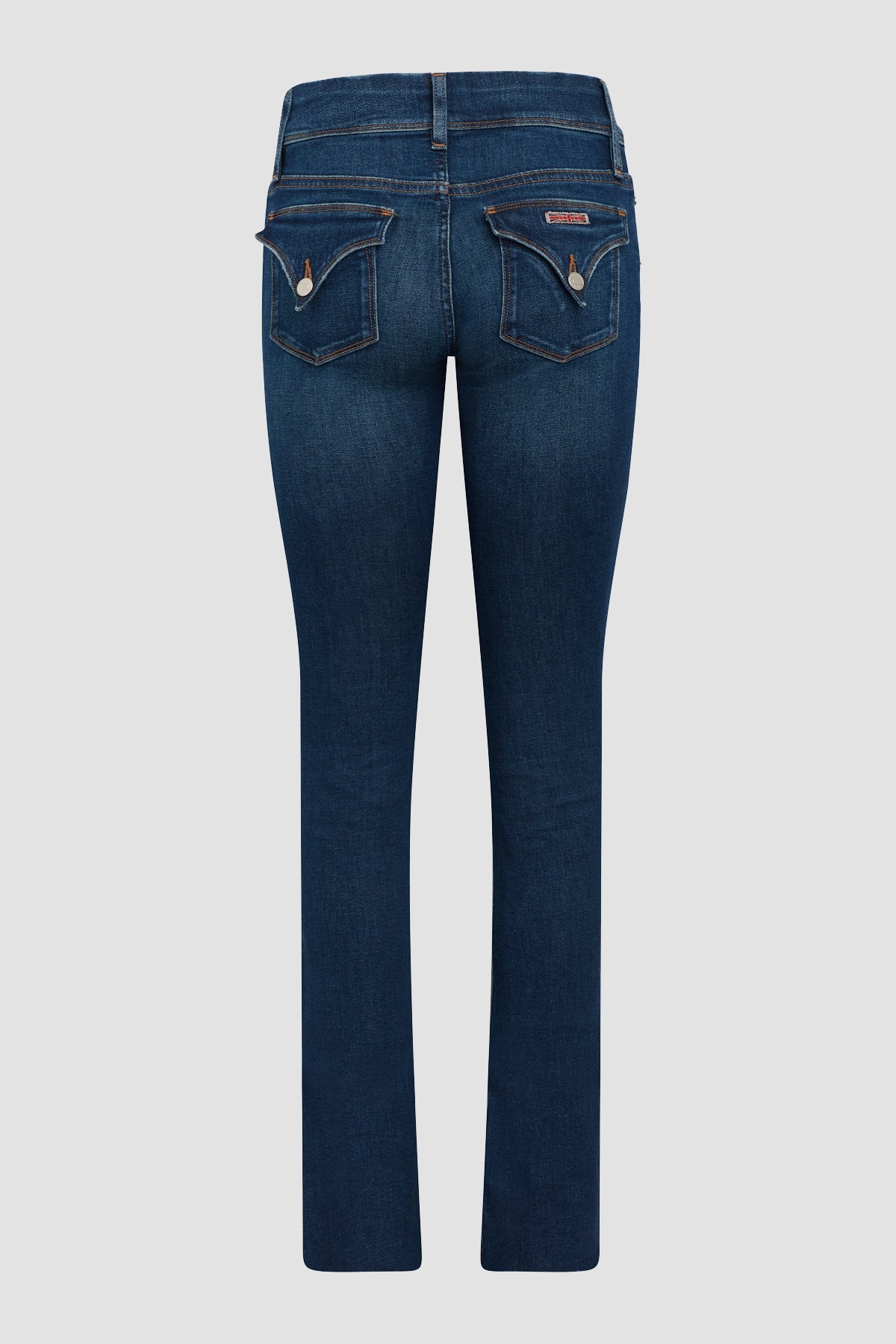 Cut with premium stretch denim, our Beth Mid-Rise Baby Bootcut Jean in Majesty features a subtly flared silhouette, a raw hem and our signature button-flap back pockets. -