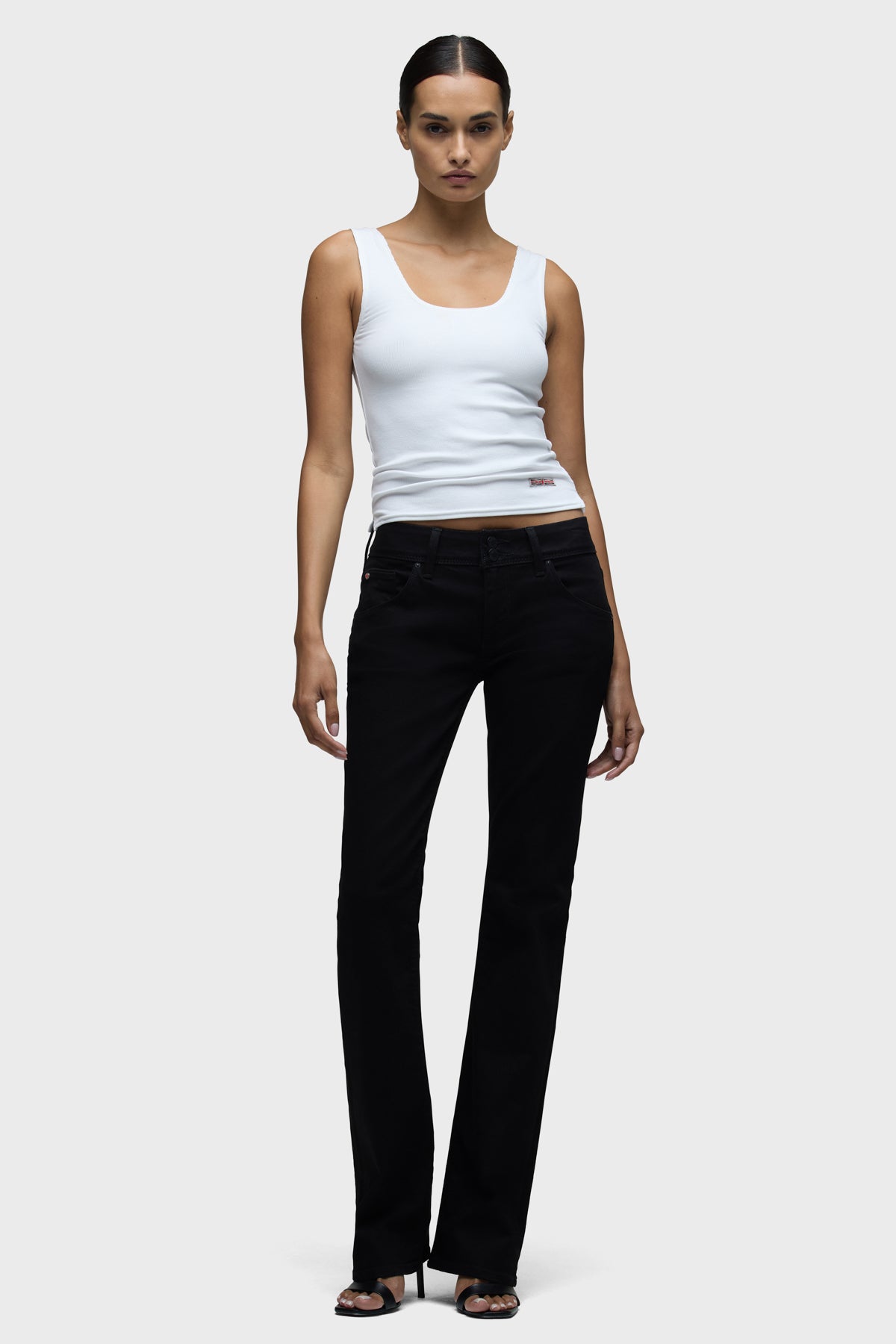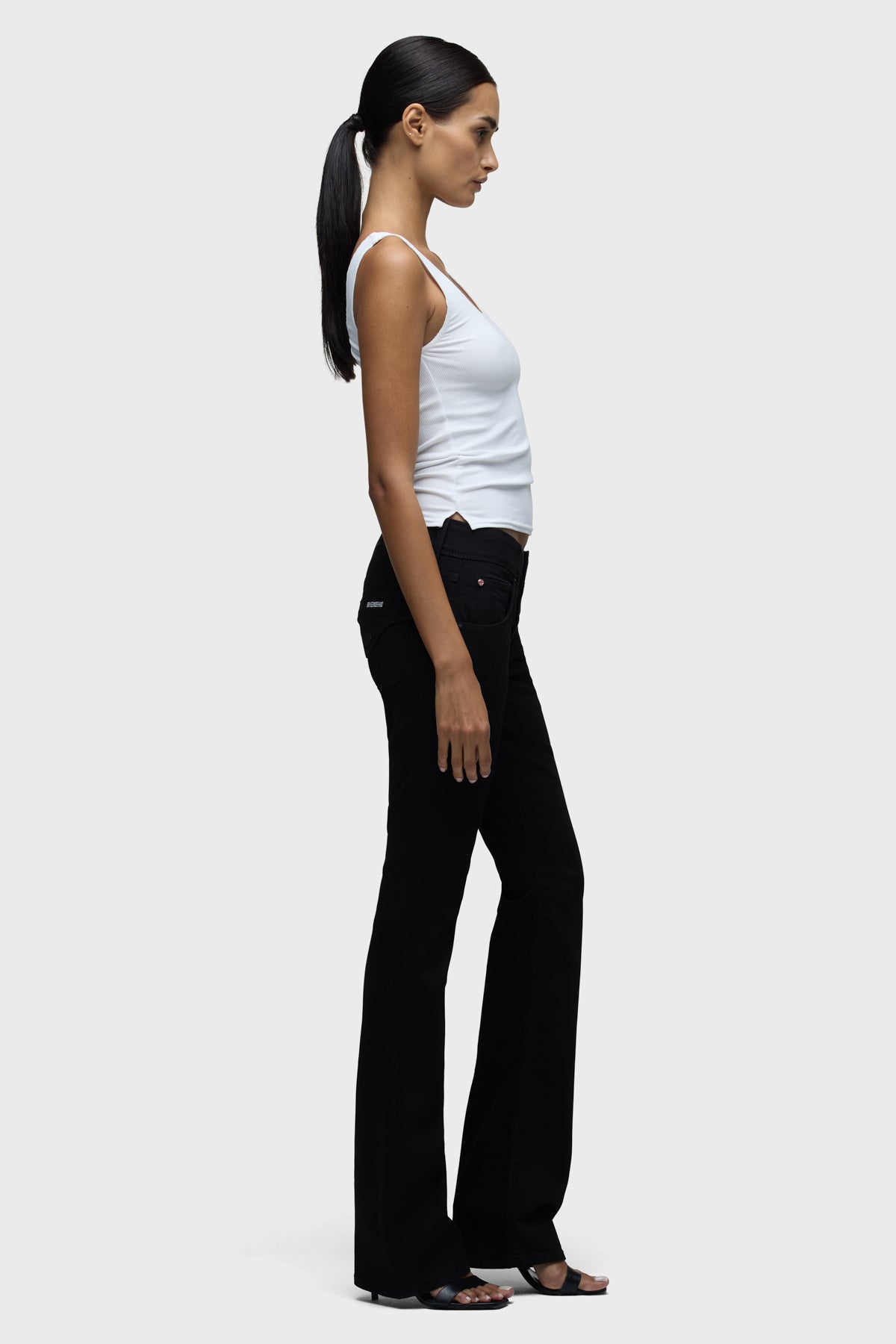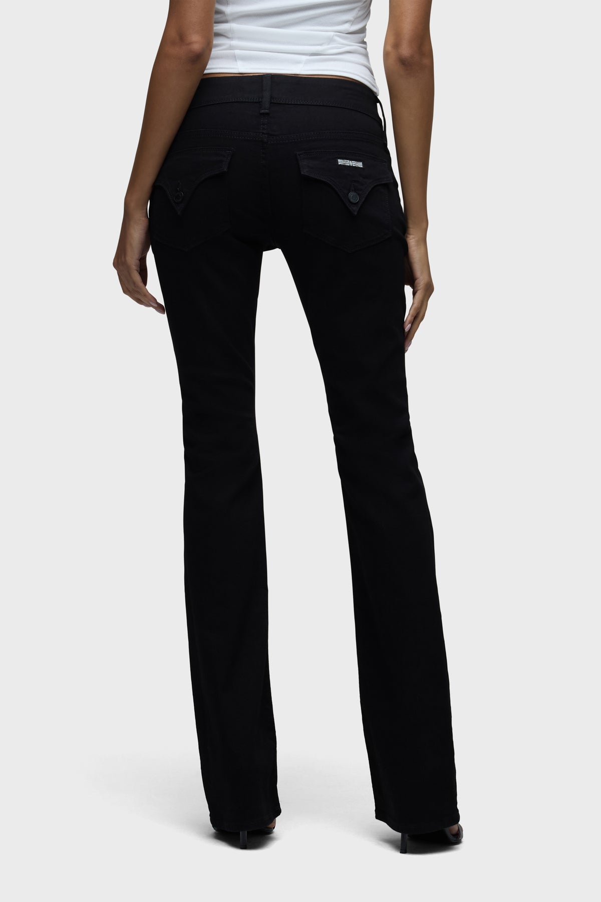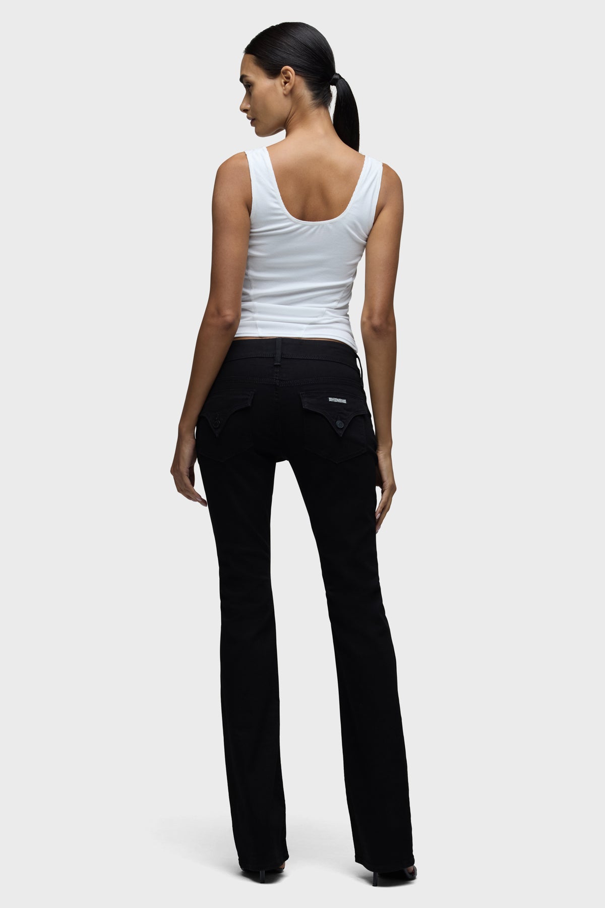 Cut with premium power stretch denim that smooths, sculpts, and will never sag, our Beth Mid-Rise Baby Bootcut Petite Jean in Black features a subtly flared silhouette and our signature button-flap back pockets. -