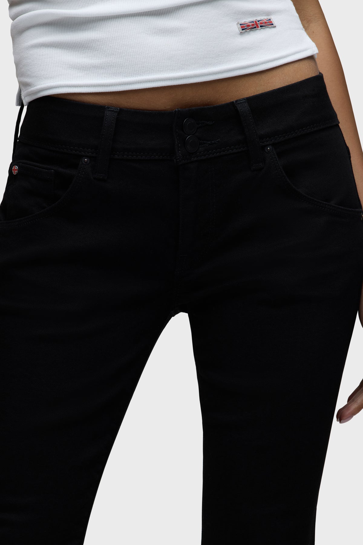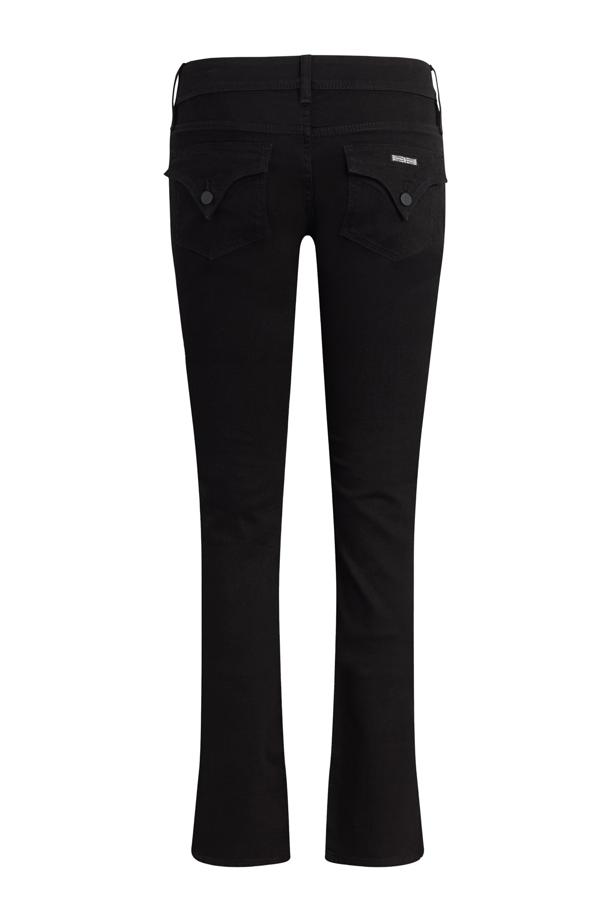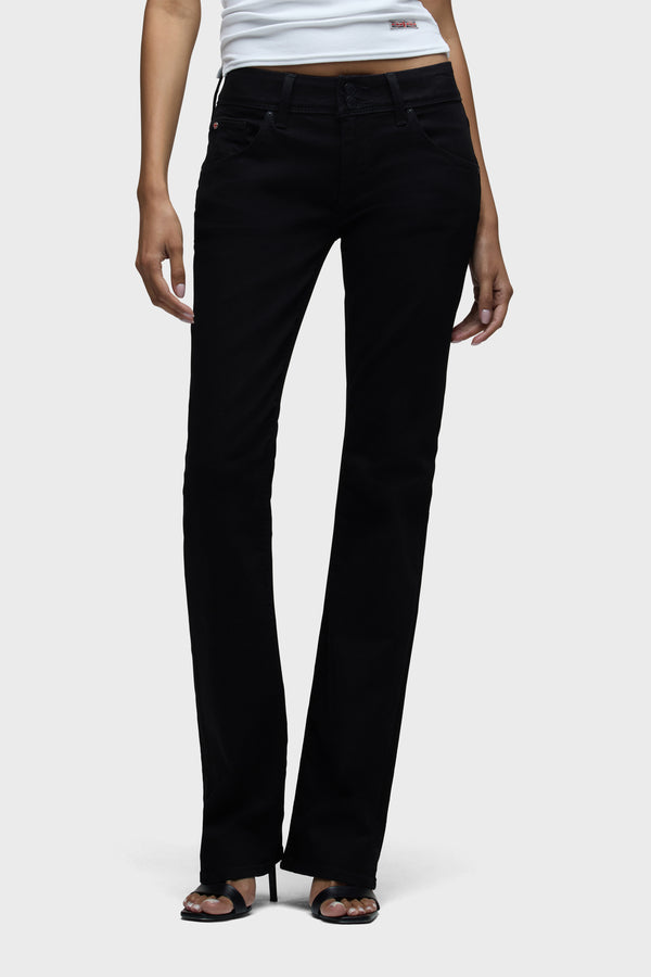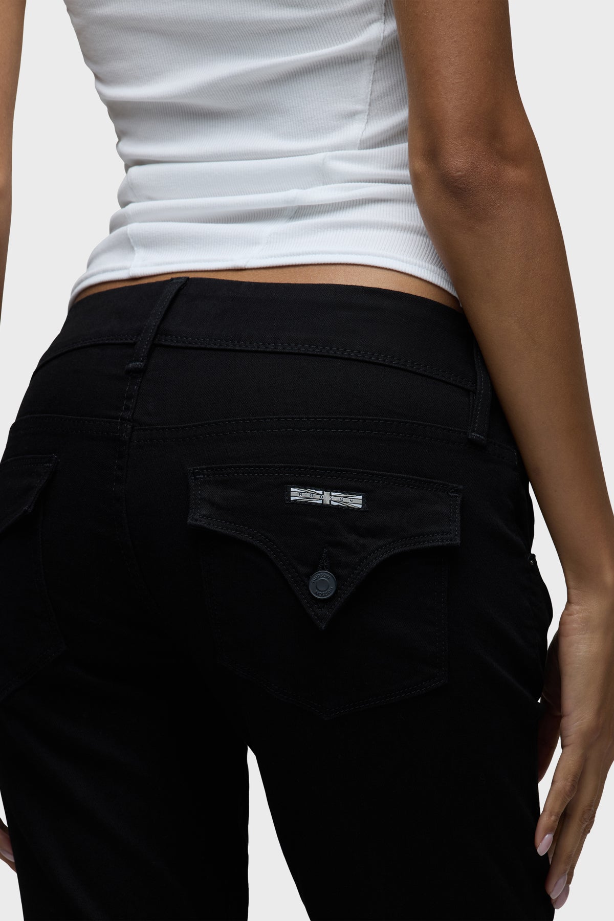 Cut with premium power stretch denim that smooths, sculpts, and will never sag, our Beth Mid-Rise Baby Bootcut Petite Jean in Black features a subtly flared silhouette and our signature button-flap back pockets. -