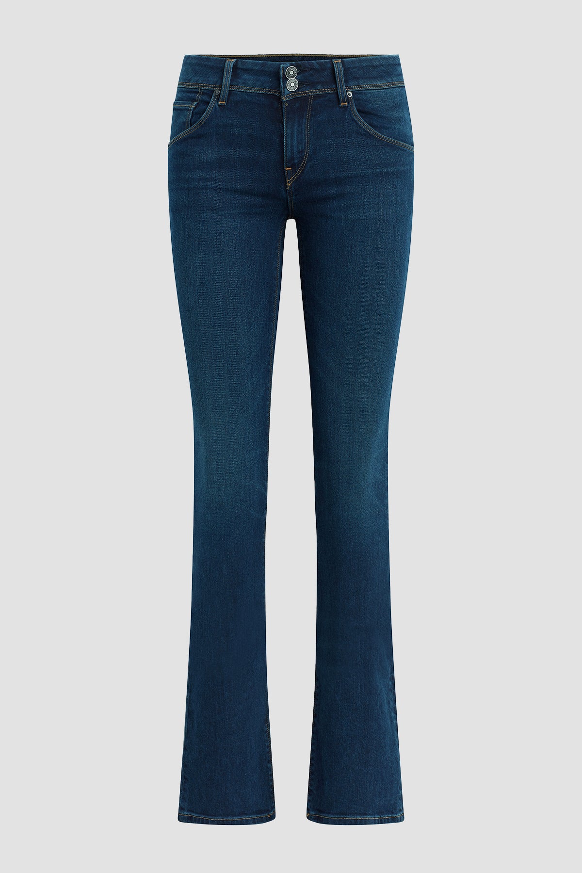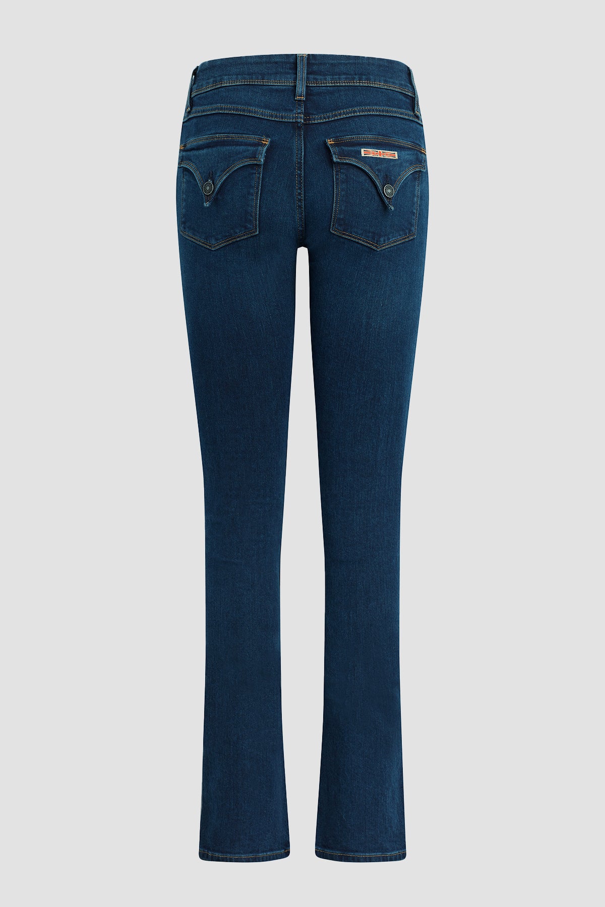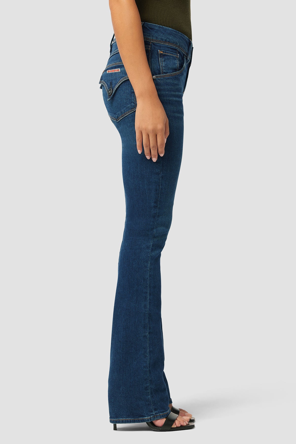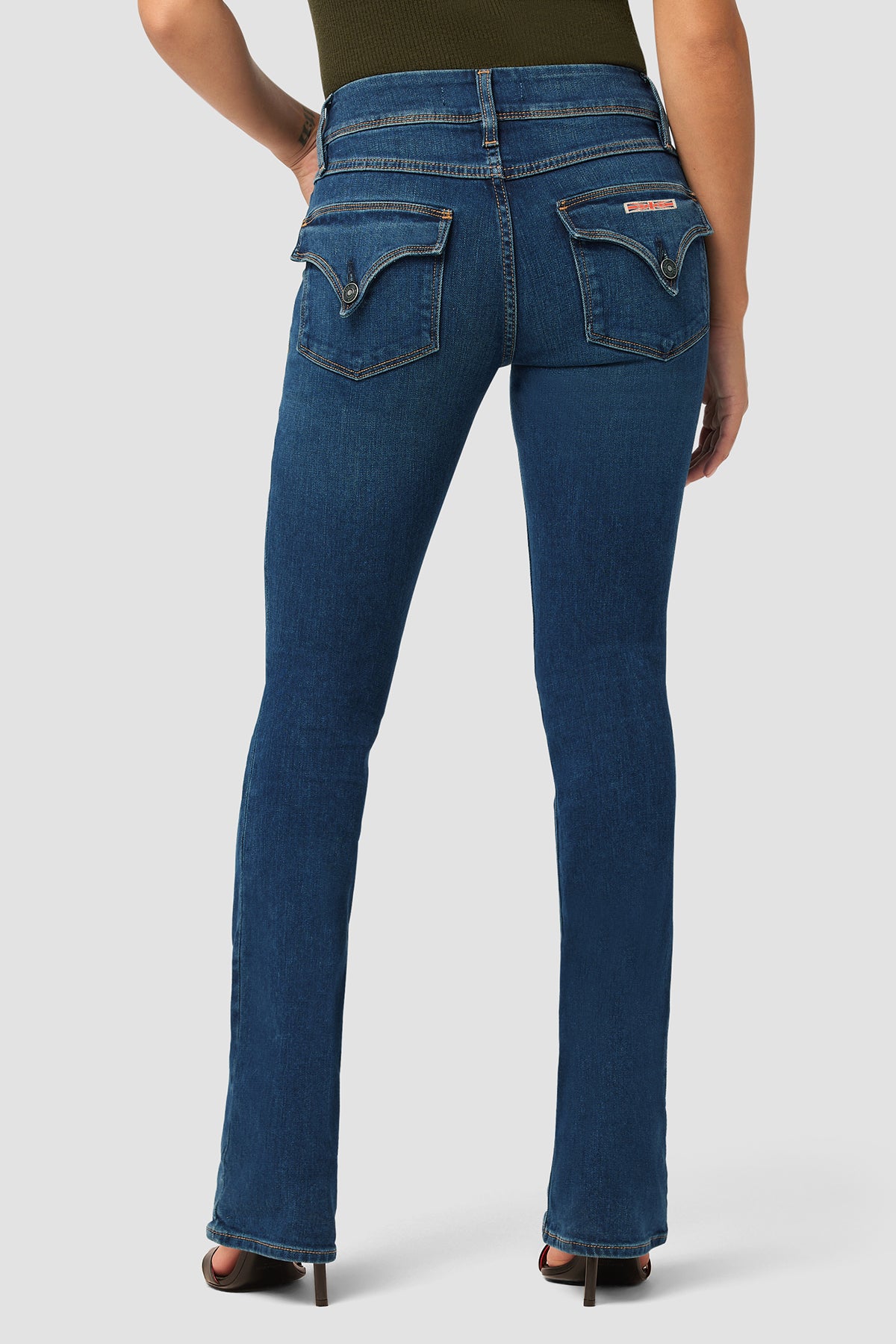 Cut with premium power stretch denim that smooths, sculpts, and will never sag, our Beth Mid-Rise Baby Bootcut Petite Jean in medium-dark indigo Obscurity features a subtly flared silhouette and our signature button-flap back pockets. -