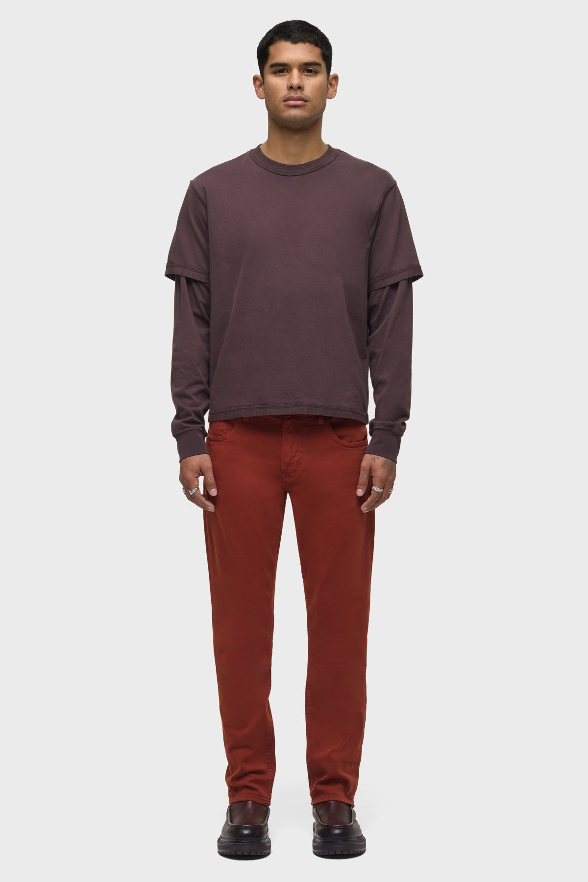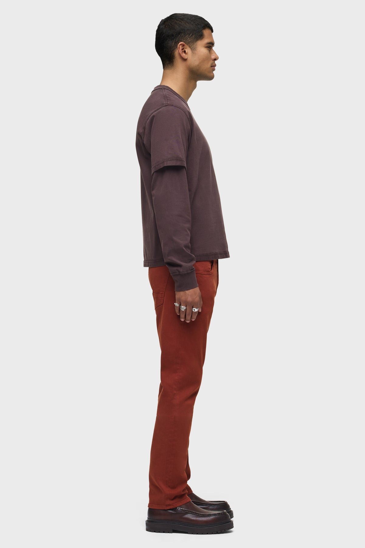 Can’t beat Blake, our modern, just-right fit. Mid-rise, slim through the hip and thigh with a tapered leg. A classic. This pair features Brick, a red shade, and is made of comfort stretch denim with classic five-pocket detailing. -