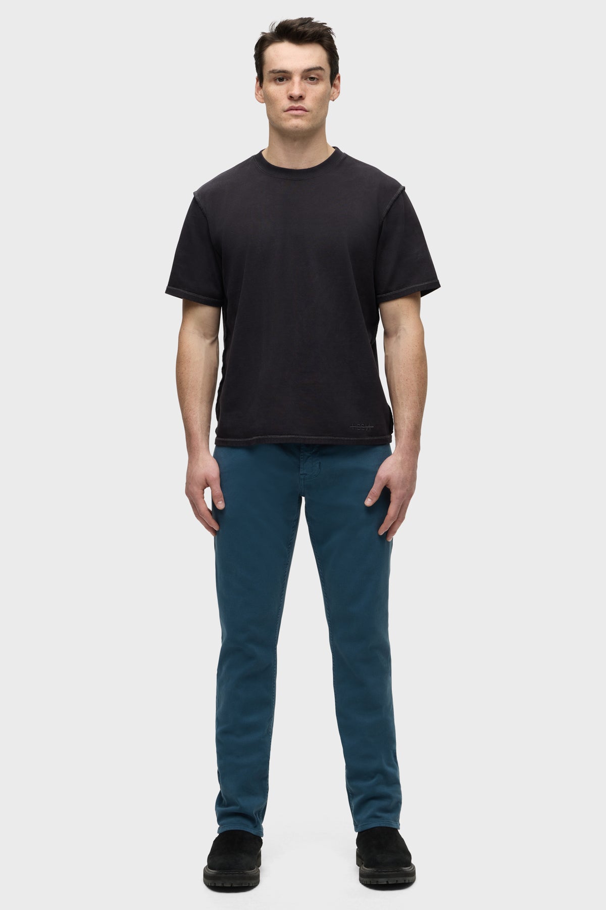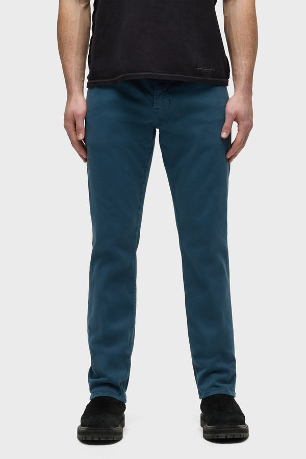 Can’t beat Blake, our modern, just-right fit. Mid-rise, slim through the hip and thigh with a tapered leg. A classic. The over-dyed light blue Deep Dive wash is finished with contrast stitching, grey hardware and black leather back patch. -