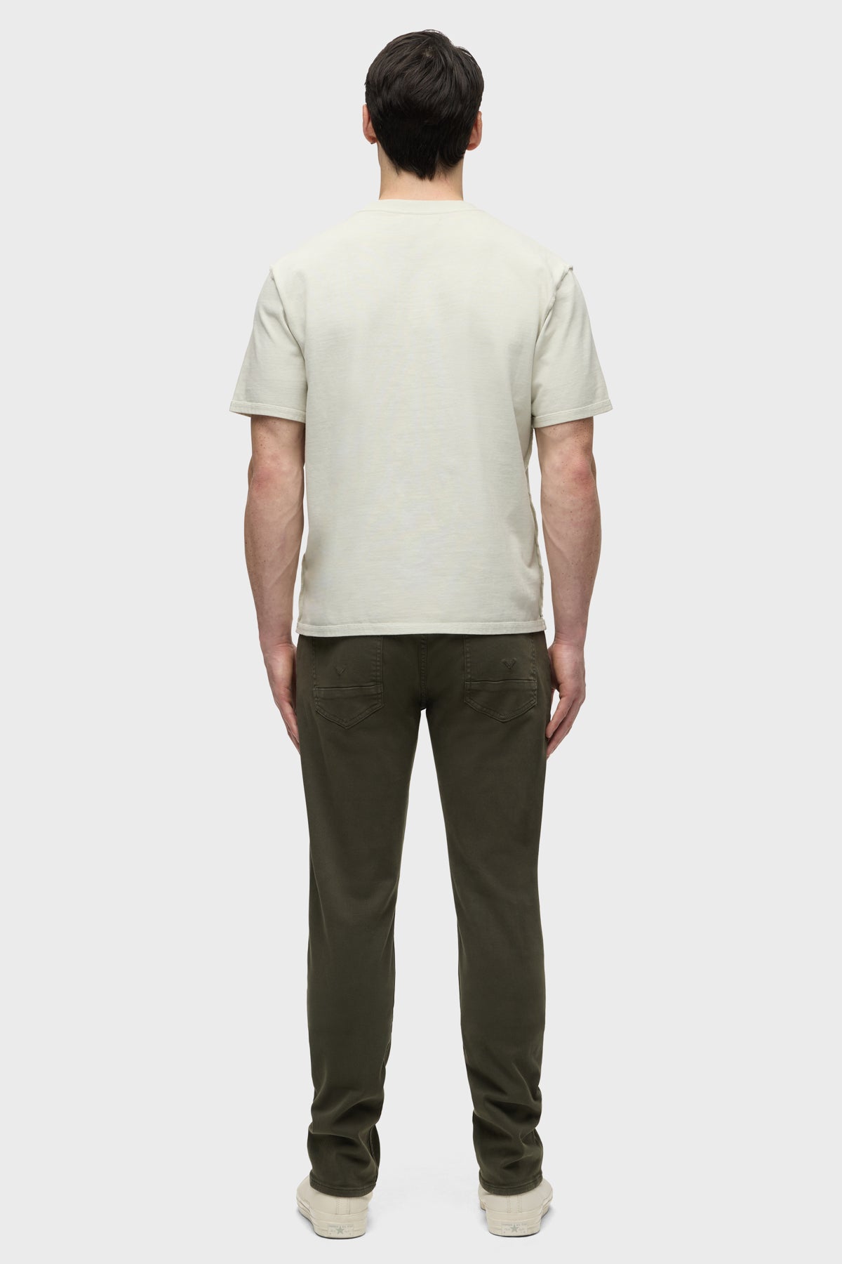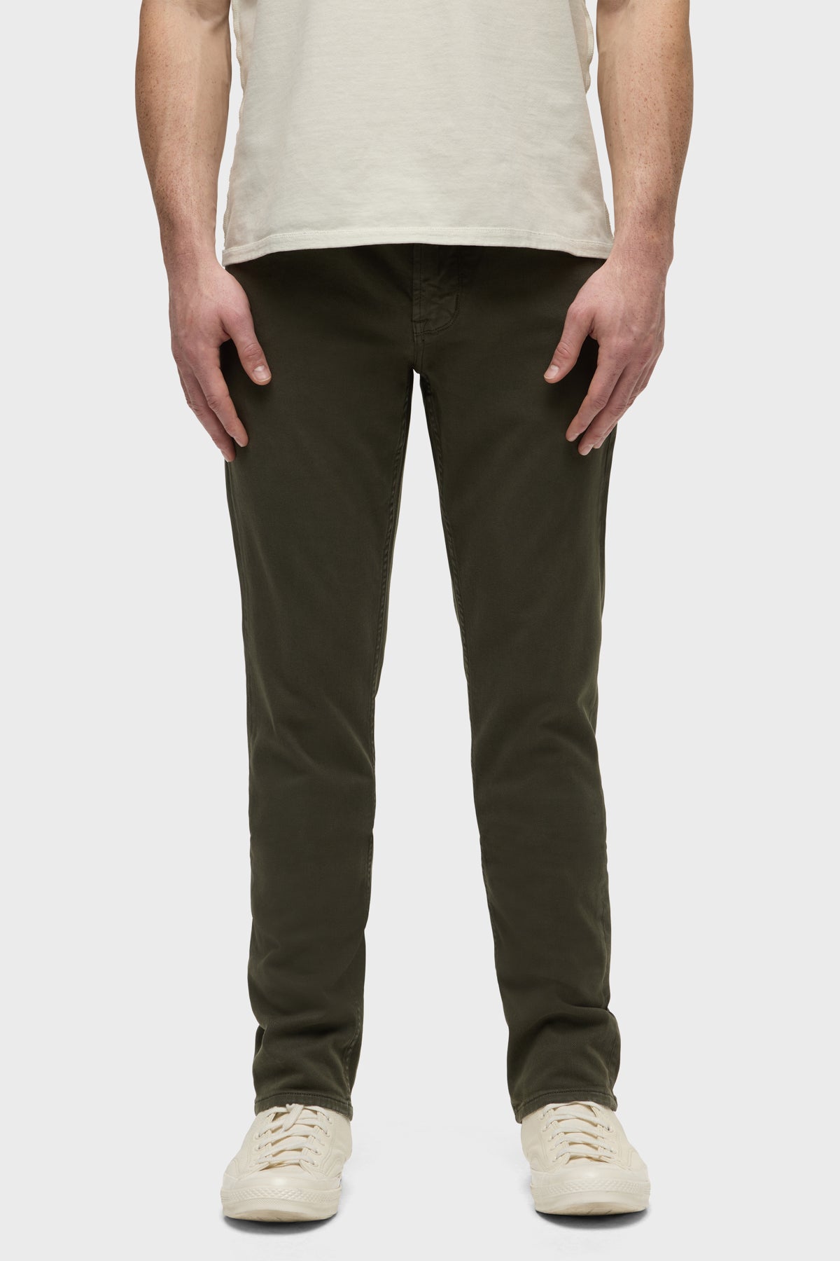Can’t beat Blake, our modern, just-right fit. Mid-rise, slim through the hip and thigh with a tapered leg. A classic. The over-dyed Dark Forest wash is finished with grey hardware and black leather back patch. -