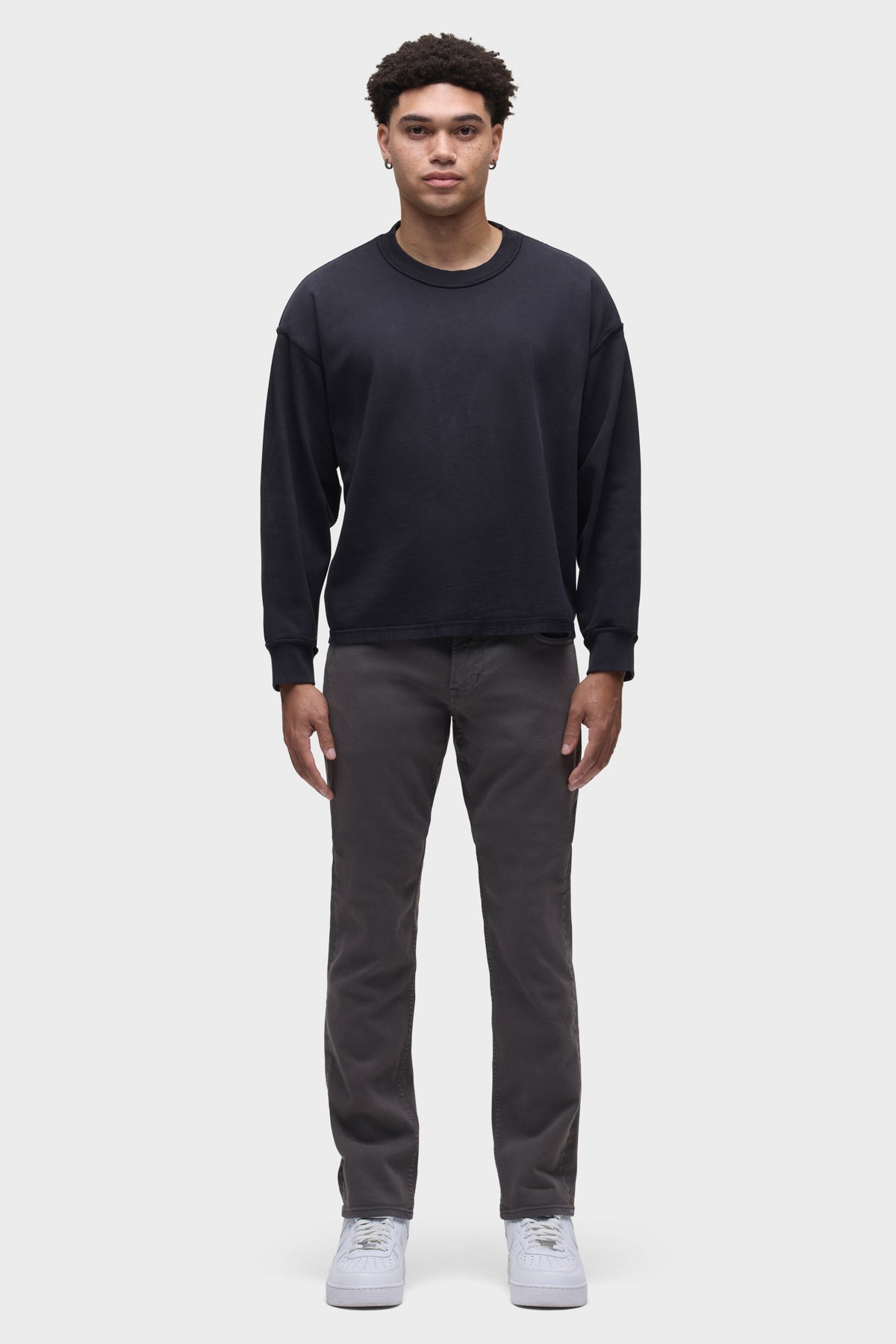 Can’t beat Blake, our modern, just-right fit. Mid-rise, slim through the hip and thigh with a tapered leg. A classic. The overdyed Grey wash is finished with grey hardware and a black leather back patch. This pair is made of premium comfort stretch denim with classic five-pocket detailing. -