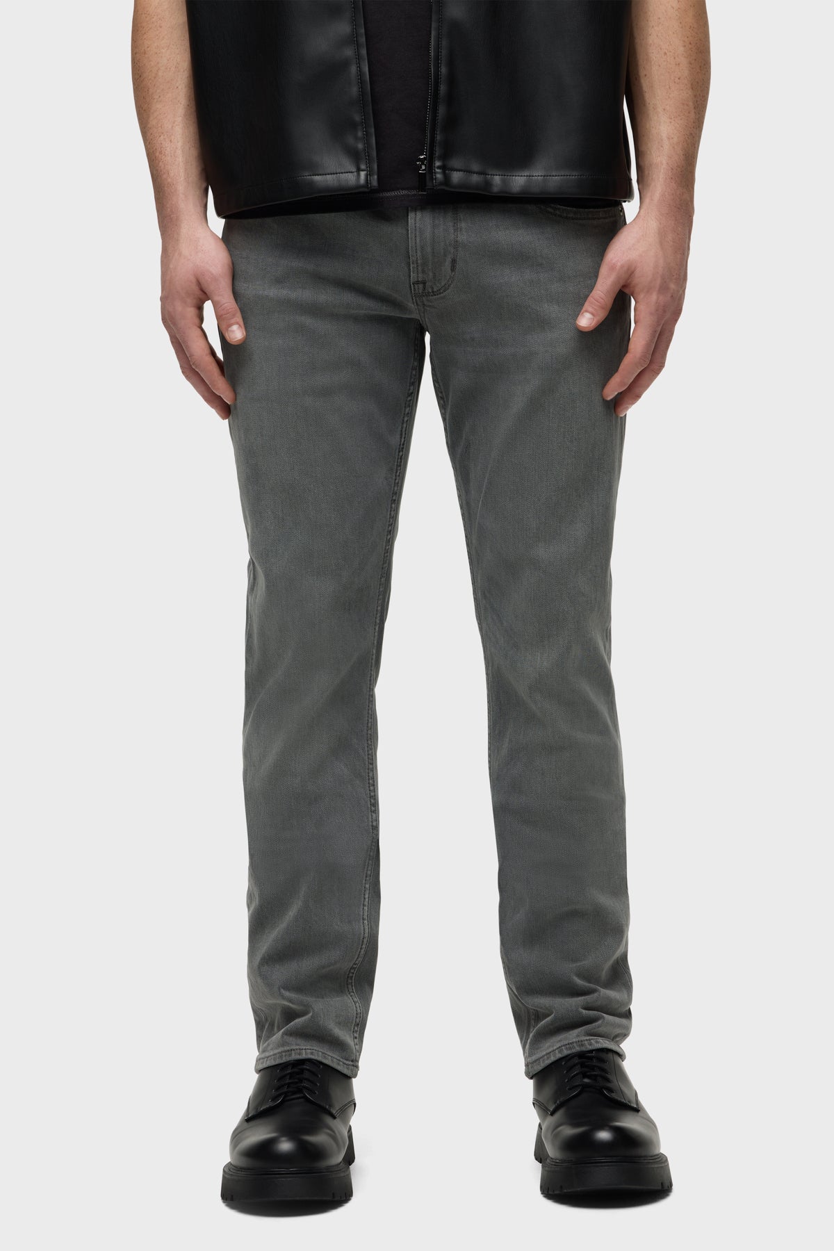 Can’t beat Blake, our modern, just-right fit. Mid-rise, slim through the hip and thigh with a tapered leg. A classic. The medium grey Moon Ridge wash is finished with grinding along the edges, grey hardware and grey leather back patch for an easy, clean look. -