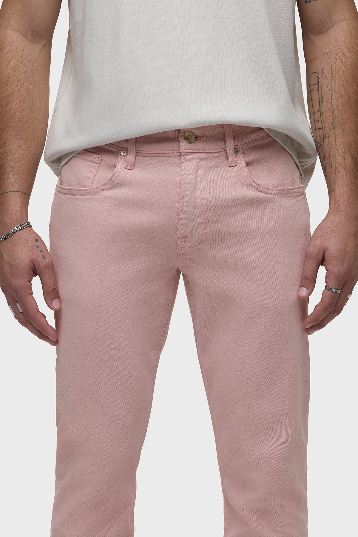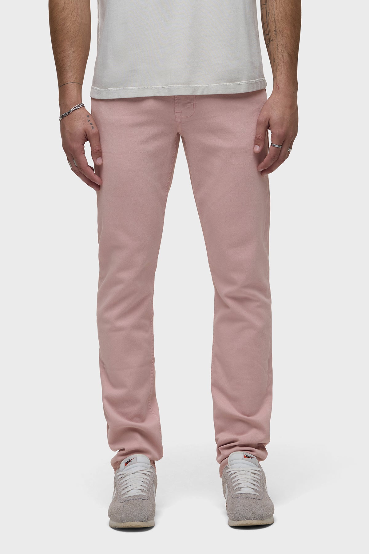 Can’t beat the Blake Slim Straight, our modern, just-right fit. Mid-rise, slim through the hip and thigh with a tapered leg. A classic. This pair features our lightweight twill in Pale Mauve, a soft neutral shade. It is made with classic five-pocket detailing.