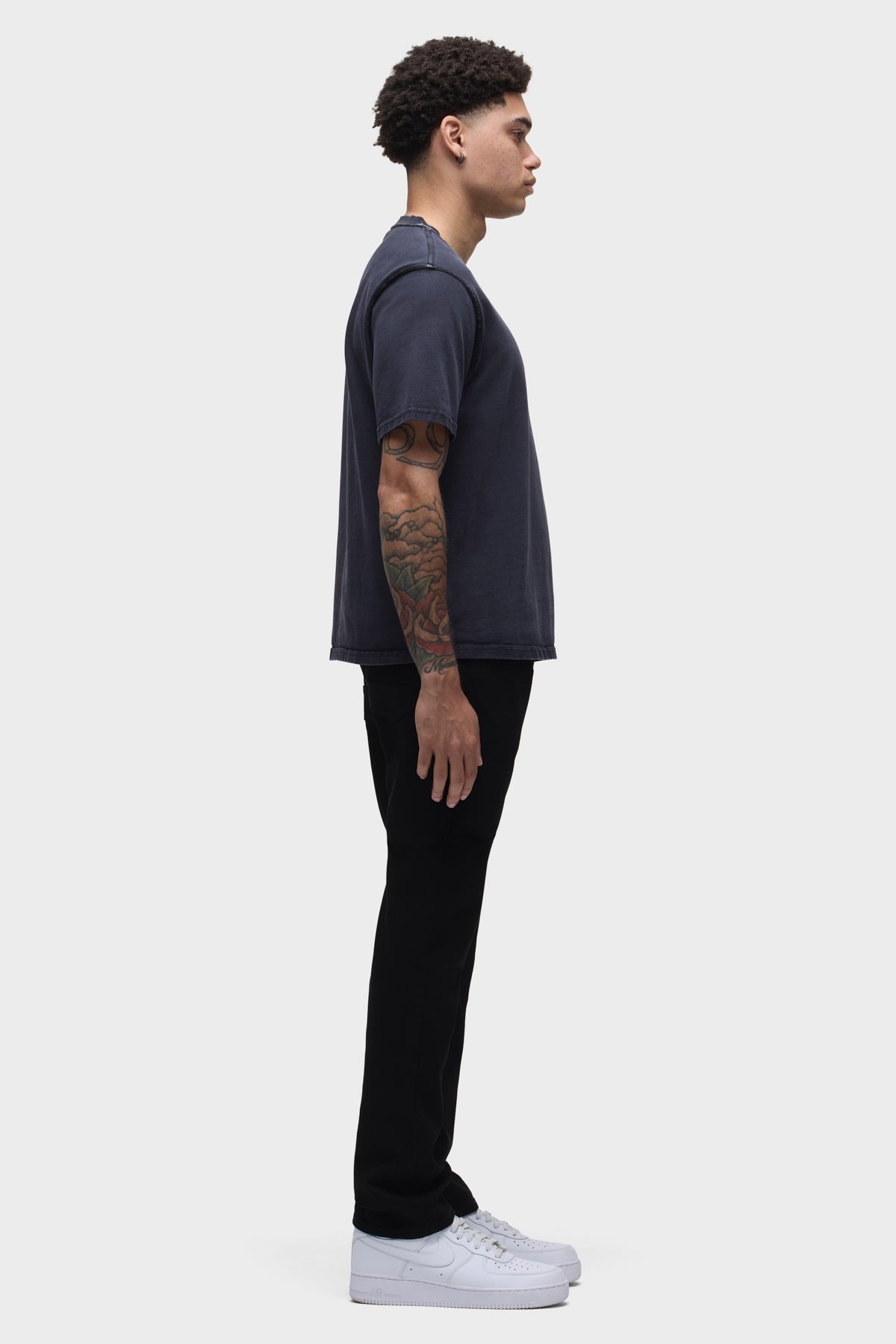Can’t beat Blake, our modern, just-right fit. Mid-rise, slim through the hip and thigh with a tapered leg. A classic. Raven is a black rinse designed in a black premium comfort stretch denim. This pair is made with classic five-pocket detailing. -