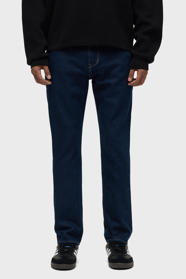 Can’t beat Blake, our modern, just-right fit. Mid-rise, slim through the hip and thigh with a tapered leg. A classic. The dark rinse Shadow wash is finished with contrast stitching, dull nickel hardware and black leather back patch for a clean, easy look. -