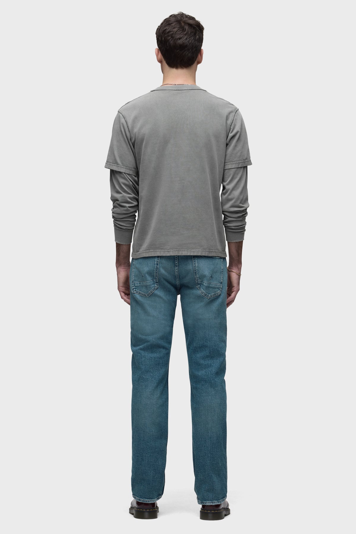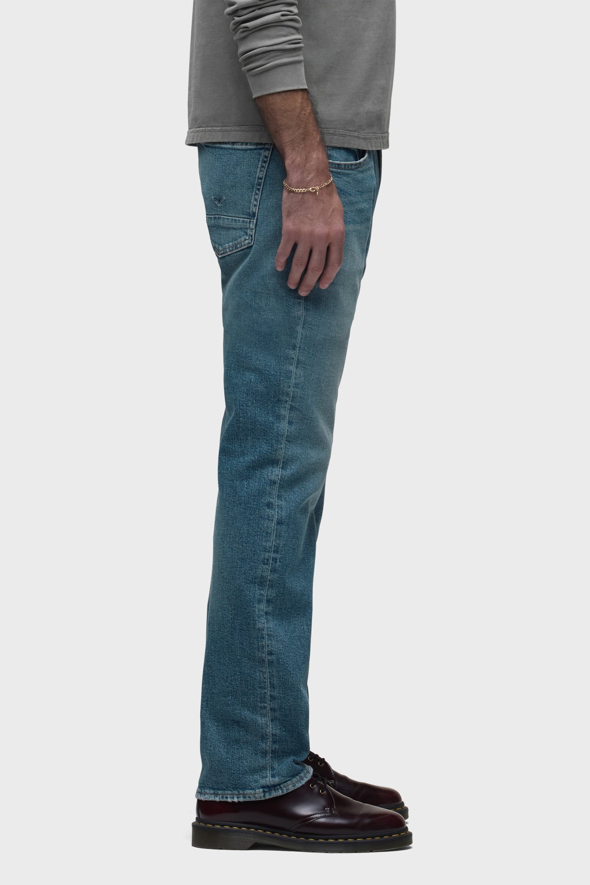 Can’t beat the Blake, our modern, just-right fit. Mid-rise, slim through the hip and thigh with a tapered leg. A classic. This pair features our Sullivan denim wash, a medium indigo shade. It is made of rigid denim with classic five-pocket detailing. -