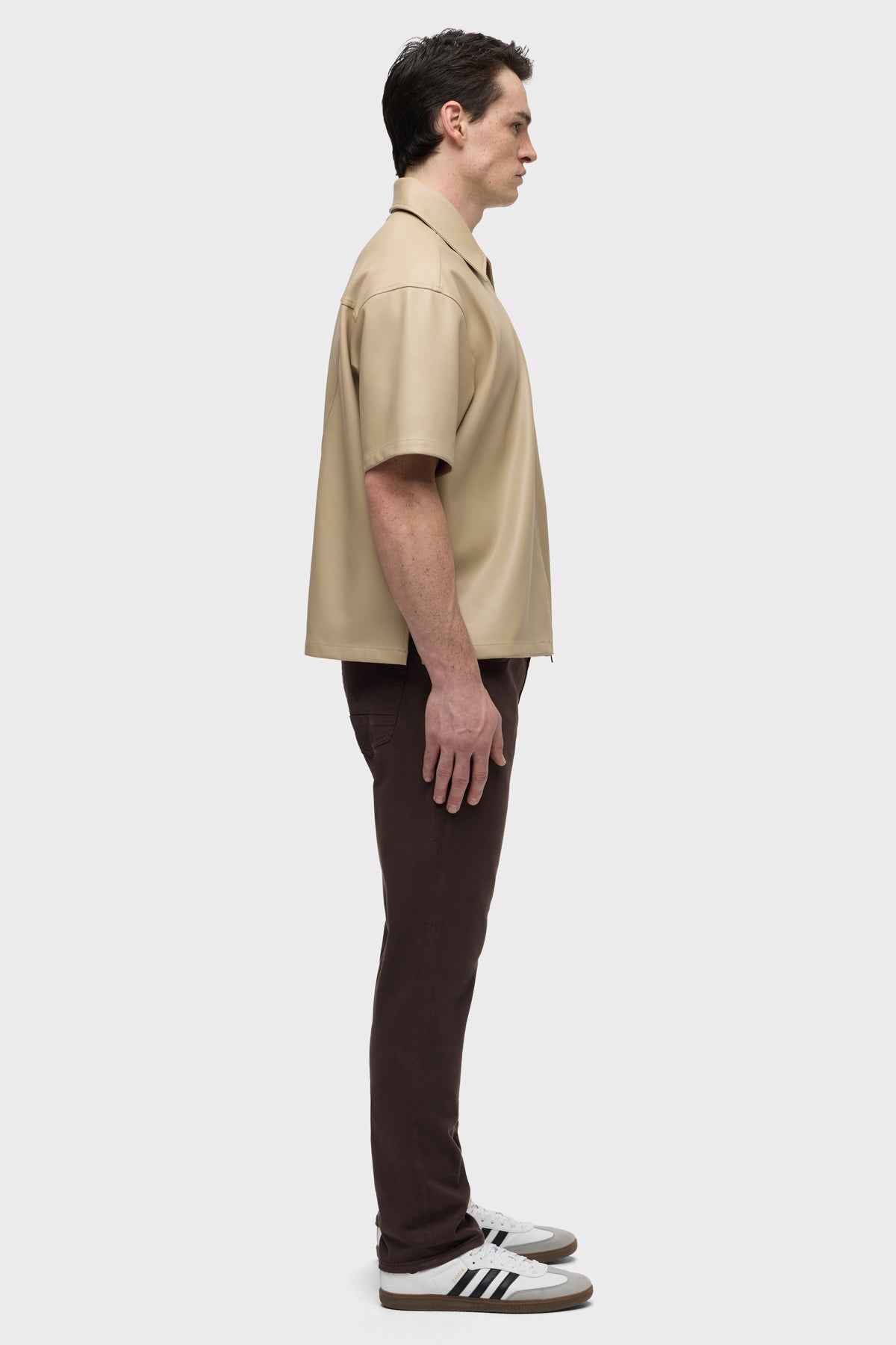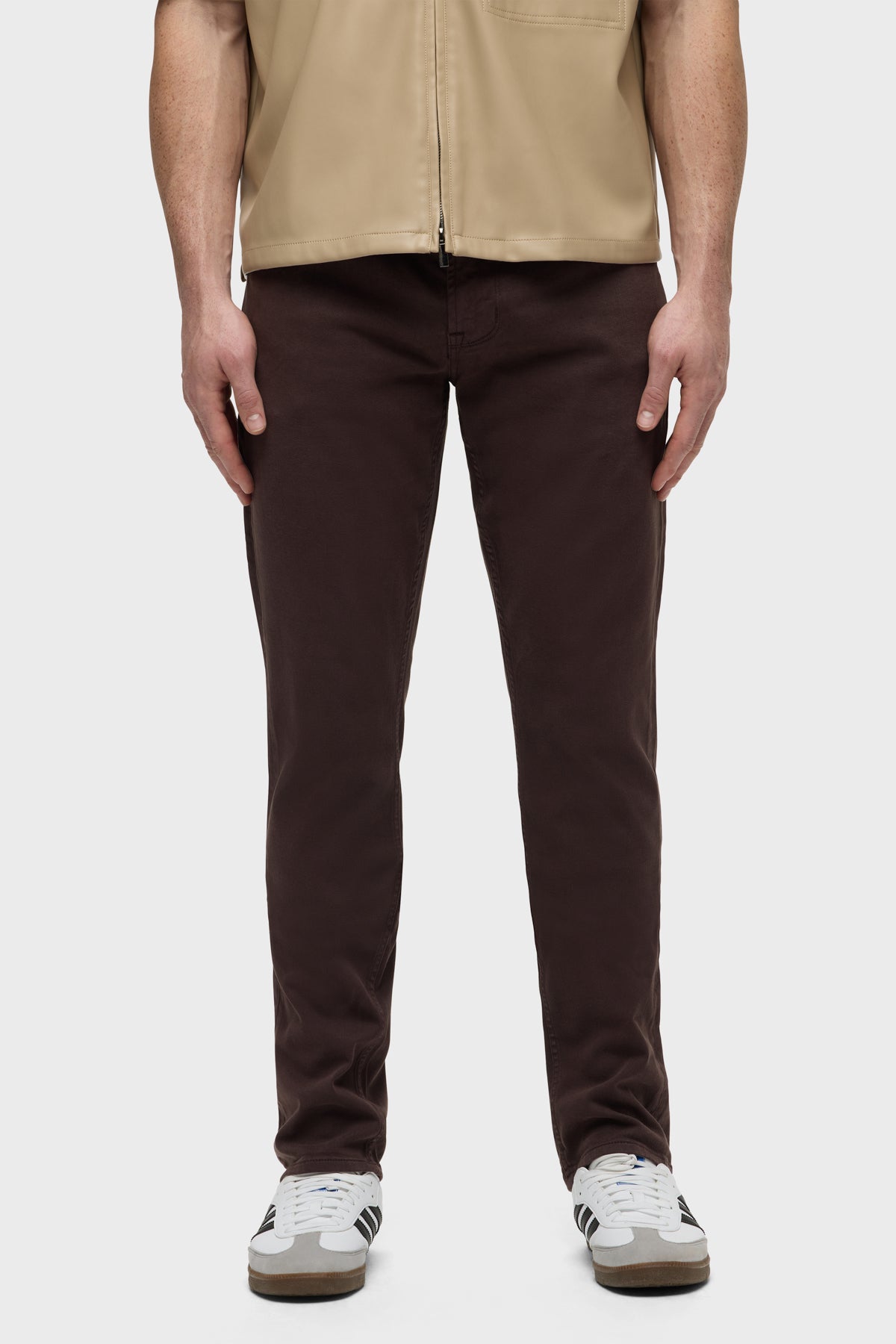 Can’t beat Blake, our modern, just-right fit. Mid-rise, slim through the hip and thigh with a tapered leg. A classic. The overdyed brown Timber wash is finished with matte black hardware and black leather back patch. -