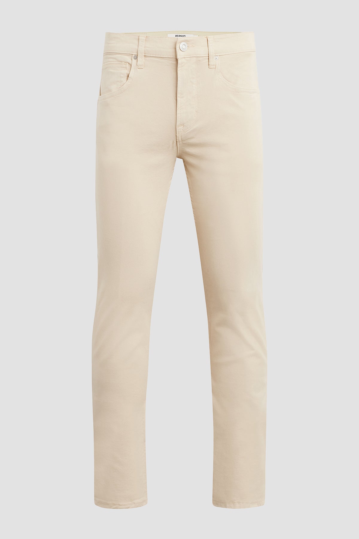 Can’t beat Blake, our modern, just-right fit. Mid-rise, slim through the hip and thigh with a tapered leg. The five-pocket essential in Light Beige, is made from a premium cotton twill with a hint of stretch for added softness, comfort, and flexibility. -