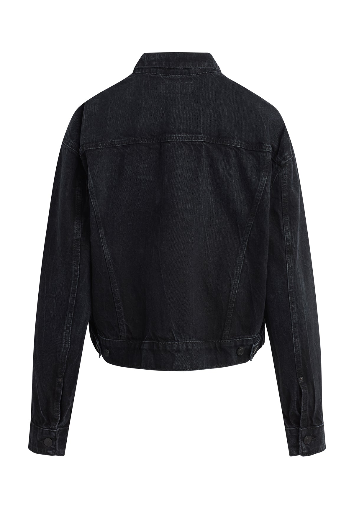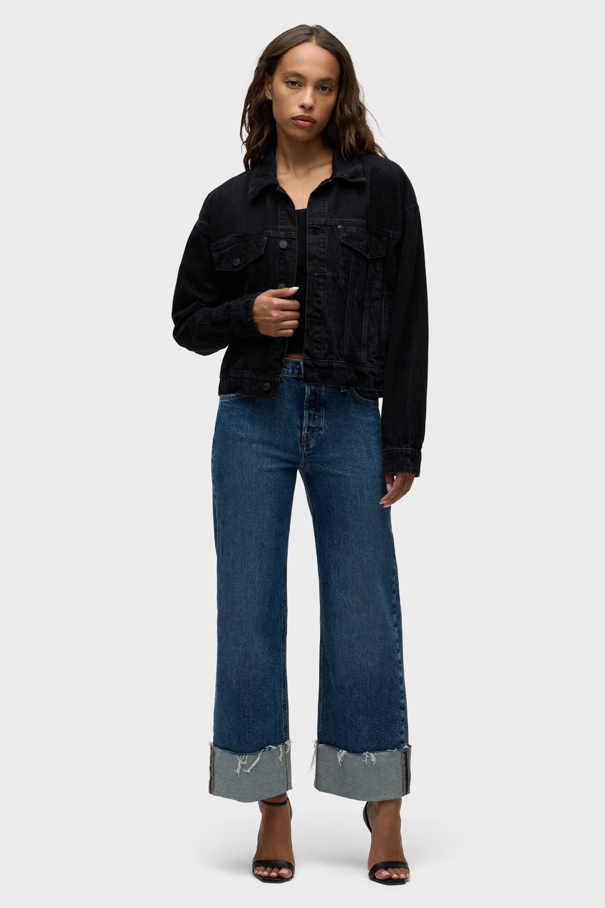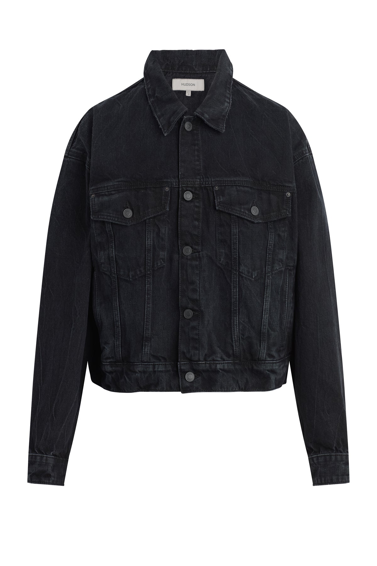 Our Brea Swing Trucker Jacket is cut for an easy fit with front welt pockets. Made from premium Italian rigid denim in deep Black Thunder wash. -