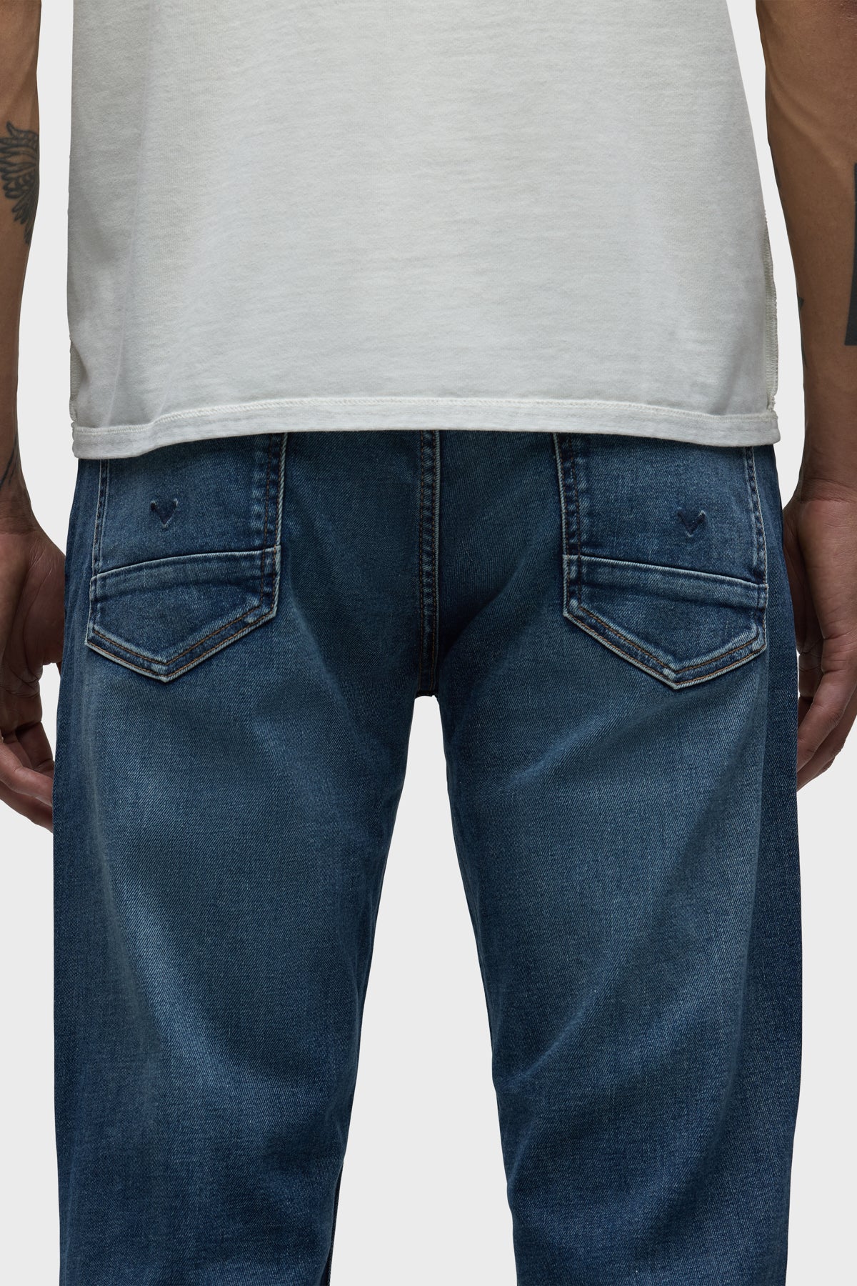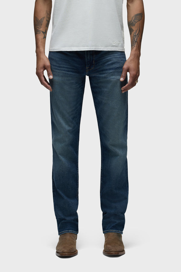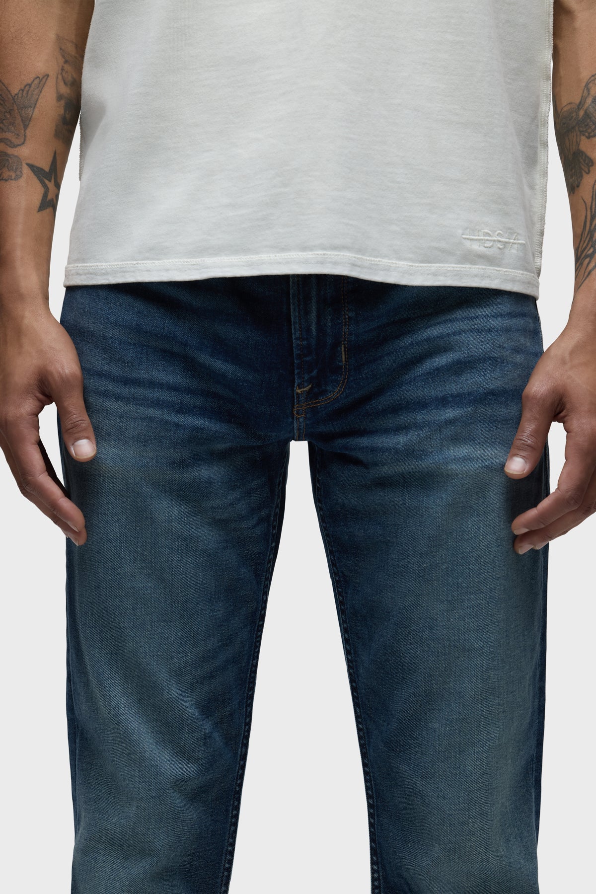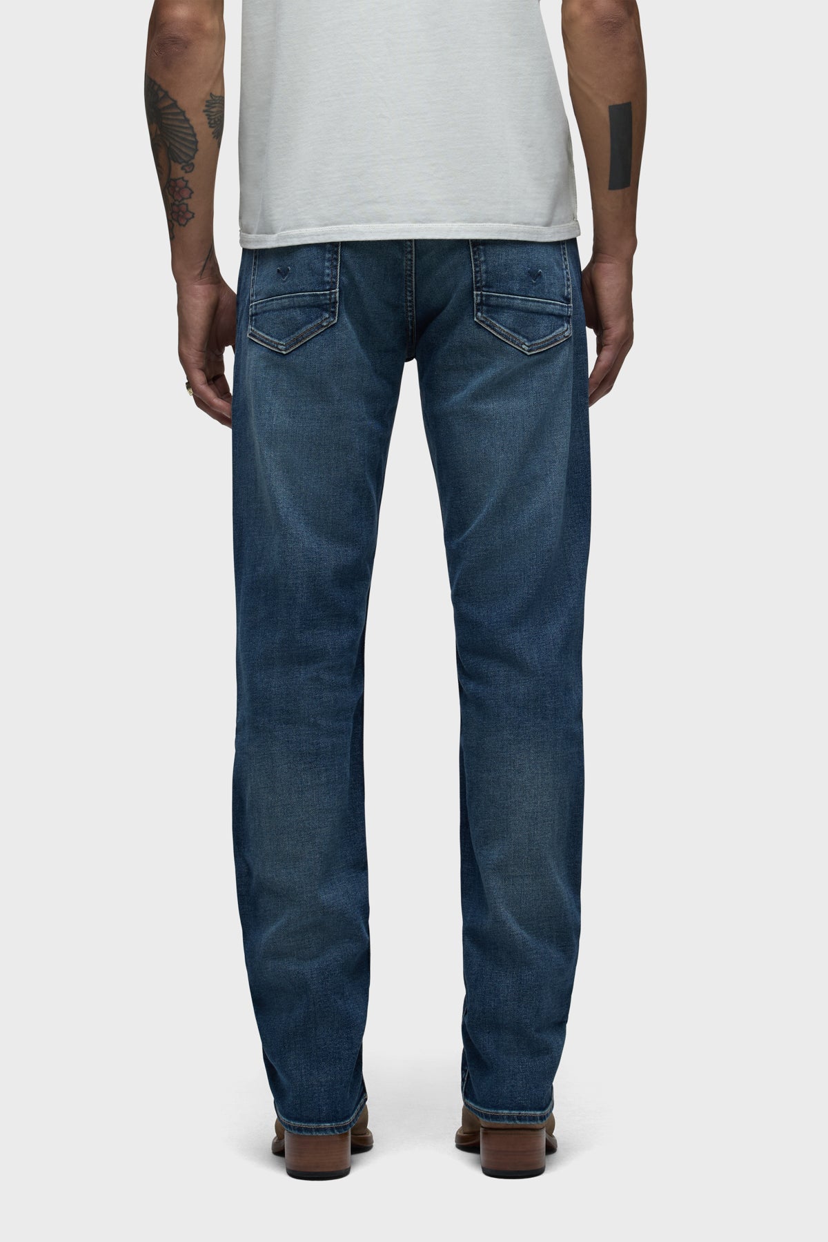 Byron is our most relaxed fit. Mid-rise, straight through the hip and thigh with a slim-straight leg. A classic. The medium Station wash is cut from our premium stretch denim so the jeans keep their shape and finished with a 32" inseam. -