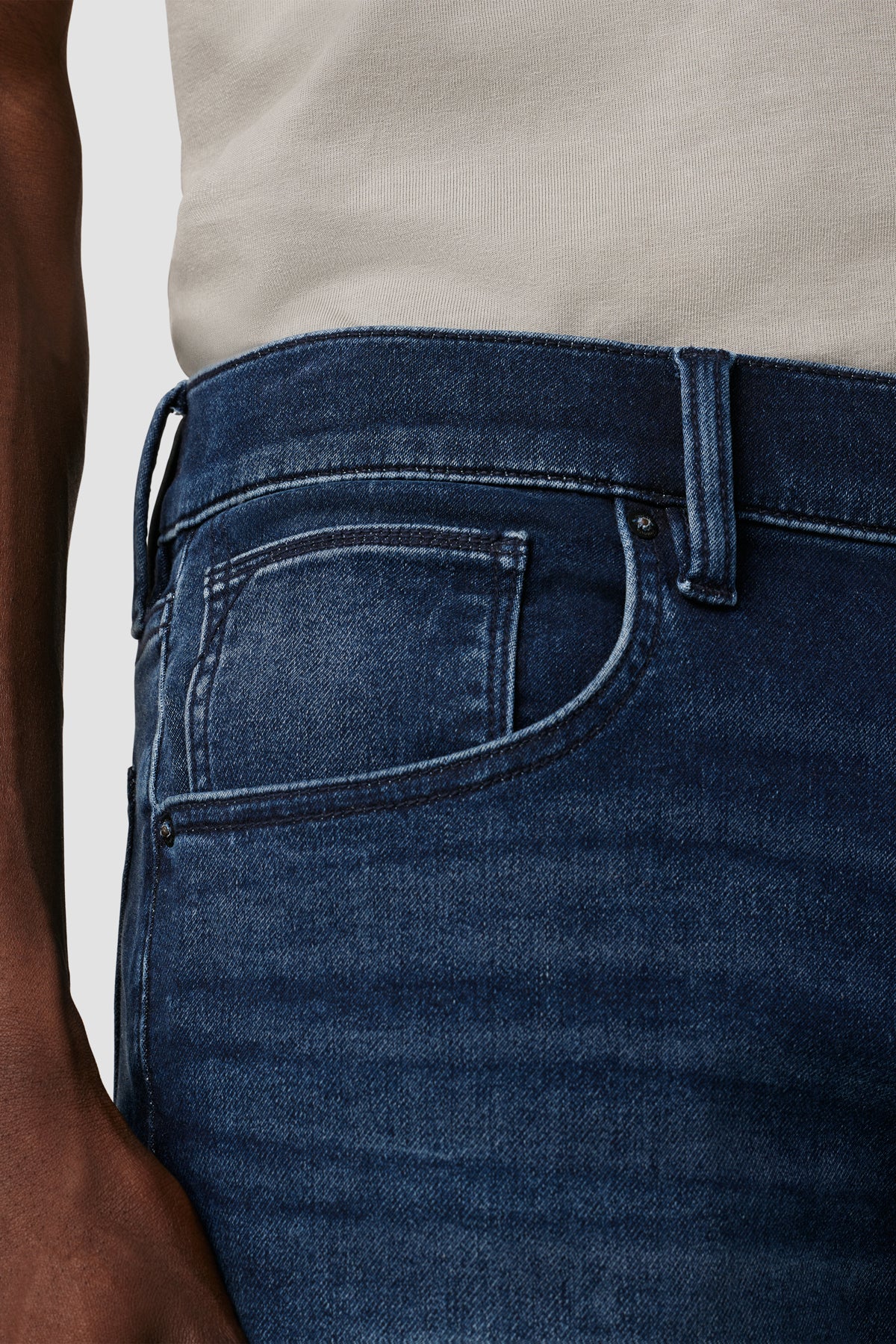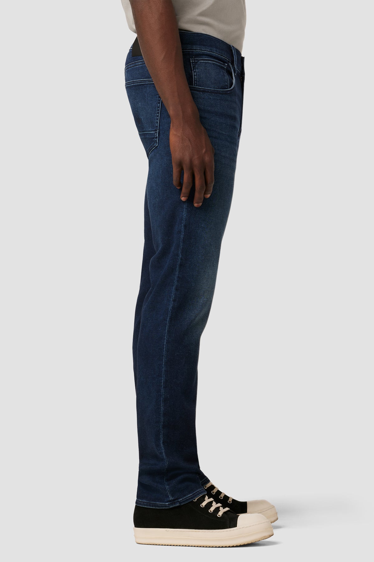 Byron is our most relaxed fit. Mid-rise, straight through the hip and thigh with a slim-straight leg. A classic. The Dark Moon wash is cut from premium stretch denim with ample fading for vintage character. -