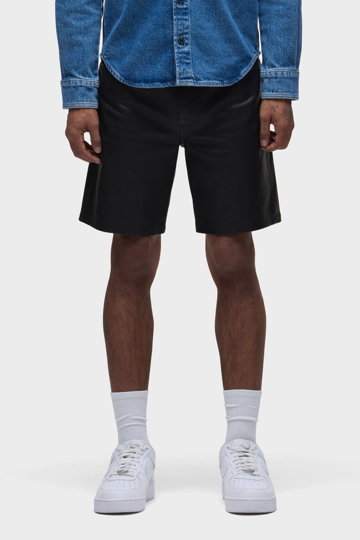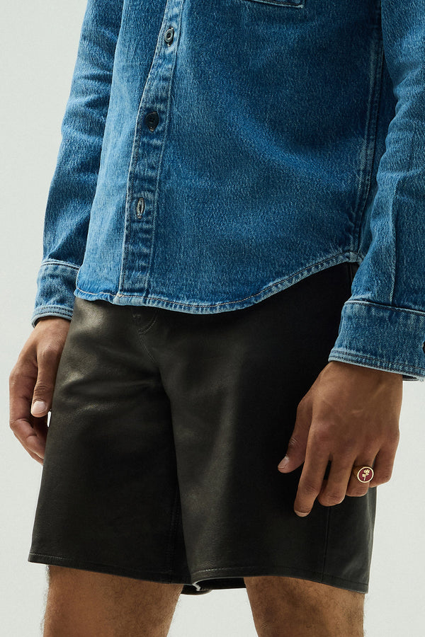 The Clint Relaxed Short in Black is a versatile essential with a laid-back, straight fit. This pair is made of 100% lambskin leather. -