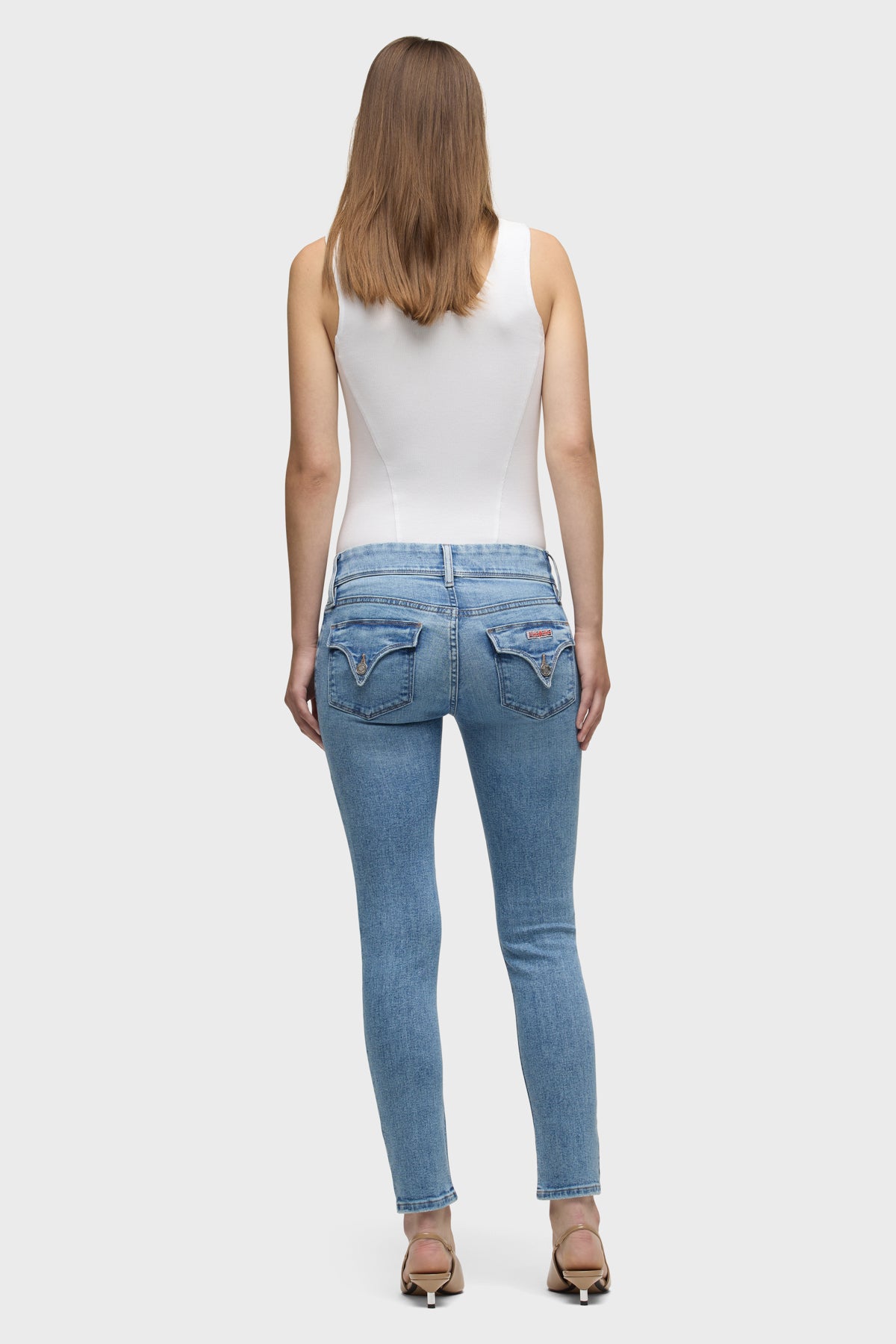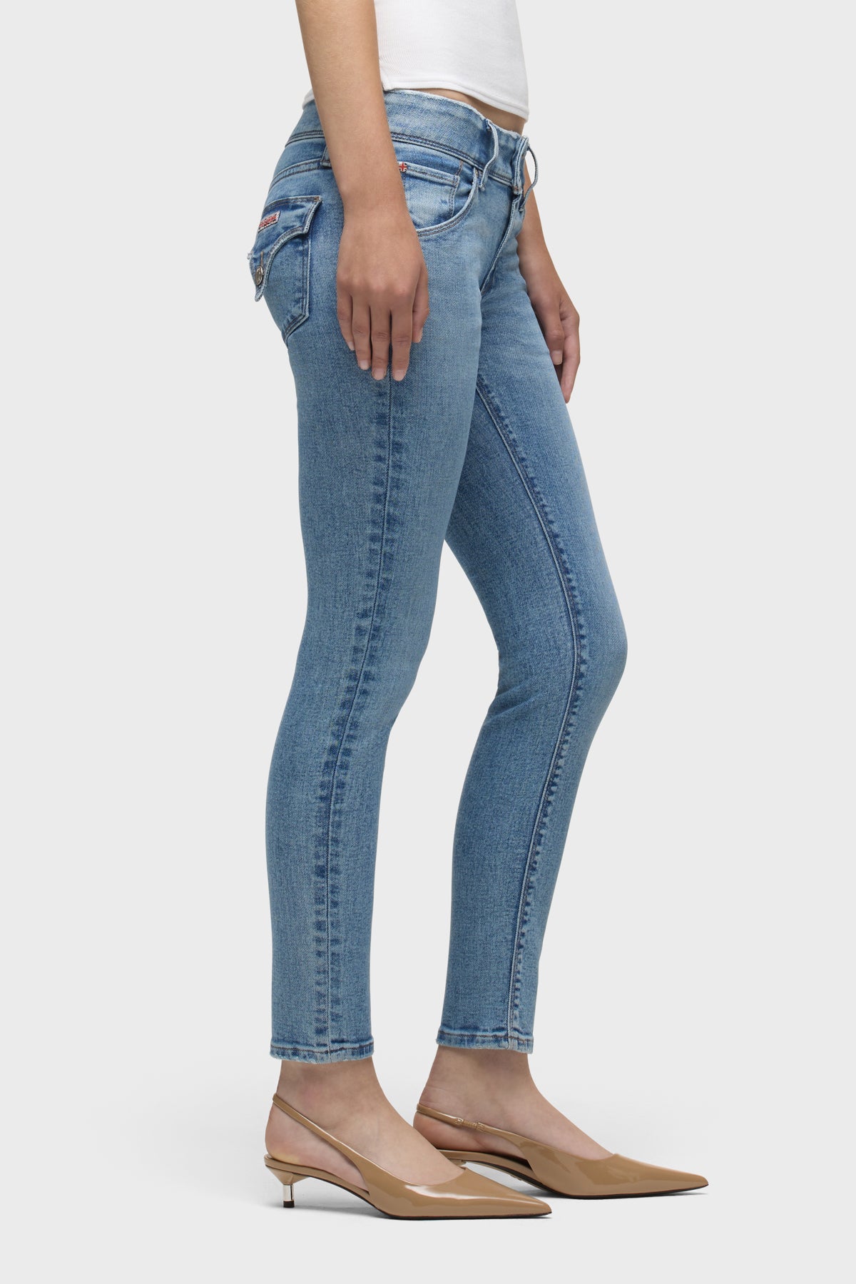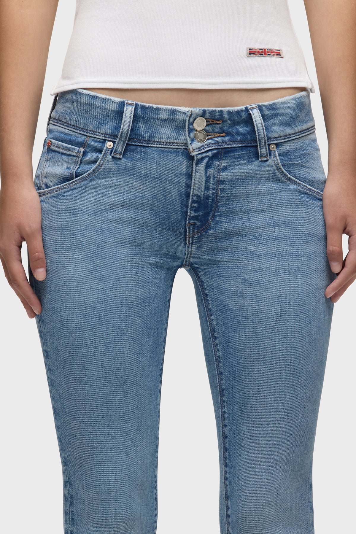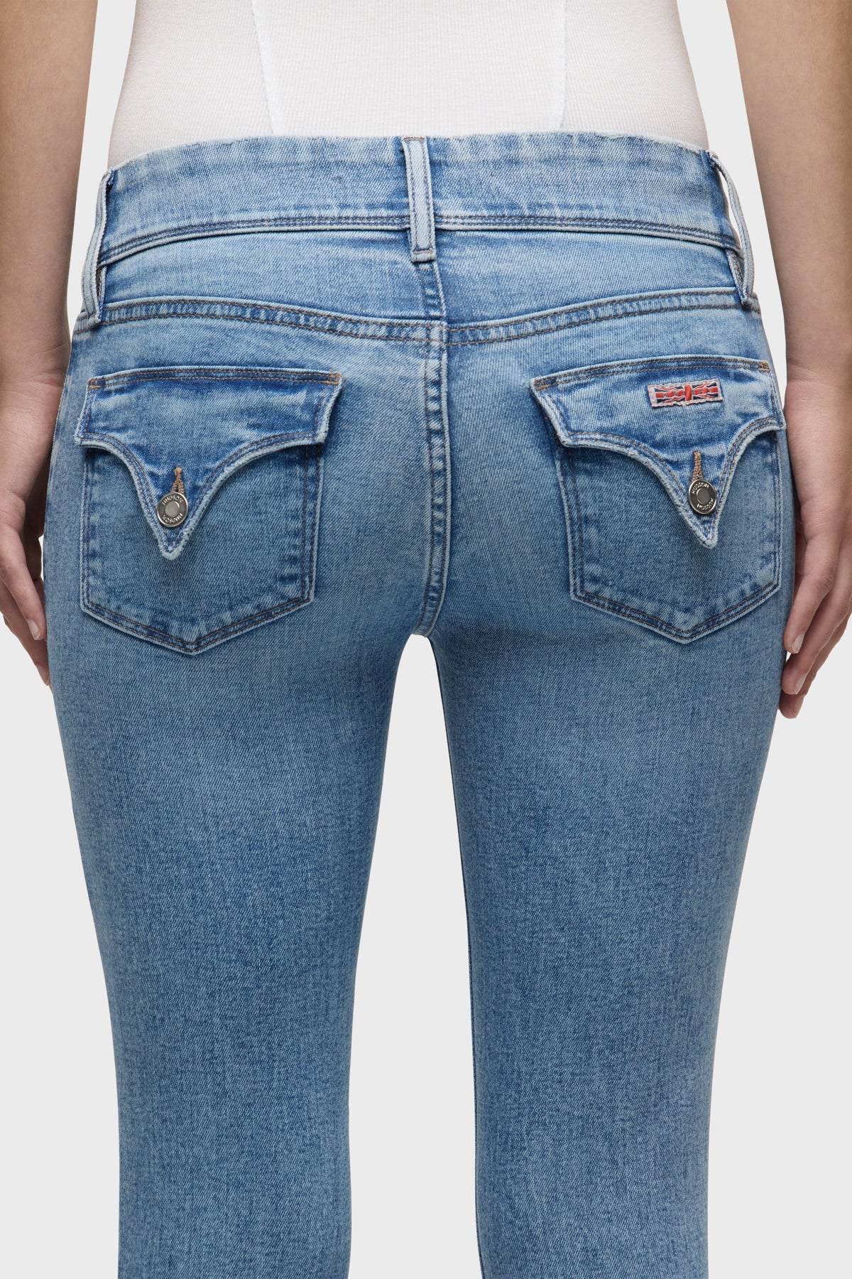 Cut with premium stretch denim in a light blue wash, our Collin Mid-Rise Skinny Jean in Zenith is a classic skinny style. It features a 28" inseam, double-button waistband closure and clean-finished hem. This pair is finished with our signature original flap pocket with the Union Jack flag.