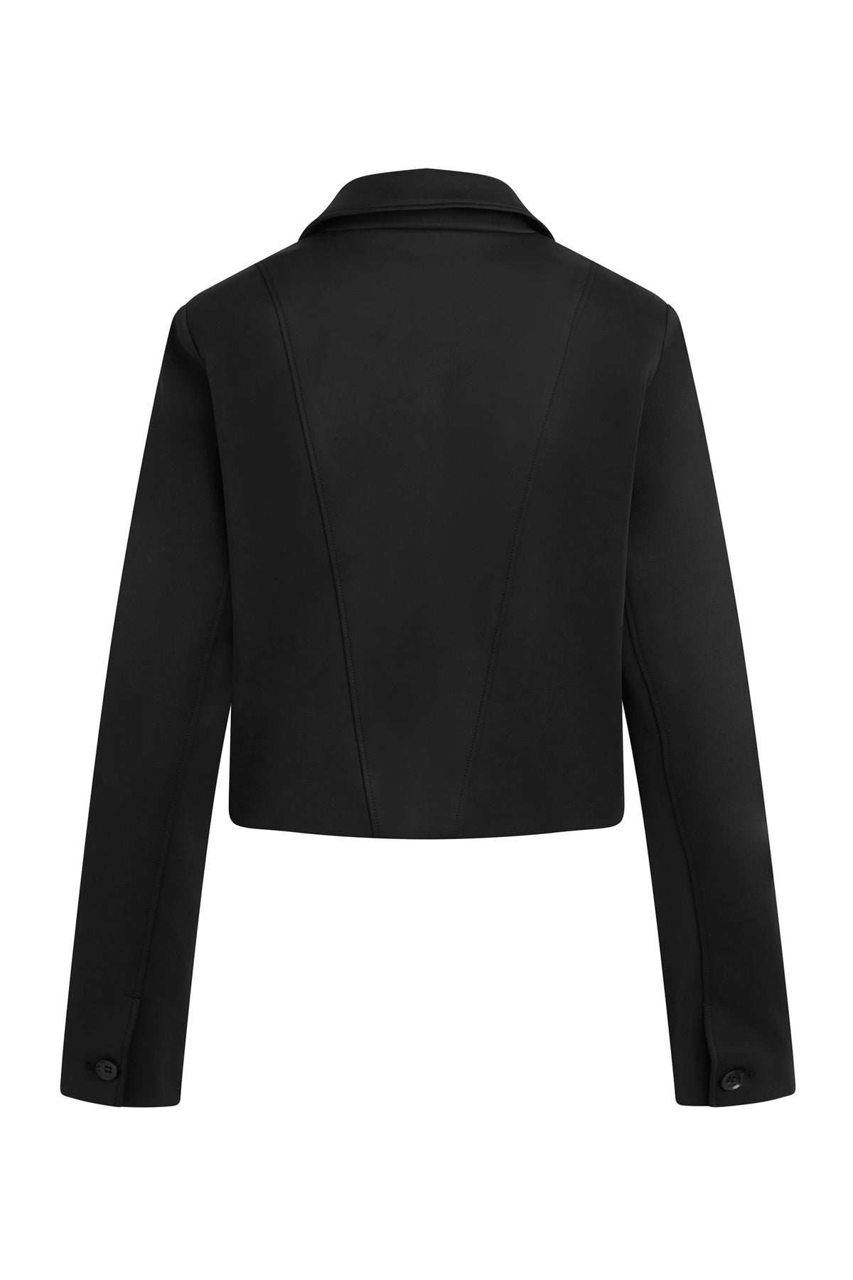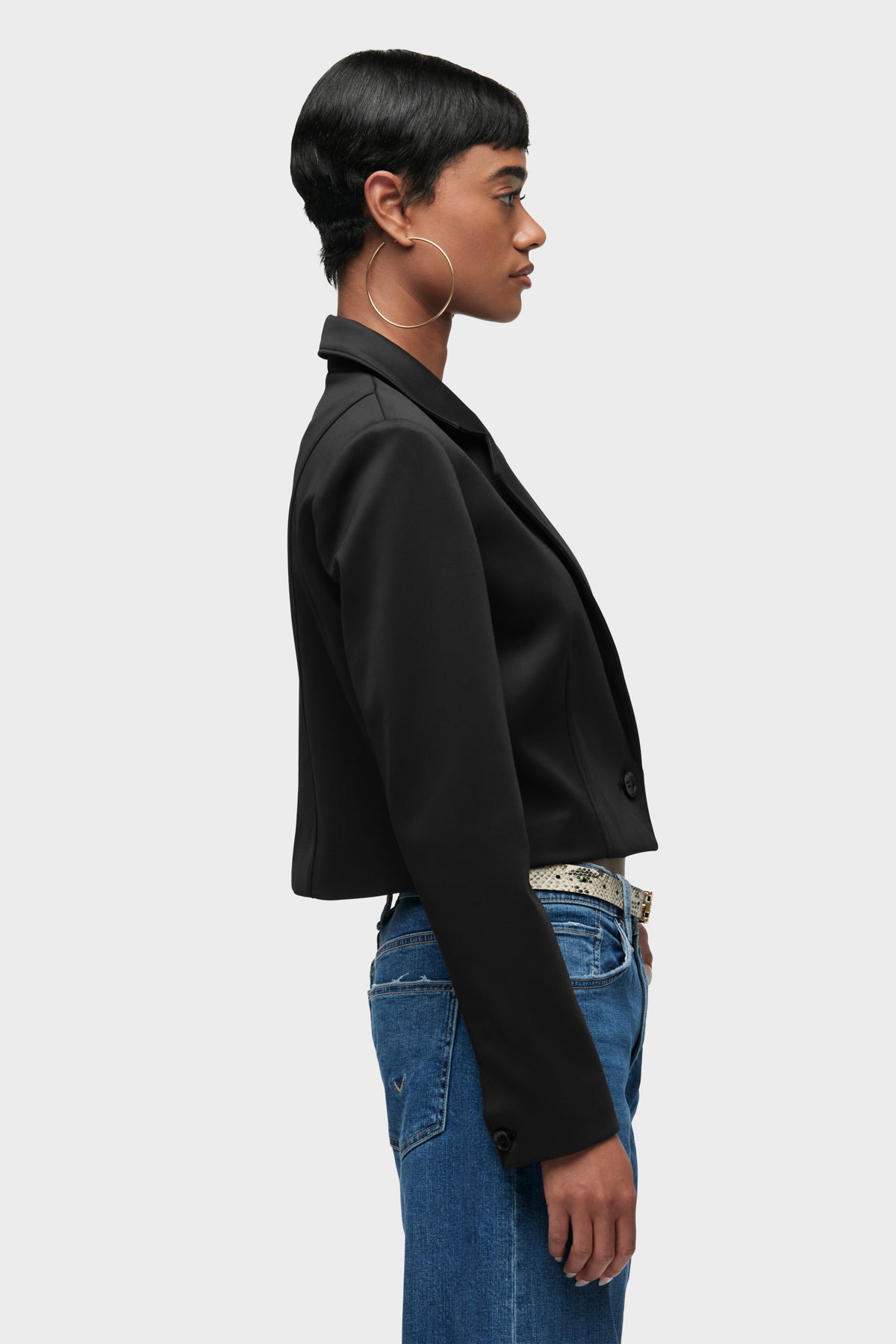 The Cropped Blazer in Black is made from our fully-lined scuba fabrication for a soft and flexible feel with every move. It's cut for a slightly-cropped fit and is finished with a notched lapel collar and button closure. -