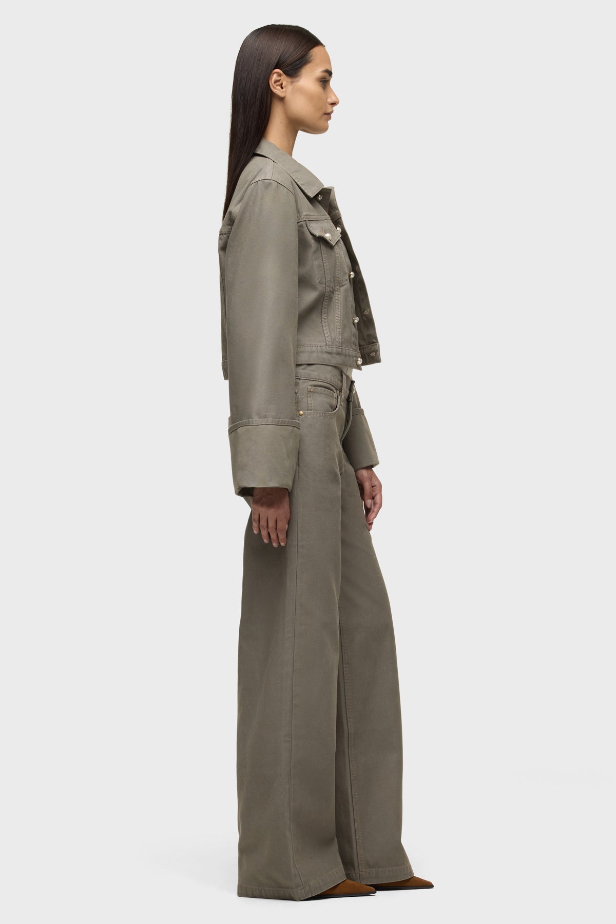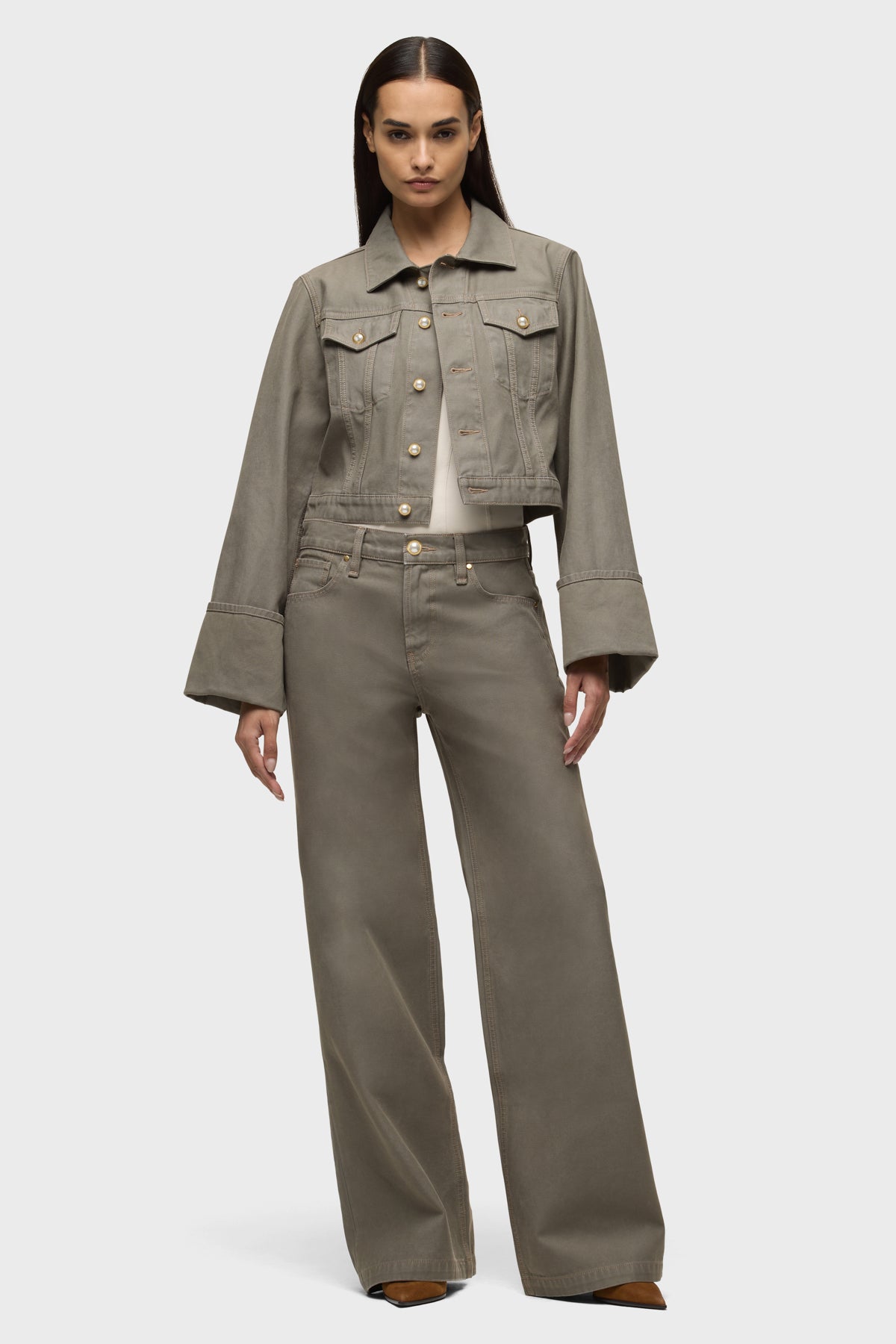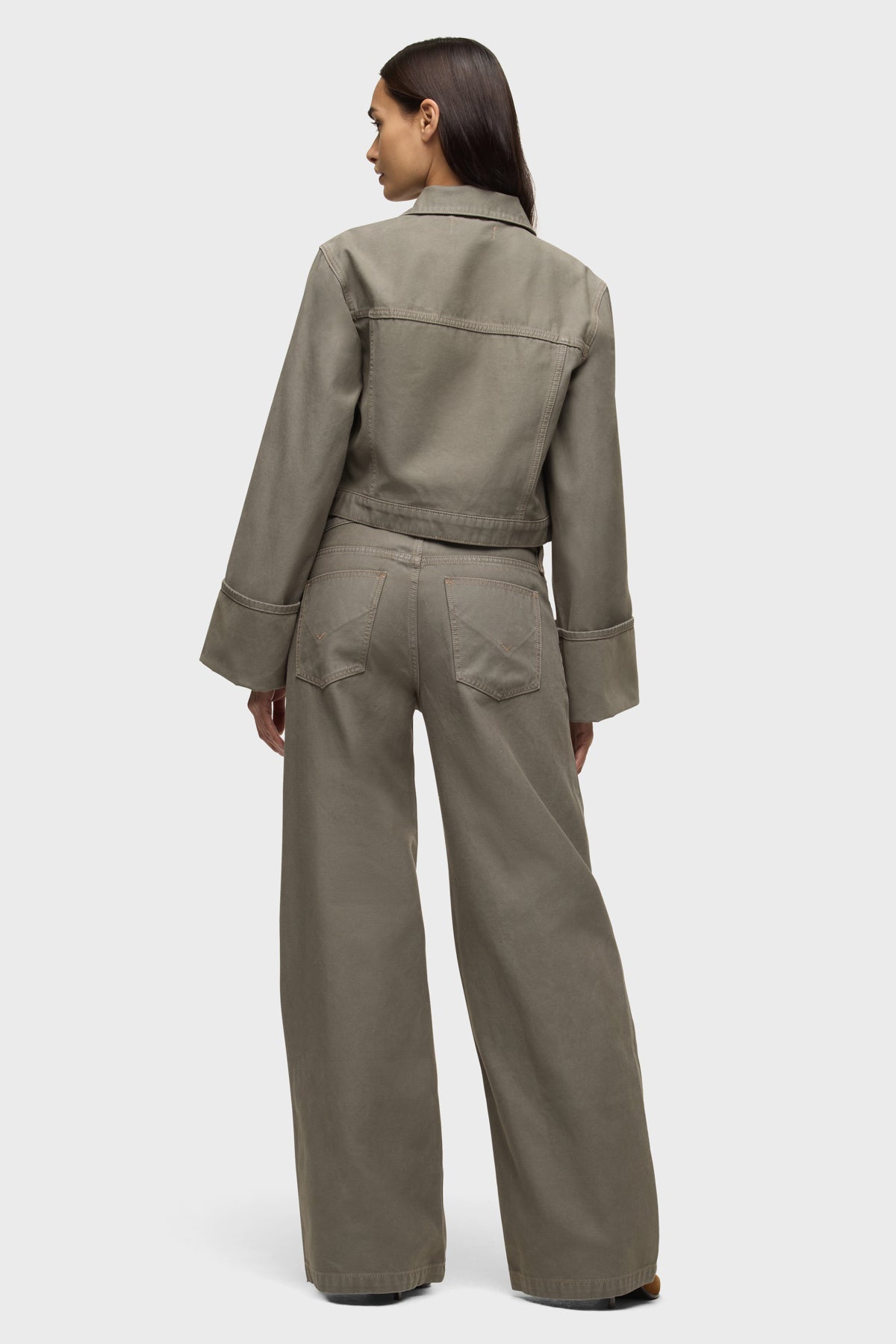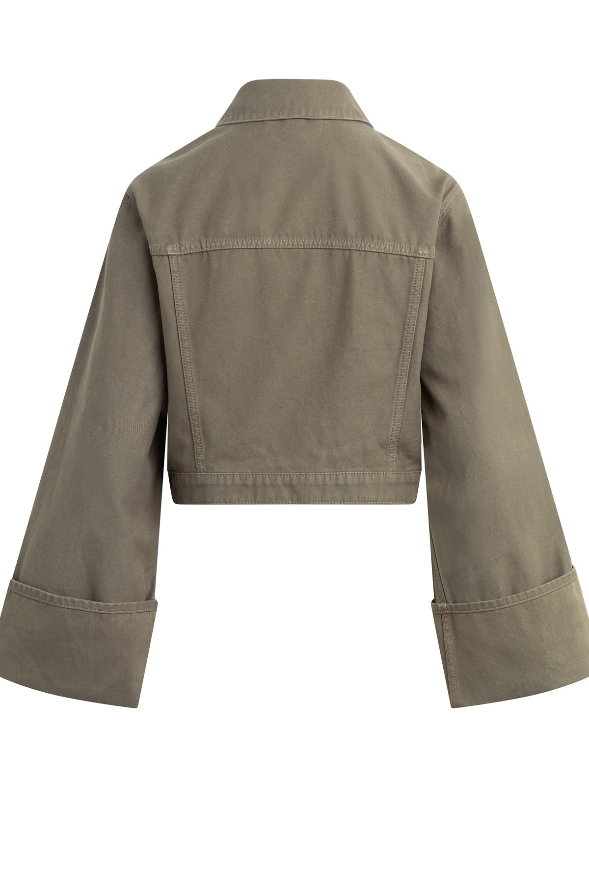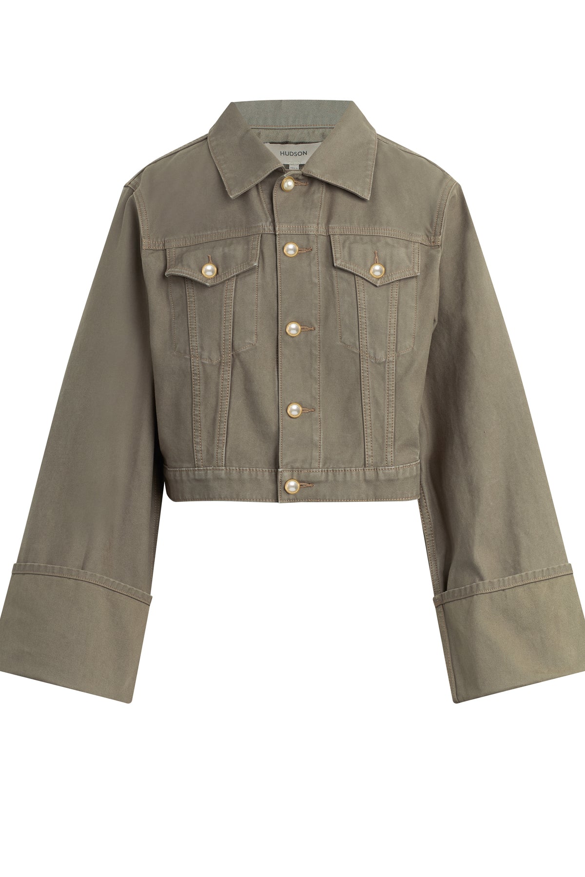 A new classic for your closet, the Cuffed Cropped Jacket in Washed Olive has a cropped fit with wide-cuffed sleeves with clean-finished hems and novelty buttons with pearl insets. This jacket has a fitted, slightly cropped shape in a rigid canvas fabric in a washed olive color that you'll wear season after season. -