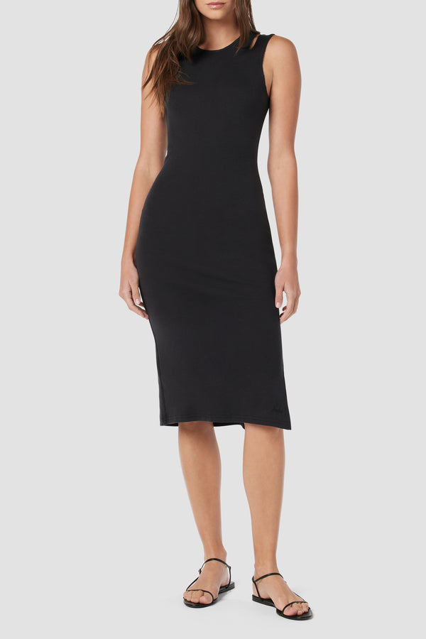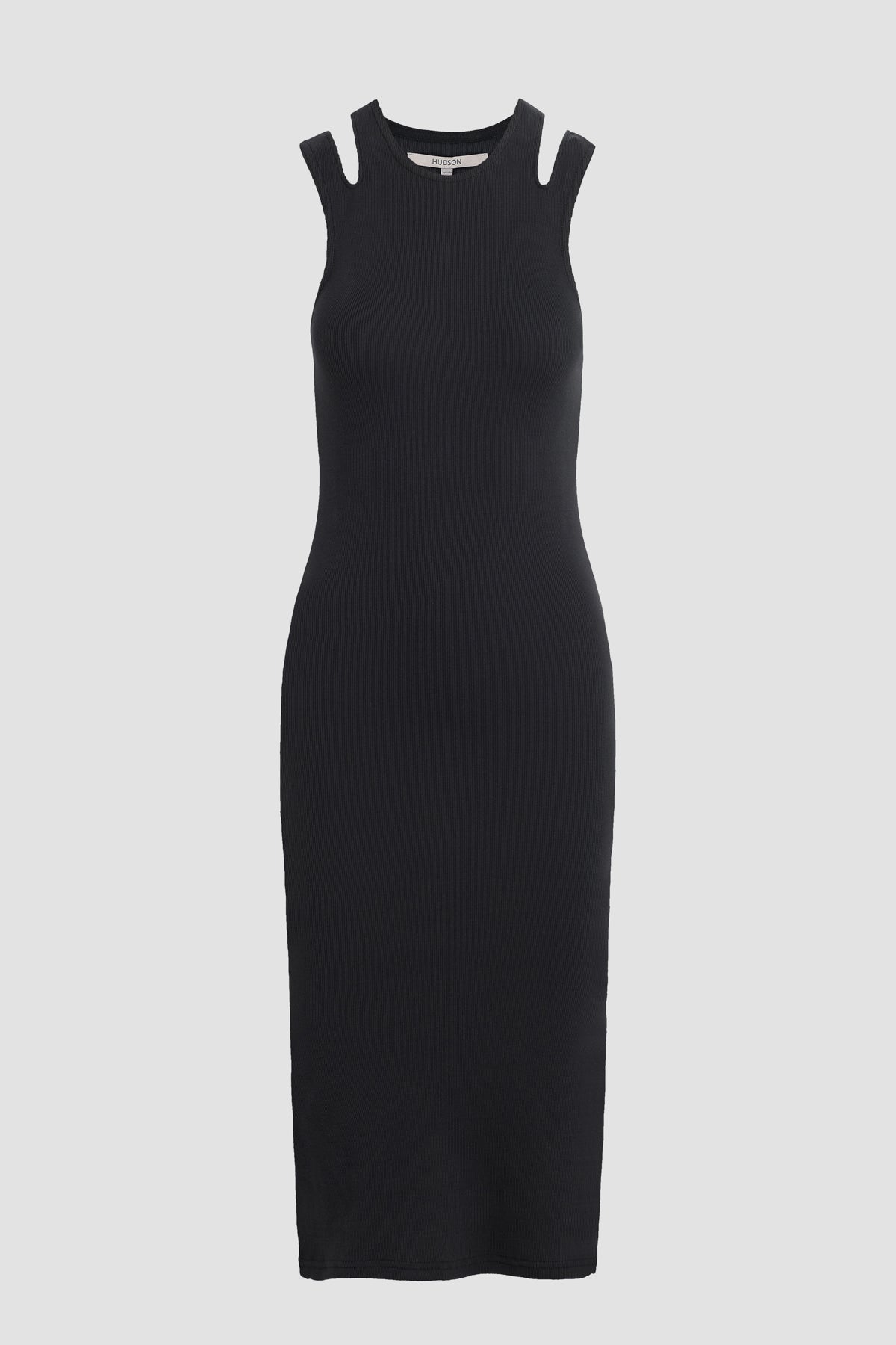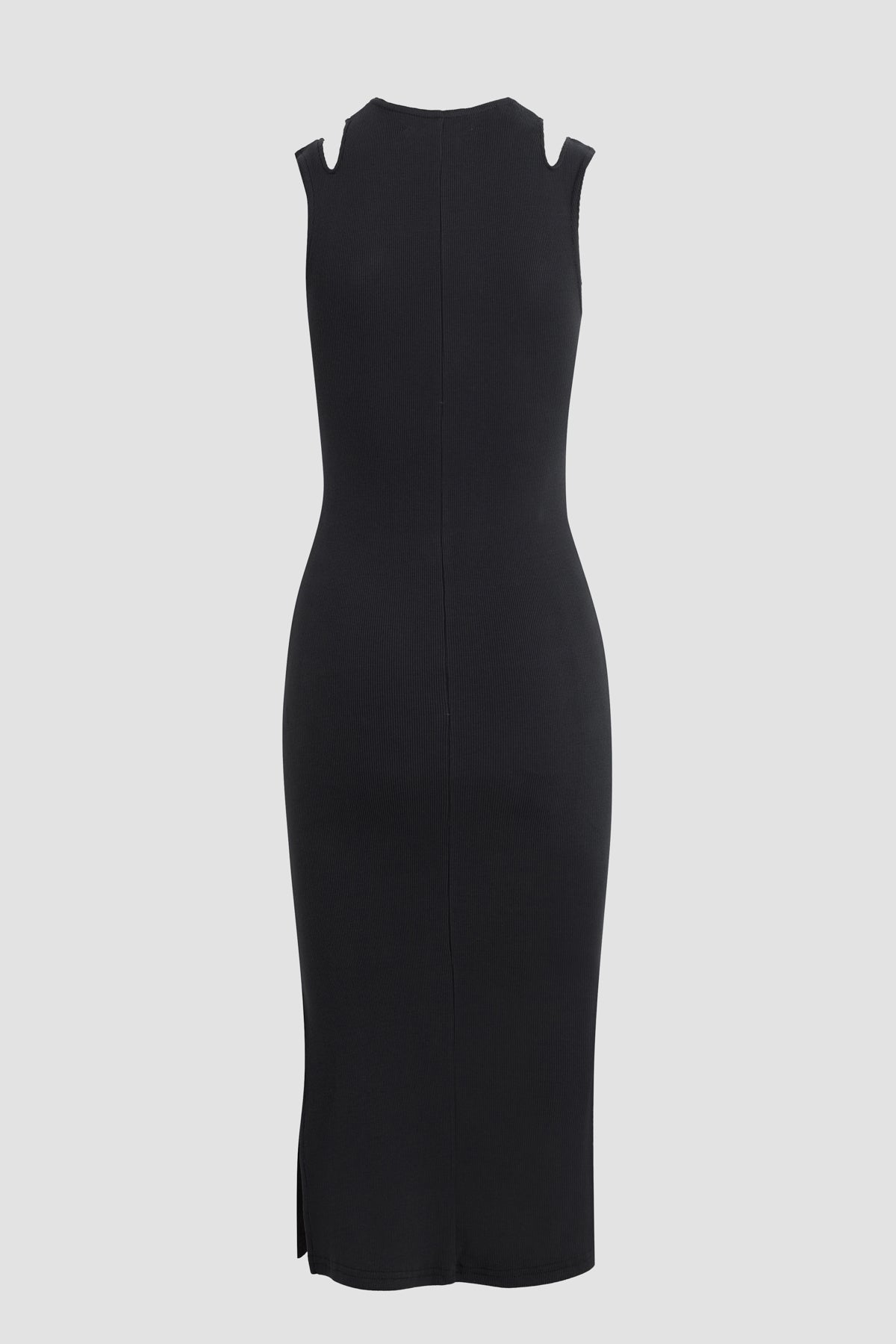 Our Cut Out Maxi Dress in Black is made from a soft cotton with plenty of stretch but still holds your shape. Features cut-out shoulder detailing and is finished with side slit and Hudson hem embroidery. -