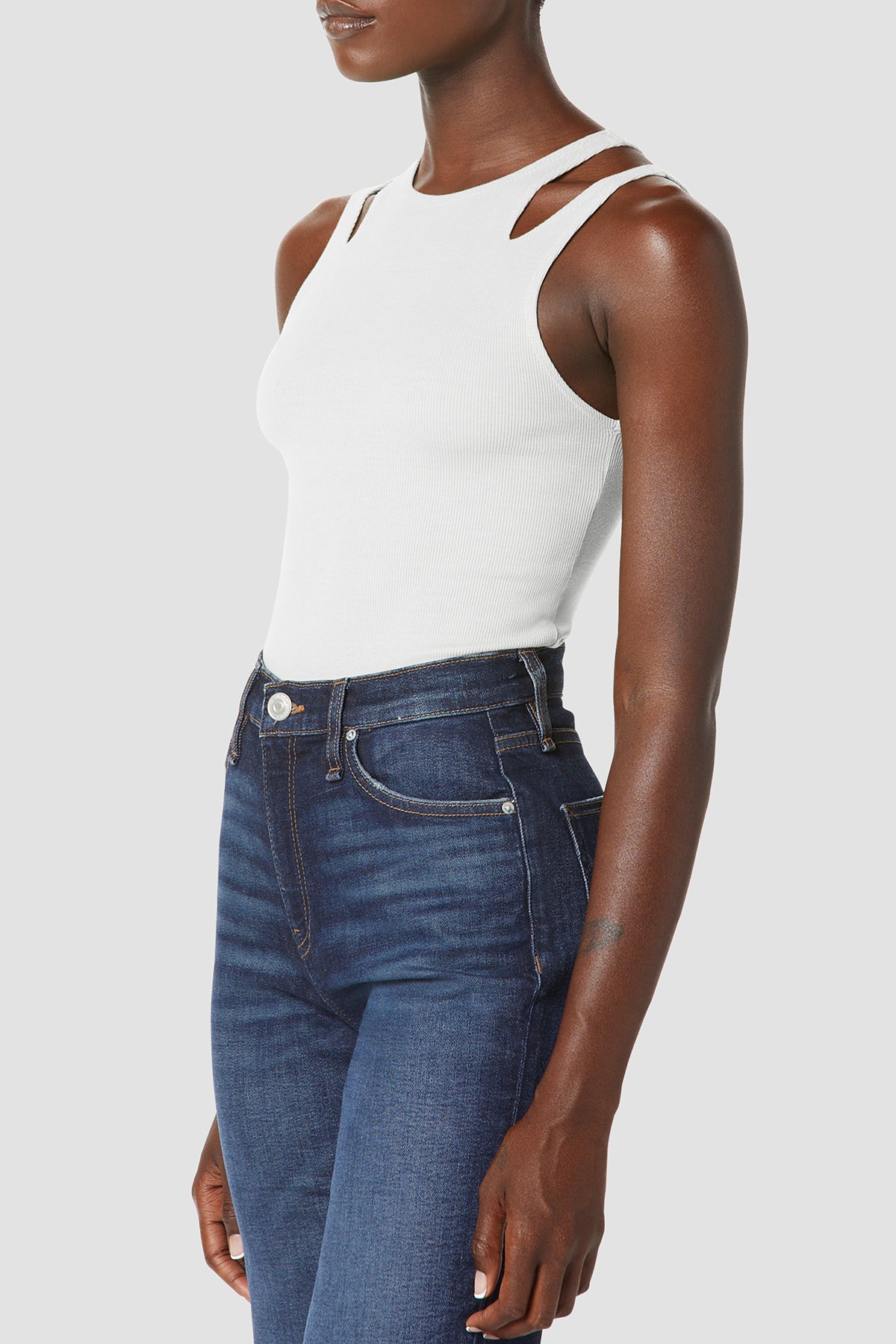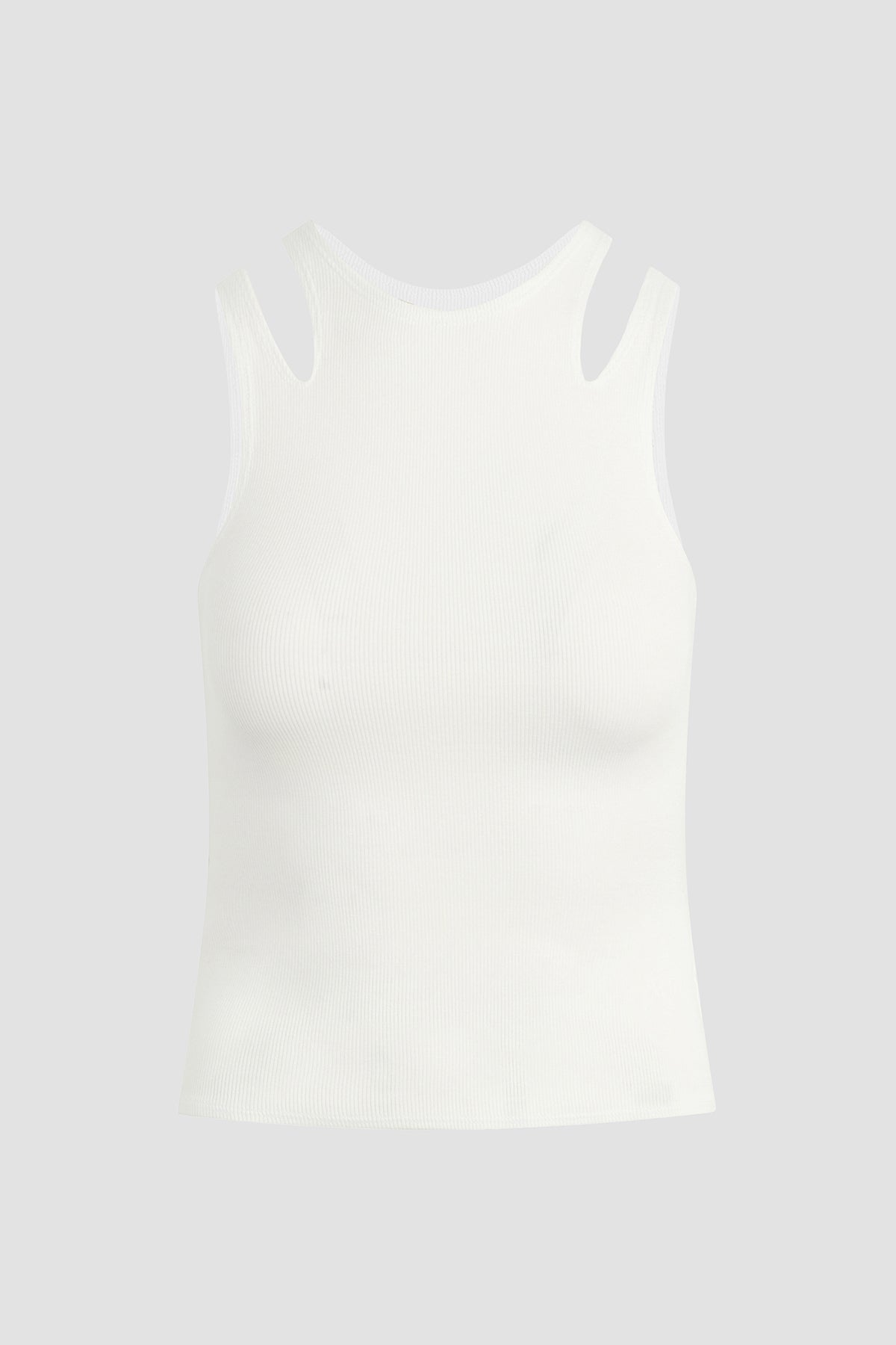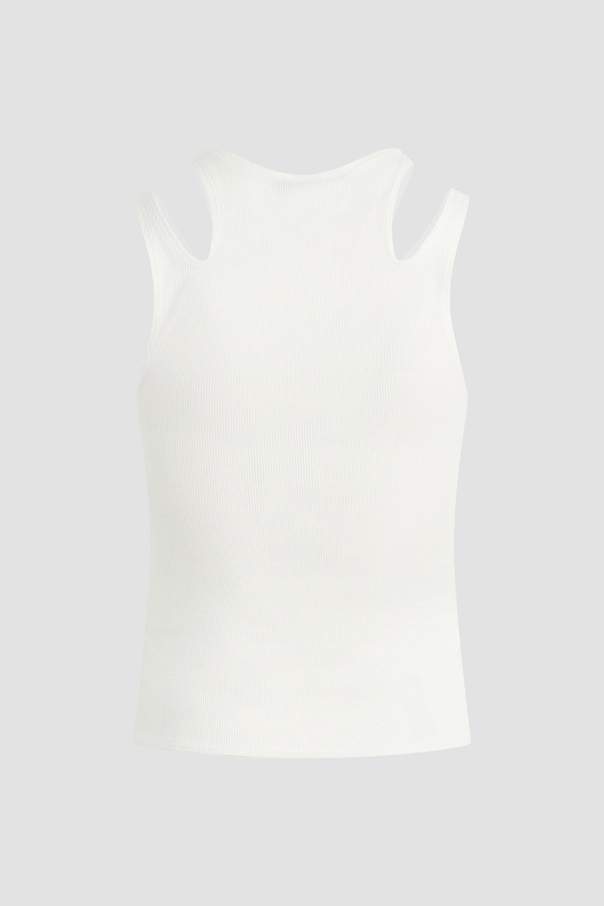 Simplicity stepped up. Our ribbed Cut Out Tank in Ecru is made from soft cotton and features cutouts on the shoulders. -